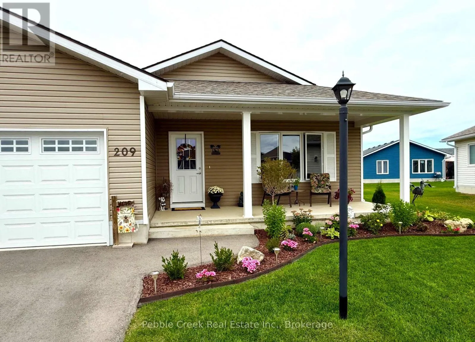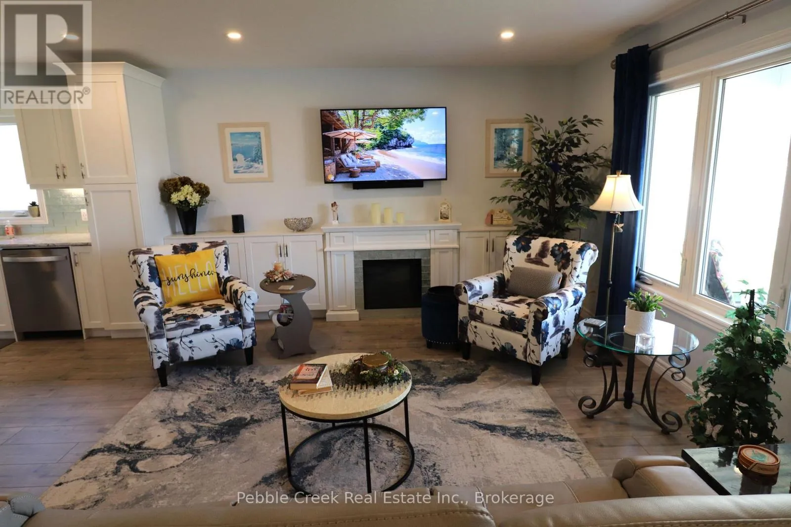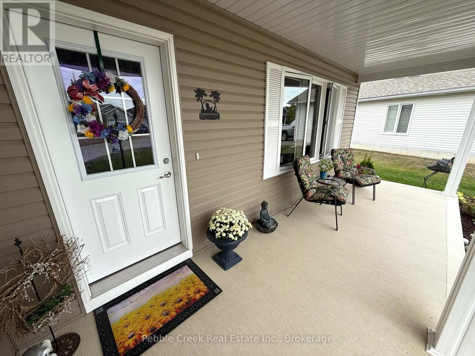 Cross Streets: Lookout Lane South. ** Directions: Head North from Goderich on Hwy 21 to the main entrance of the The Bluffs at Huron. Go West to Lookout Lane South, then turn south to Lake Breeze Drive and West onto Lake Breeze Drive. The property is on the South side. Absolutely stunning! This beautiful home offers nearly 1600 sq ft of living space and is situated on one of the largest and most private premium lots at The Bluffs! Just imagine the lifestyle, living along the shores of Lake Huron, close to shopping and fantastic golf courses along with your own private community recreation center complete with library, party rooms, sauna and indoor pool! This incredible "Cliffside B with sunroom" model has seen an extensive number of upgrades added and is an absolute pleasure to show! Features include a large custom kitchen with crown moulding, center island, pantry, upgraded appliances and quartz countertops. You will love all of the custom "pull out" shelving in the cabinets as well! The living room boasts a fireplace surrounded by wall-to-wall custom cabinetry. Also located close to the kitchen is a spacious dining room, perfect for dinner parties! The sunroom sports a cathedral ceiling and patio doors leading to a concrete patio overlooking the extensive gardens and offering a panoramic view of the countryside! Other features include a large primary bedroom with walk-in closet, 3 pc ensuite bath including a shower light and vanity with quartz countertop. Just down the hall is a spacious second bedroom and 4 pc main bath with shower/bath light, linen closet and vanity with quartz counter top. Premium window coverings and upgraded light fixtures are also prevalent throughout. Services include radiant in-floor radiant heating along with a gas furnace offering forced air heating and A/C. There's also an attached two car garage with custom shelving and separate storage shed on the property. This home is truly the ultimate in quality construction and location! (id:27476)