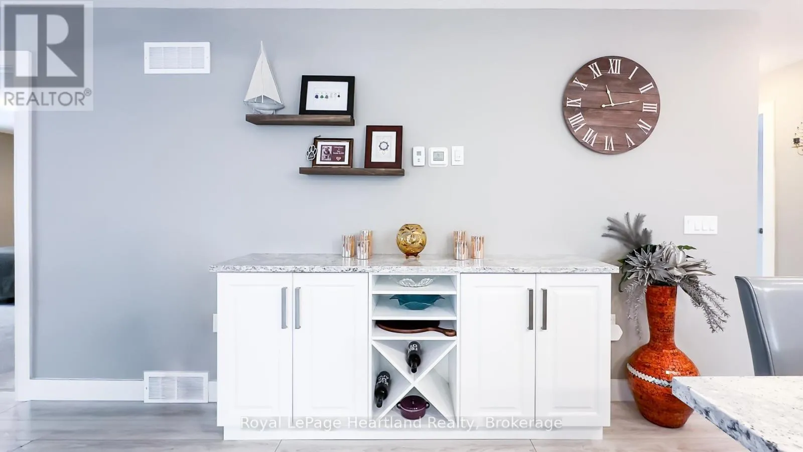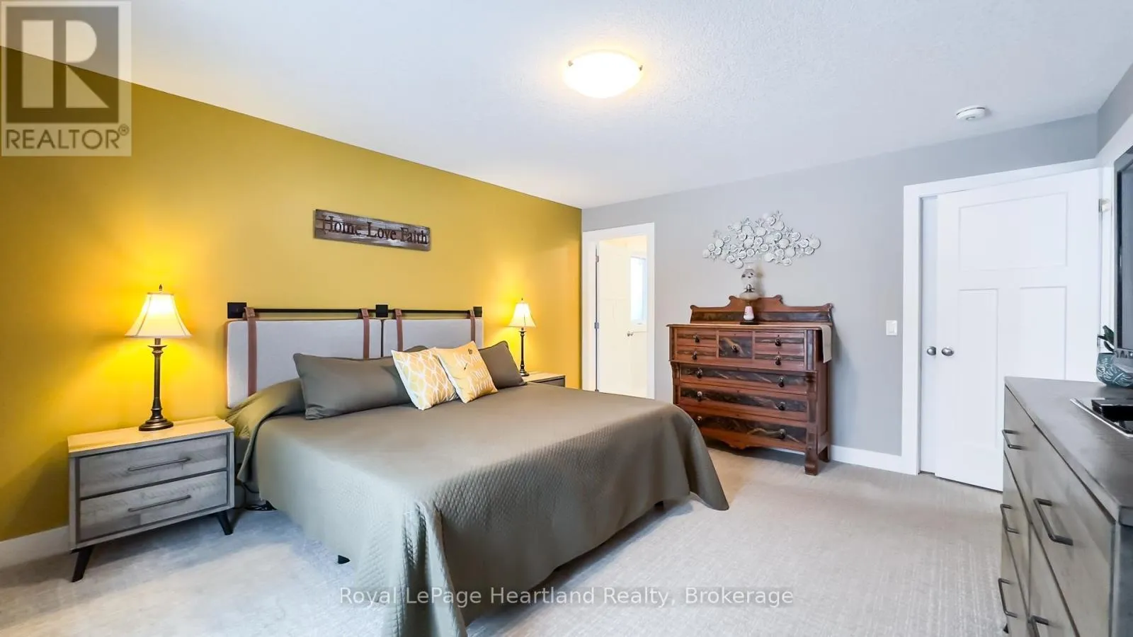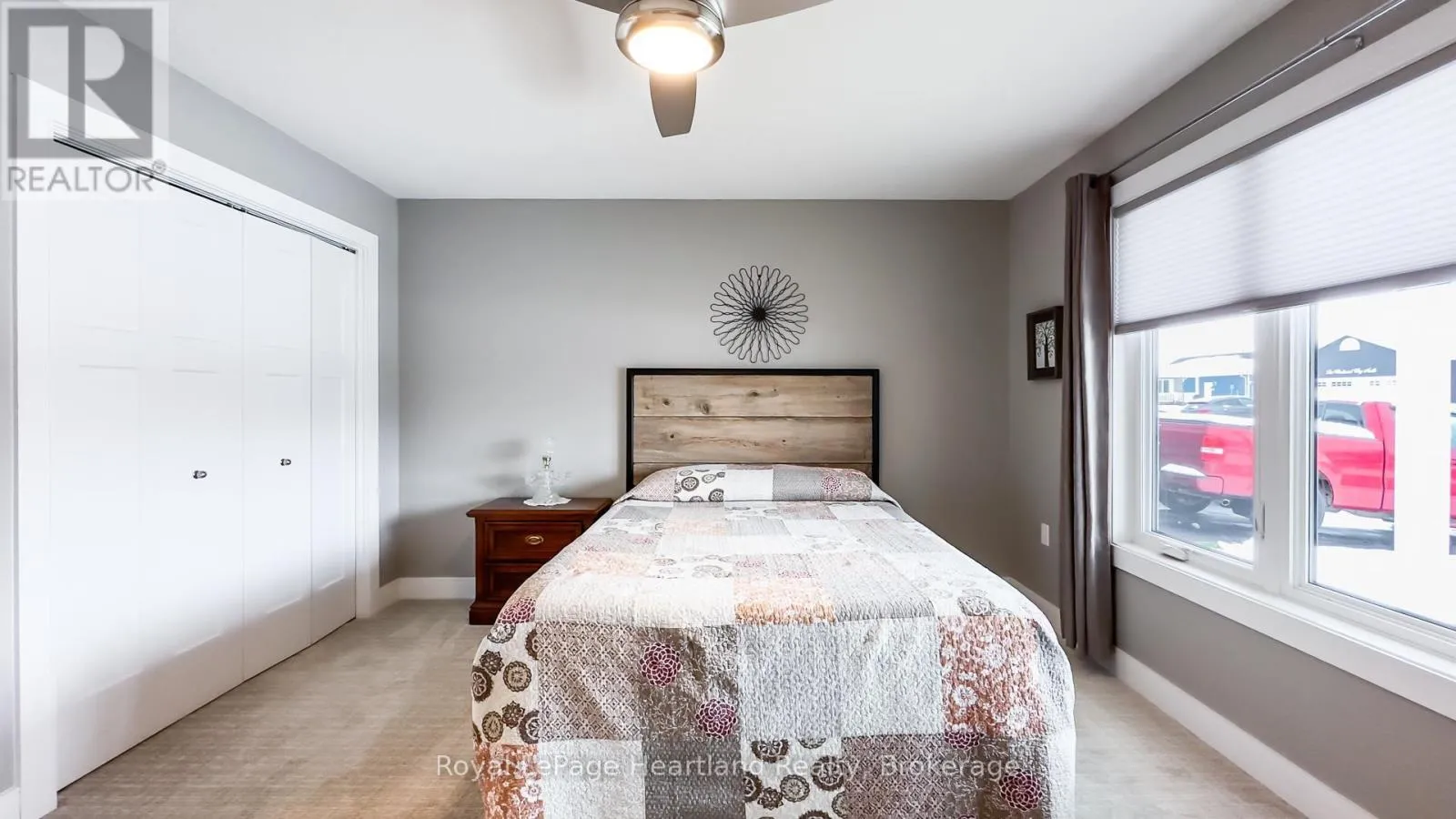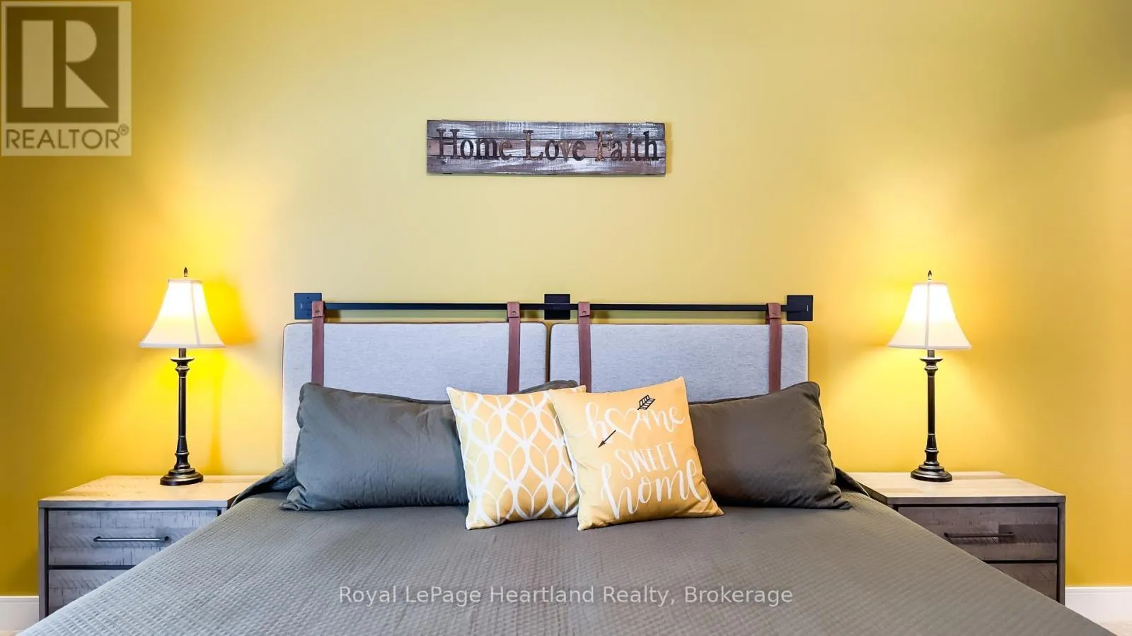 Cross Streets: Hwy 21 and West Coast Way. ** Directions: Take Hwy.21 North of Goderich to the main entrance of \"The Bluffs.\" Head west to Windward Way N (third roundabout). Turn right - home on left. When proximity to Lake Huron sunsets, the beach, and community matters, wait no longer! This Lakeside with sunroom model is located in The Bluffs on Huron, offering a full crawl space for storage and a range of upgrades no longer available in later builds. The foyer is a welcome entrance with space right off the attached 2 car garage and main door where you have a full sized closet, room for an entrance table and bench to take your footwear off. A crisp white kitchen dazzles the critical eye featuring quartz countertops including the island and a custom oversized side table/hutch with matching quartz. Additional highlights include upgraded appliances, a pantry, crown moulding, pots-and-pans drawers in the island, undermount lighting, tiled backsplash, an oversized kitchen window, and a glass corner cabinet. The living room is a welcoming room with a gas fireplace with a tile inset, the perfect spot for snuggling in on the chilly evenings. The sunroom is a fantastic space for a second sitting room or alternative dining space. Take note of the upgraded interior doors and custom blinds which elevate the feel of the home.The Lakeside with Sunroom layout offers a generous guest bedroom and a main bathroom positioned at the front of the home. The privately located primary suite includes an ensuite with a 5' shower and a spacious walk-in closet. Outdoors, relax on the deck or install a hot tub on the concrete pad between the deck and garage, both with privacy fencing. Residents enjoy access to an 8,000-square-foot clubhouse featuring an indoor pool, gym, sauna, gathering rooms, and stunning views of Lake Huron, as well as pickleball courts and a dog park. All of this is just minutes from Goderich and local golf courses. (id:27476)