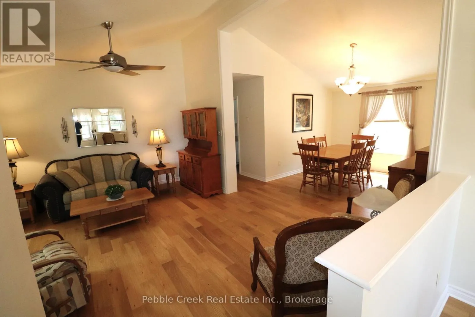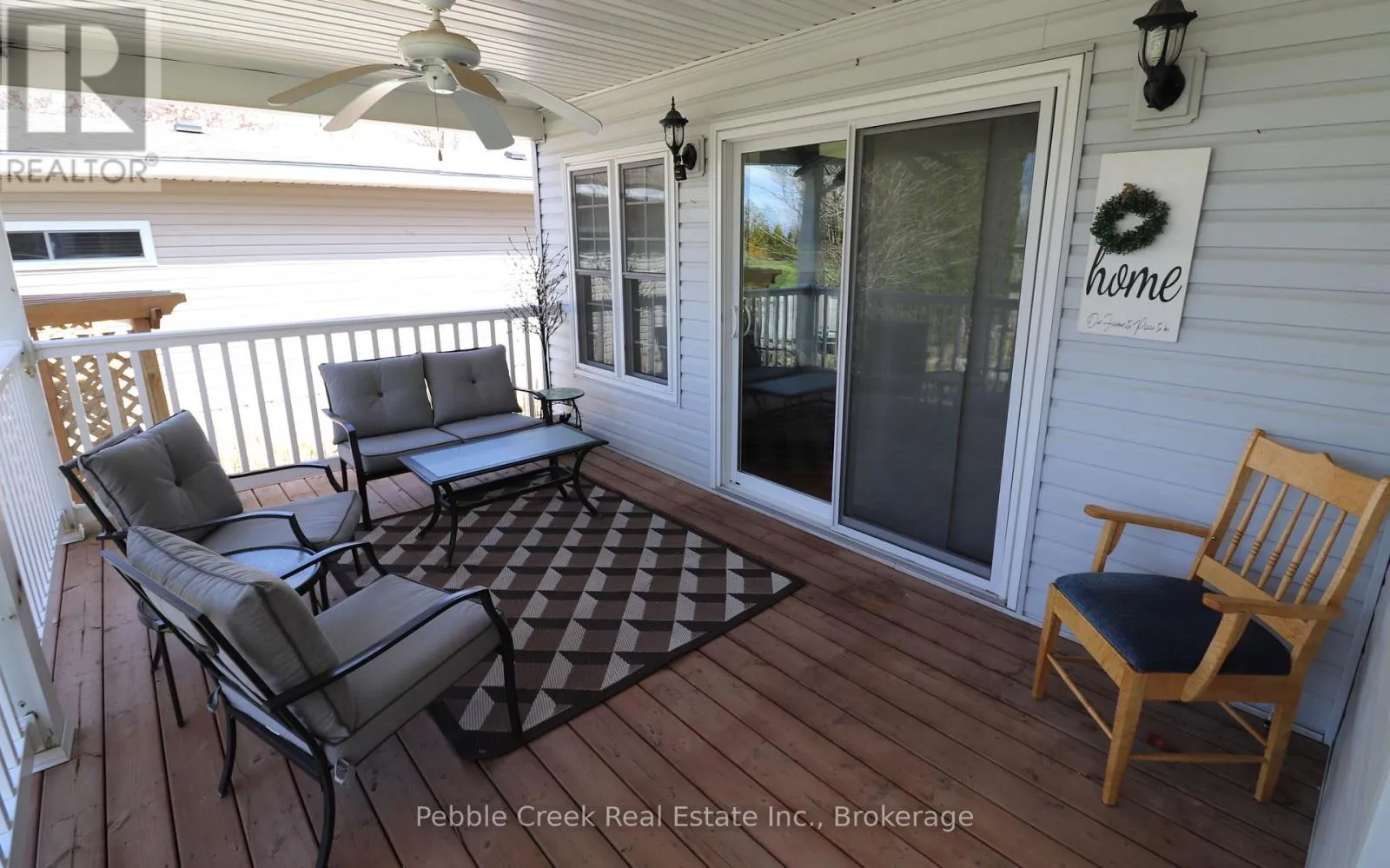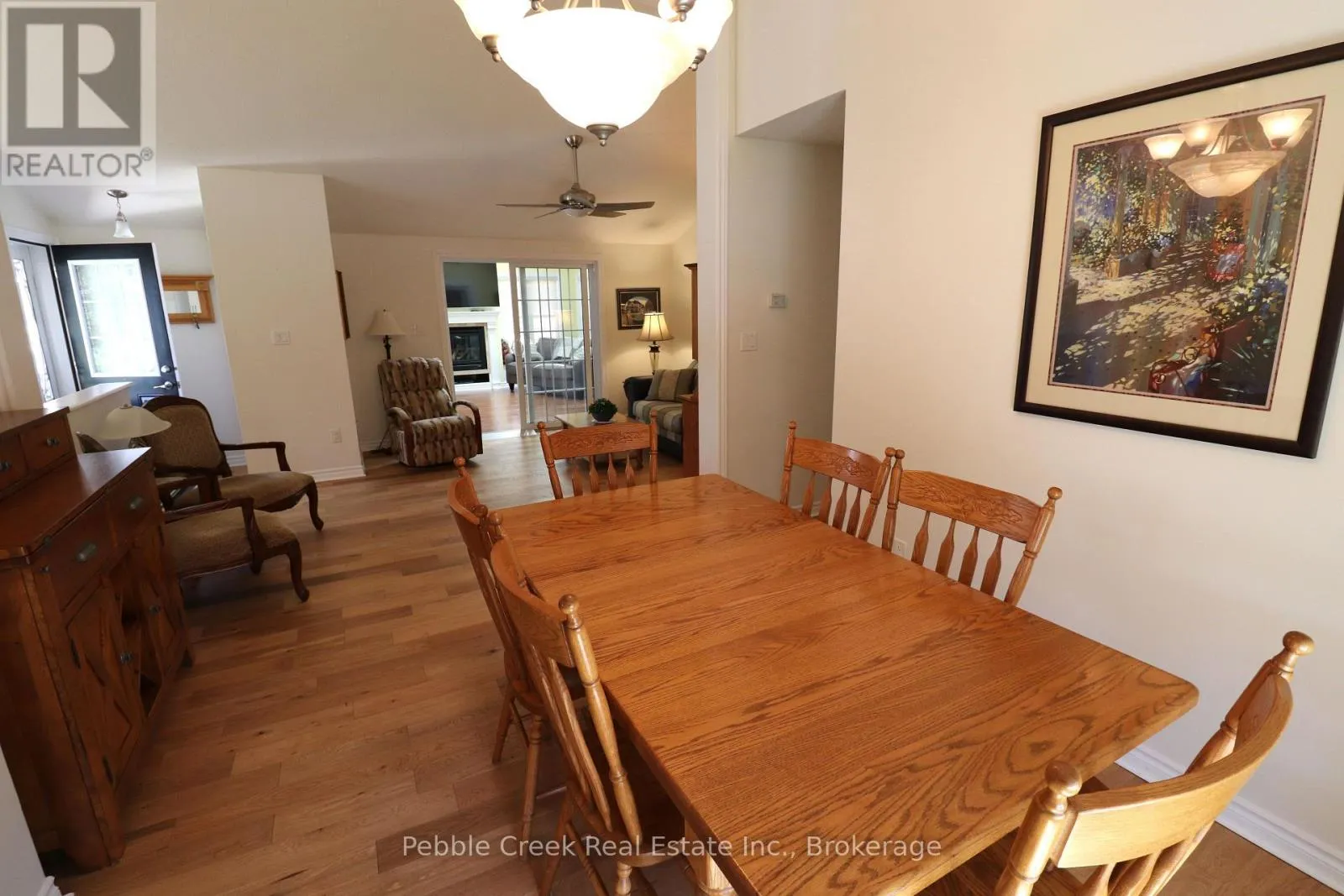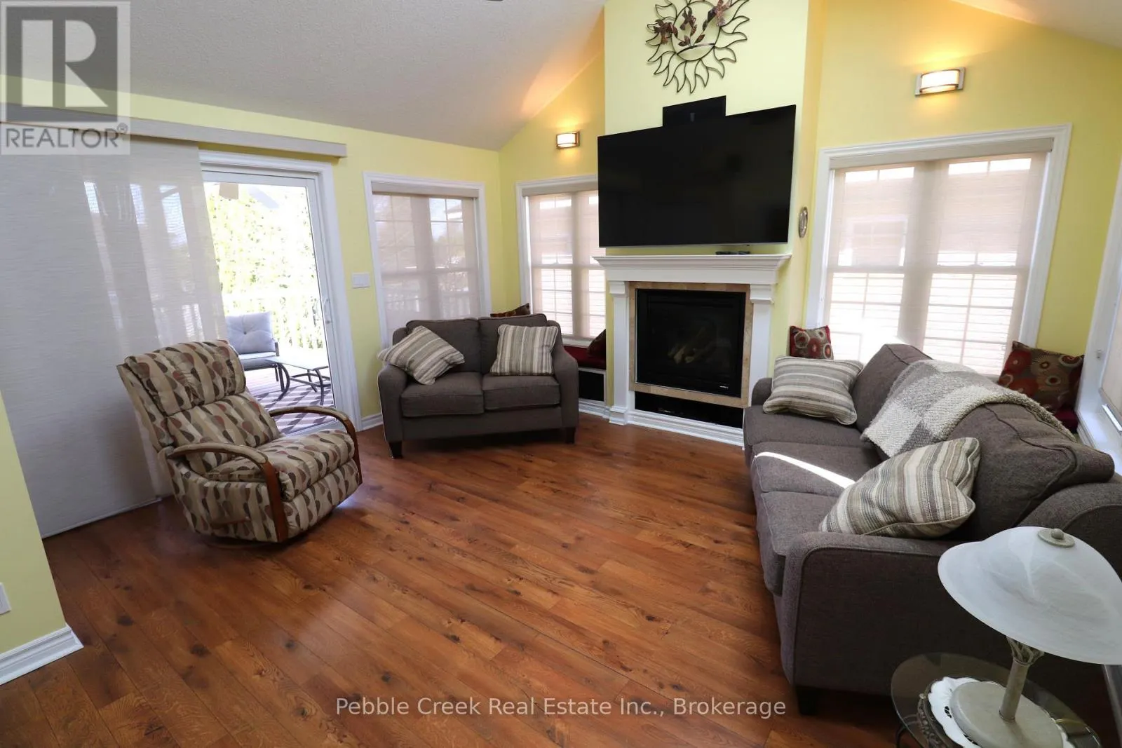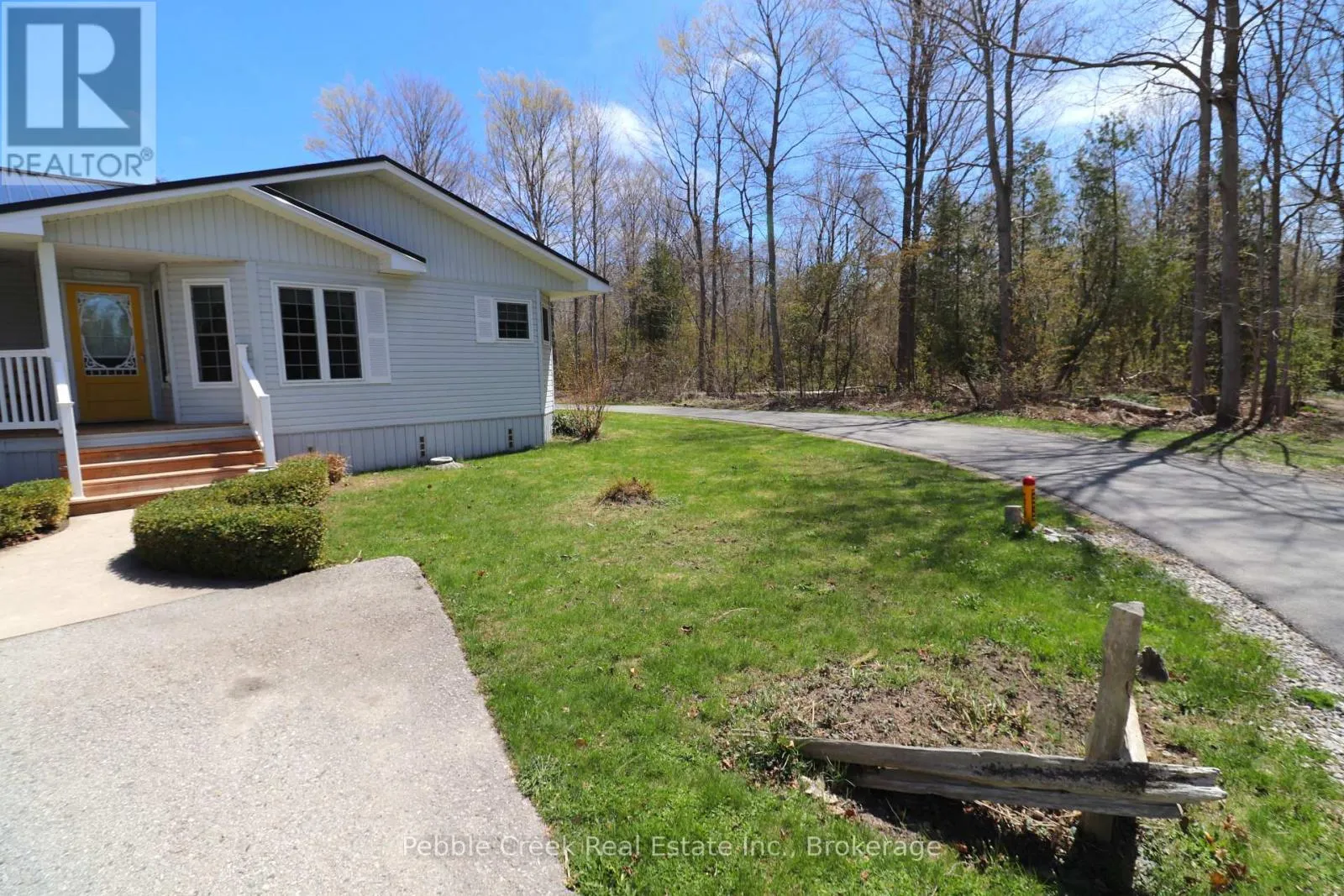 Cross Streets: Iroquois Lane and Algonquin Lane. ** Directions: North from Goderich on Hwy 21, turn West onto Airport Rd. Follow to the end and turn left into Meneset, then South onto Iroquois Lane. Property on the East side at the end. Amazing location! This stunning "Royal Home" is situated on one of the best lots at Meneset on the Lake, an adult lakefront community located just minutes north of Goderich. This fabulous home offers a partial seasonal lakeview and is located across the road from a forested area and path leading to the community's beachfront area! As you walk up to the inviting covered front porch, you will know you've found your new home! Step inside and you will be very impressed with the spacious interior including cathedral ceilings and gorgeous wood flooring. The impressive kitchen features newer premium appliances, an abundance of cabinets and several windows for lots of natural light. There's also a formal dining room, living room and stunning family room addition with cathedral ceiling, skylights and natural gas fireplace! Down the hall from the main living area is a laundry room with sink and primary bedroom with 3 pc en-suite bath and walk in closet. There is a spacious second bedroom as well. At the back of the home there's a deck for grilling, concrete patio, private fenced area and large shed/workshop. Services include forced air gas heating, central A/C, high speed internet and "whole home" generator. An added bonus is the entire roof was replaced in 2022 with long lasting metal. This is a great opportunity to acquire a beautiful home in a very desirable land lease community, complete with its very own club house and recreational activities! If that isn't enough, several golf courses, walking trails and lots of shopping is available nearby in "The "Prettiest town of Canada!" (id:27476)