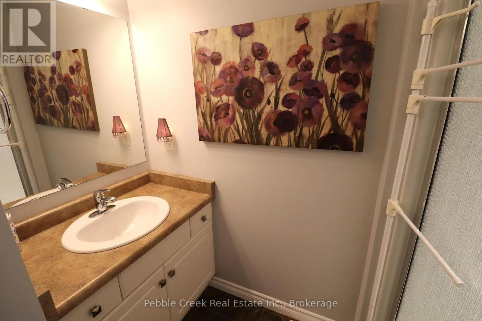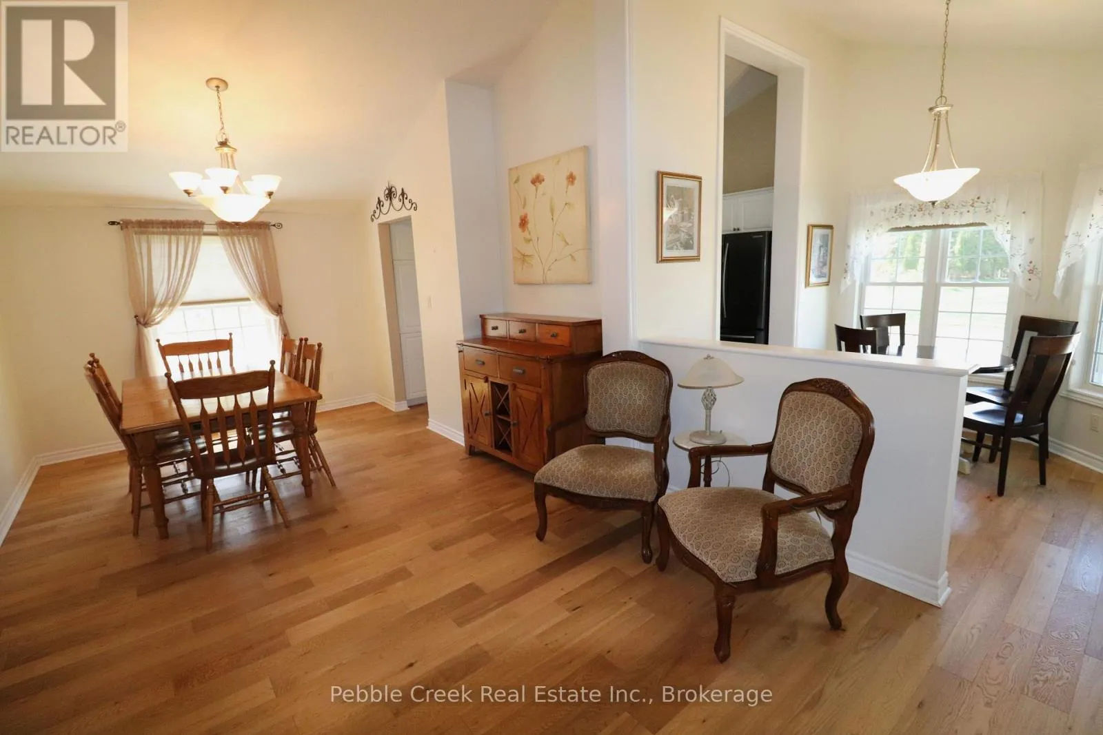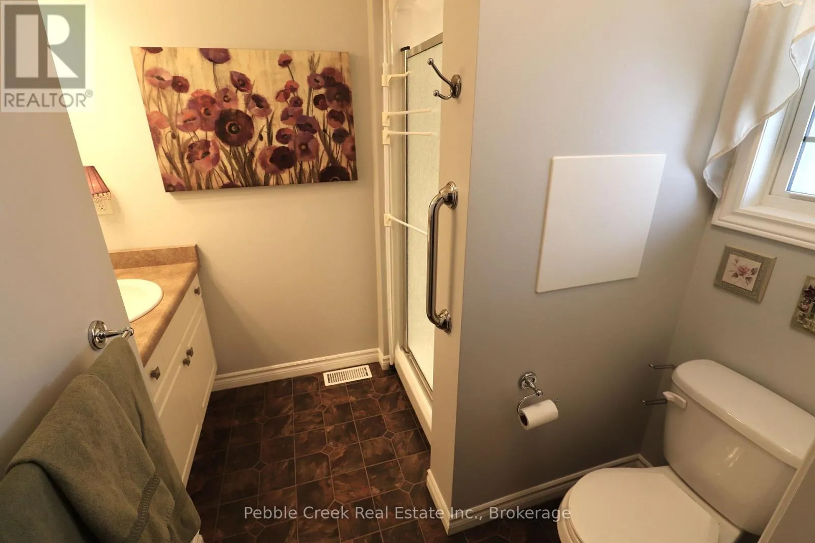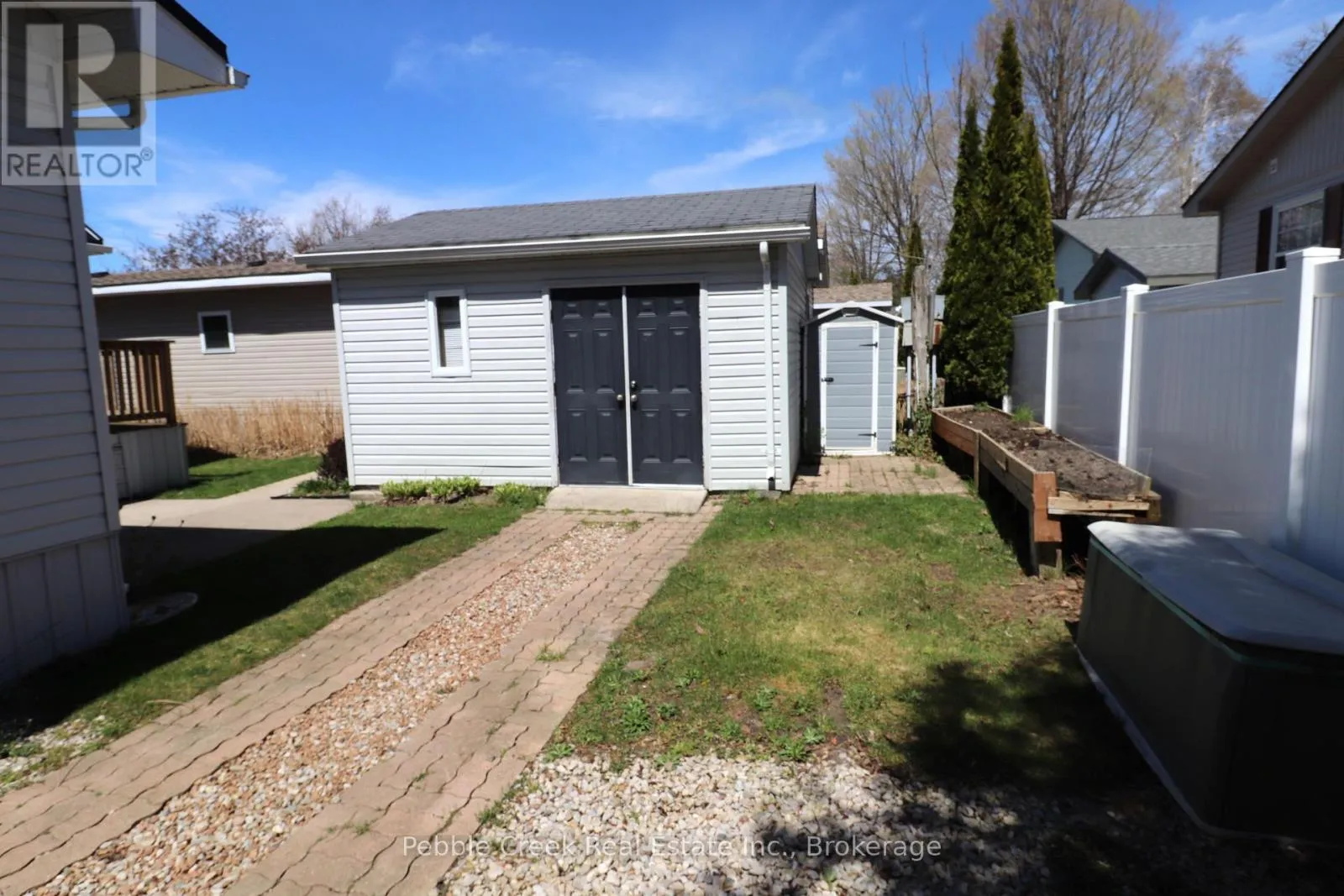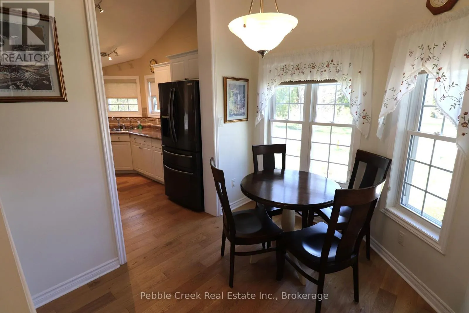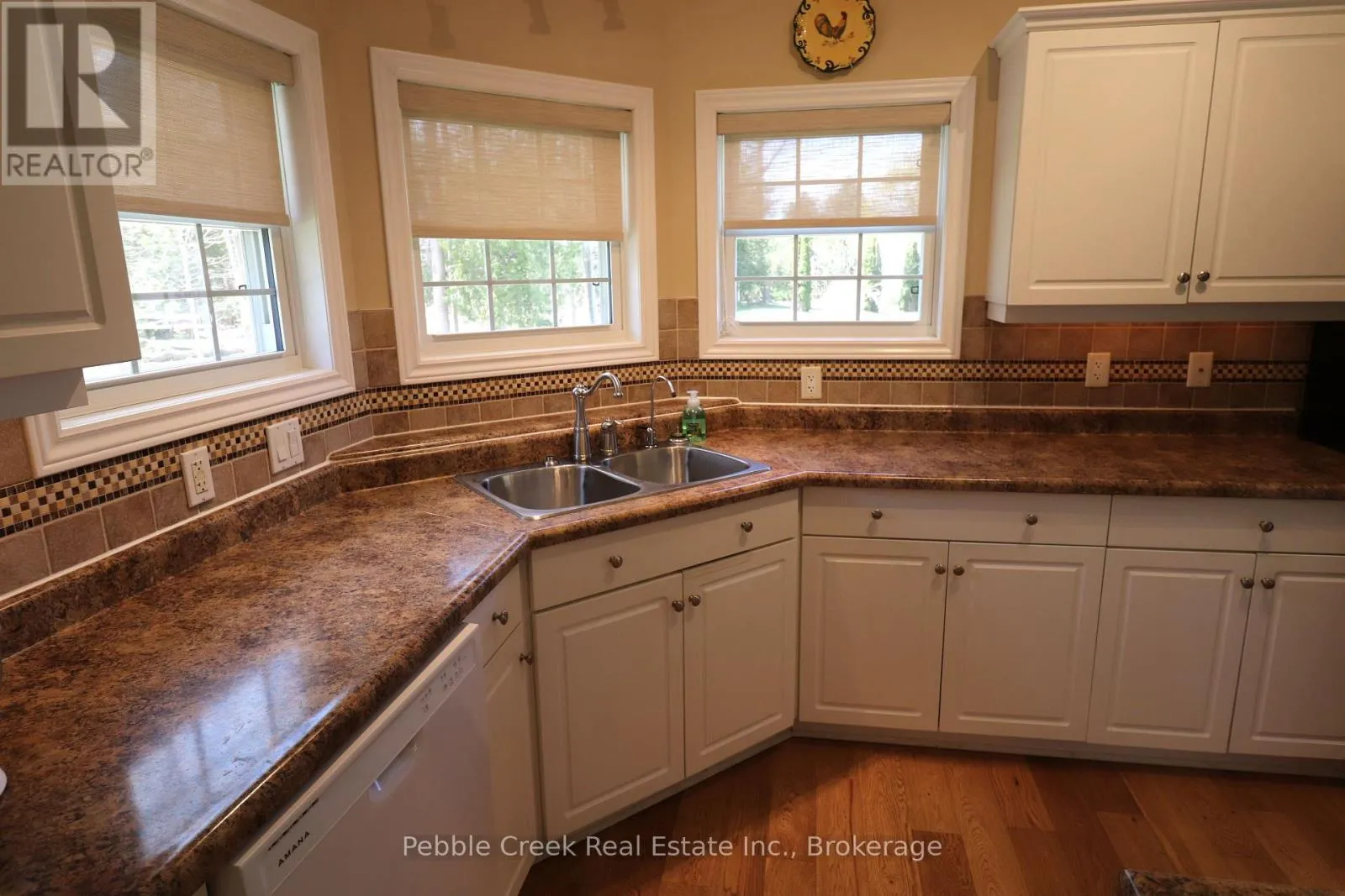 Cross Streets: Iroquois Lane and Algonquin Lane. ** Directions: North from Goderich on Hwy 21, turn West onto Airport Rd. Follow to the end and turn left into Meneset, then South onto Iroquois Lane. Property on the East side at the end. Amazing location! This stunning "Royal Home" is situated on one of the best lots at Meneset on the Lake, an adult lakefront community located just minutes north of Goderich. This fabulous home offers a partial seasonal lakeview and is located across the road from a forested area and path leading to the community's beachfront area! As you walk up to the inviting covered front porch, you will know you've found your new home! Step inside and you will be very impressed with the spacious interior including cathedral ceilings and gorgeous wood flooring. The impressive kitchen features newer premium appliances, an abundance of cabinets and several windows for lots of natural light. There's also a formal dining room, living room and stunning family room addition with cathedral ceiling, skylights and natural gas fireplace! Down the hall from the main living area is a laundry room with sink and primary bedroom with 3 pc en-suite bath and walk in closet. There is a spacious second bedroom as well. At the back of the home there's a deck for grilling, concrete patio, private fenced area and large shed/workshop. Services include forced air gas heating, central A/C, high speed internet and "whole home" generator. An added bonus is the entire roof was replaced in 2022 with long lasting metal. This is a great opportunity to acquire a beautiful home in a very desirable land lease community, complete with its very own club house and recreational activities! If that isn't enough, several golf courses, walking trails and lots of shopping is available nearby in "The "Prettiest town of Canada!" (id:27476)
