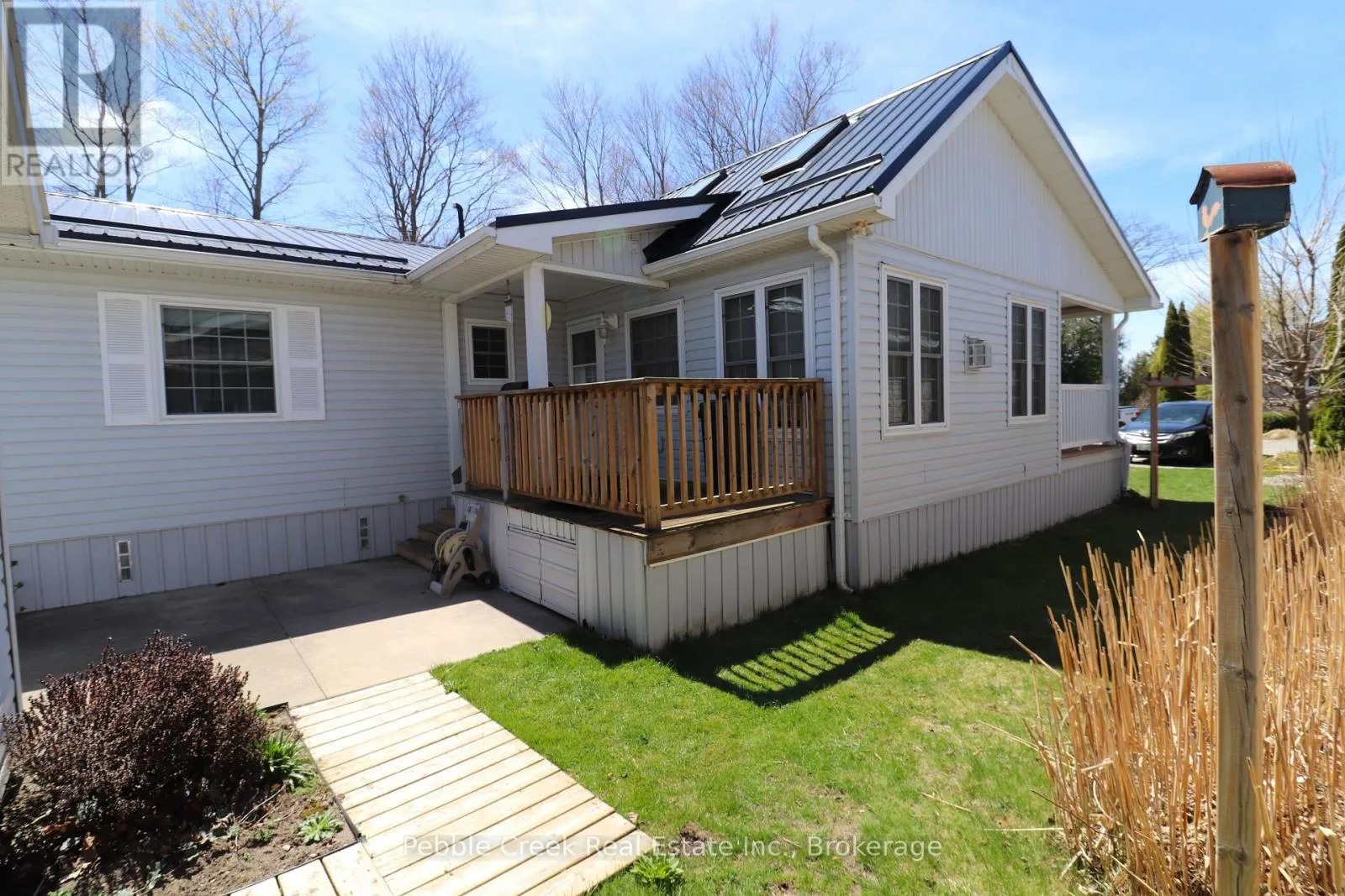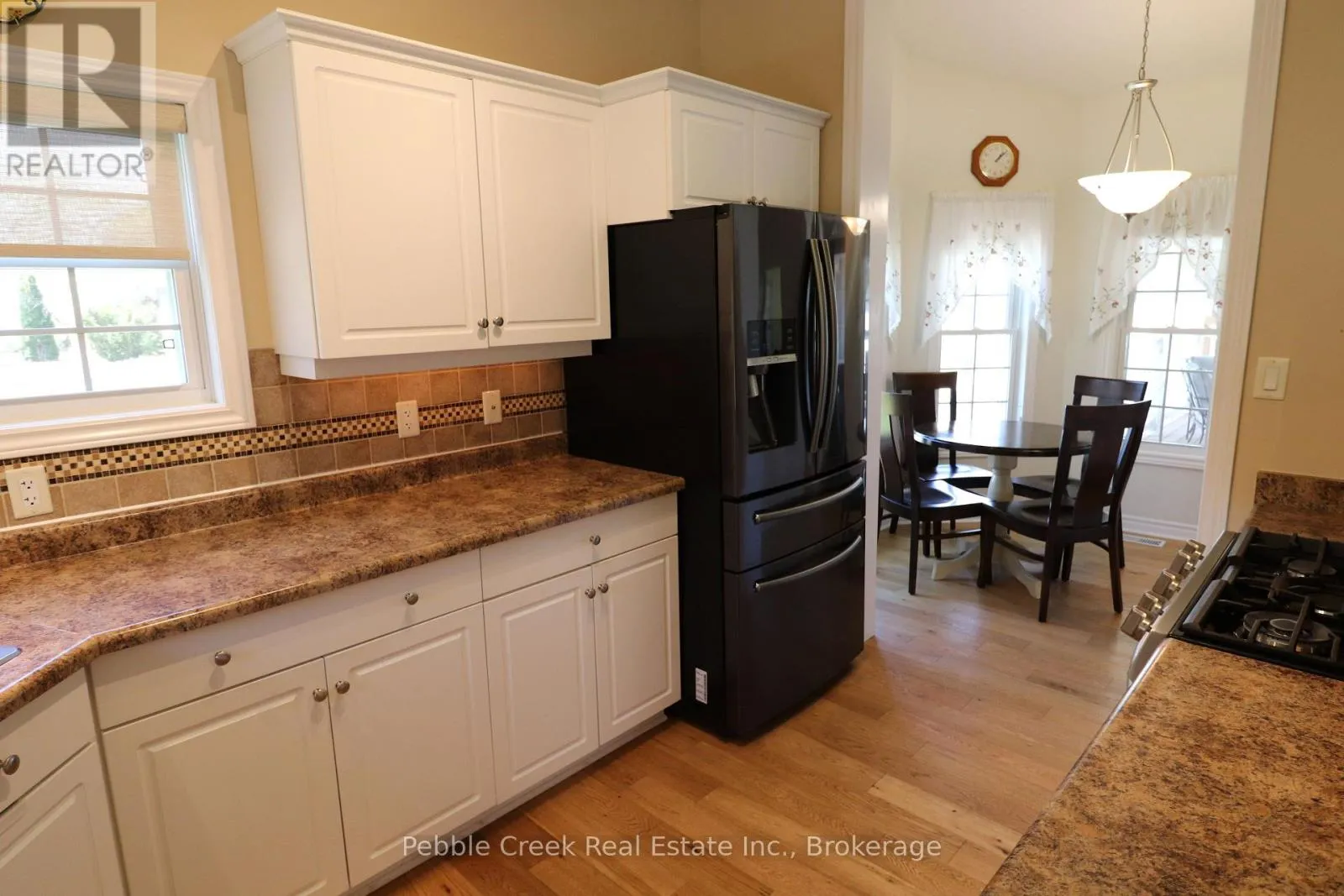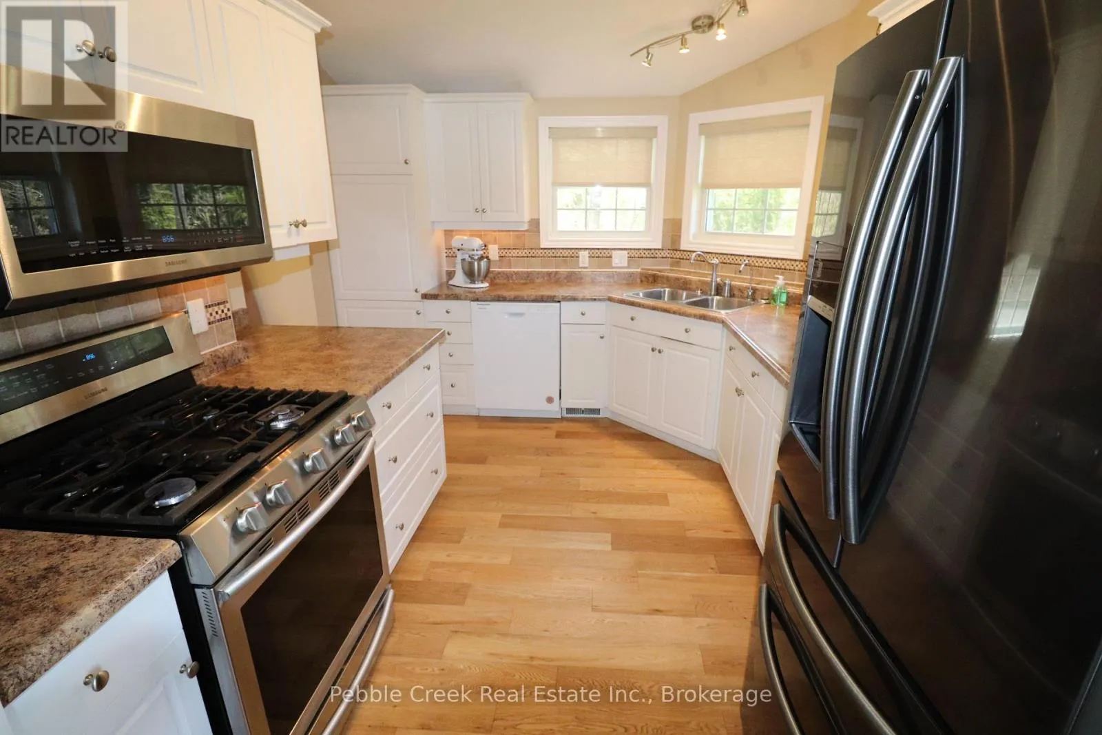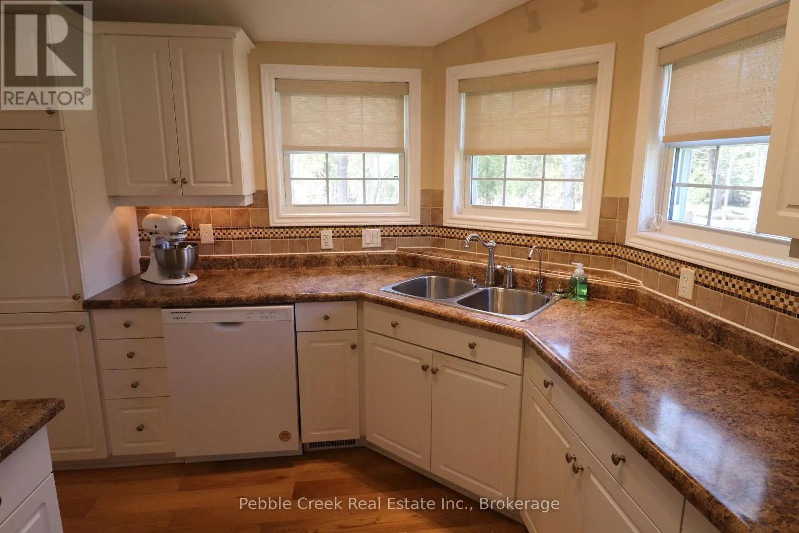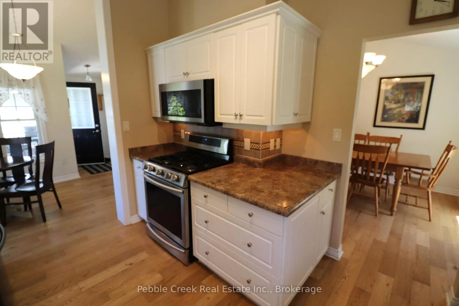 Cross Streets: Iroquois Lane and Algonquin Lane. ** Directions: North from Goderich on Hwy 21, turn West onto Airport Rd. Follow to the end and turn left into Meneset, then South onto Iroquois Lane. Property on the East side at the end. Amazing location! This stunning "Royal Home" is situated on one of the best lots at Meneset on the Lake, an adult lakefront community located just minutes north of Goderich. This fabulous home offers a partial seasonal lakeview and is located across the road from a forested area and path leading to the community's beachfront area! As you walk up to the inviting covered front porch, you will know you've found your new home! Step inside and you will be very impressed with the spacious interior including cathedral ceilings and gorgeous wood flooring. The impressive kitchen features newer premium appliances, an abundance of cabinets and several windows for lots of natural light. There's also a formal dining room, living room and stunning family room addition with cathedral ceiling, skylights and natural gas fireplace! Down the hall from the main living area is a laundry room with sink and primary bedroom with 3 pc en-suite bath and walk in closet. There is a spacious second bedroom as well. At the back of the home there's a deck for grilling, concrete patio, private fenced area and large shed/workshop. Services include forced air gas heating, central A/C, high speed internet and "whole home" generator. An added bonus is the entire roof was replaced in 2022 with long lasting metal. This is a great opportunity to acquire a beautiful home in a very desirable land lease community, complete with its very own club house and recreational activities! If that isn't enough, several golf courses, walking trails and lots of shopping is available nearby in "The "Prettiest town of Canada!" (id:27476)