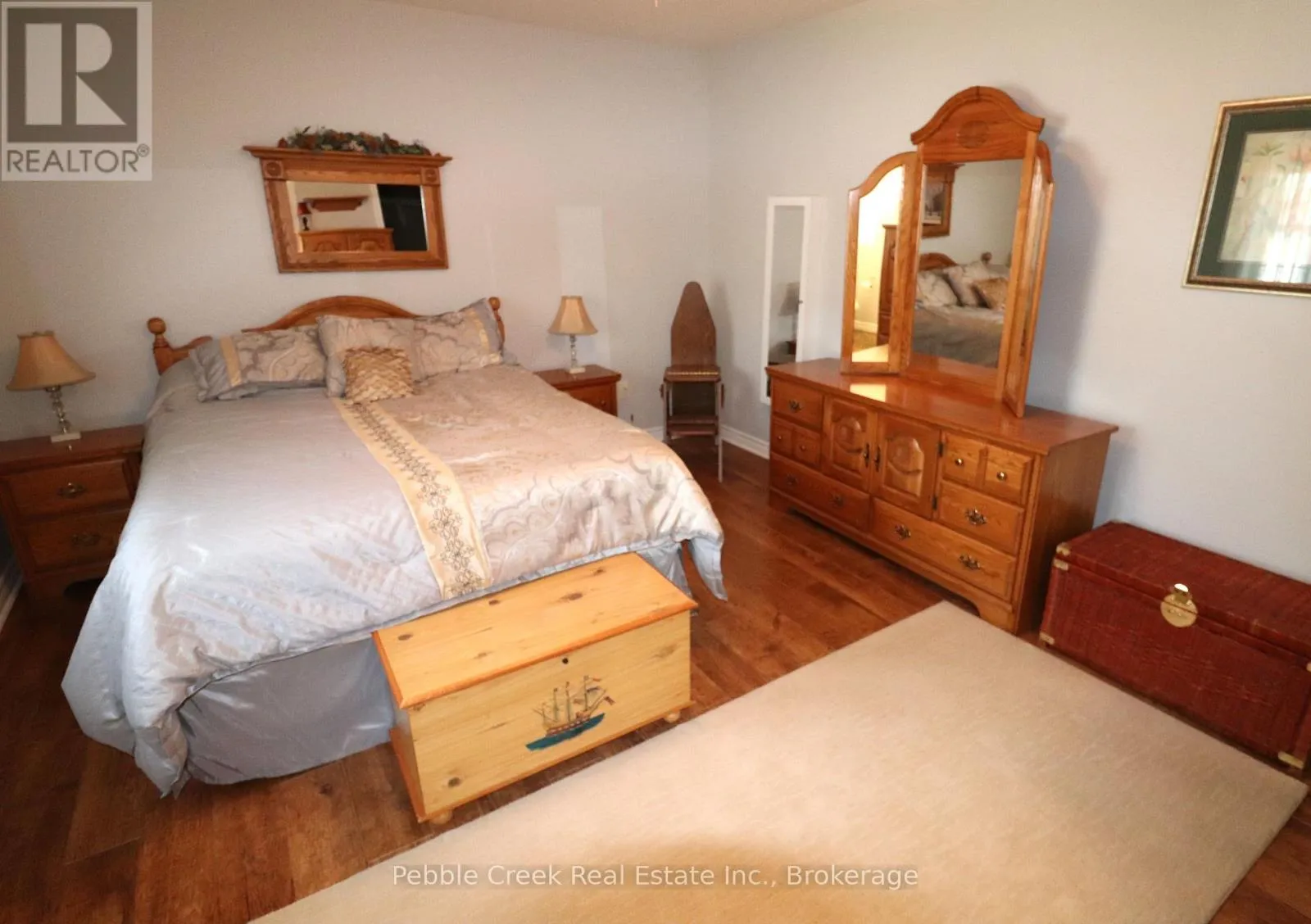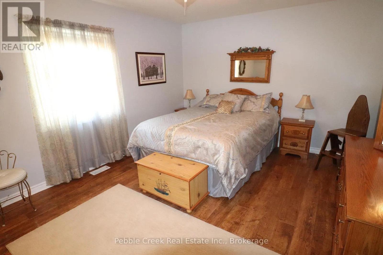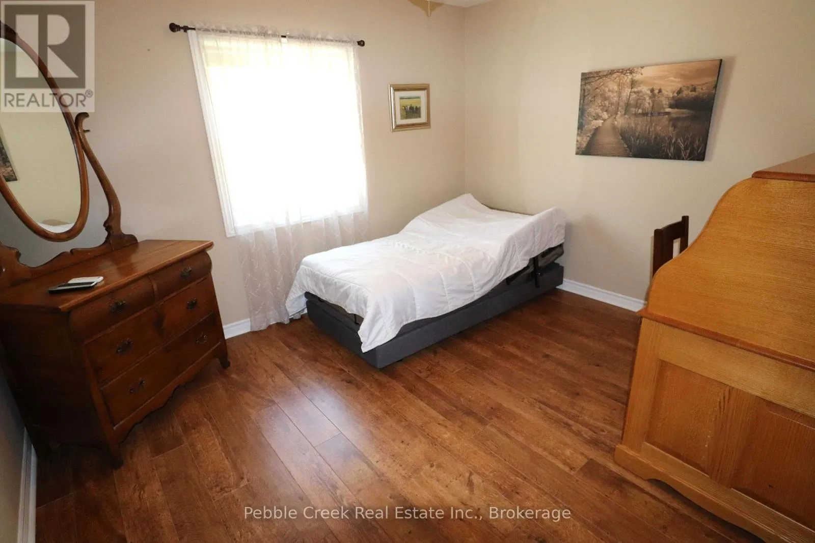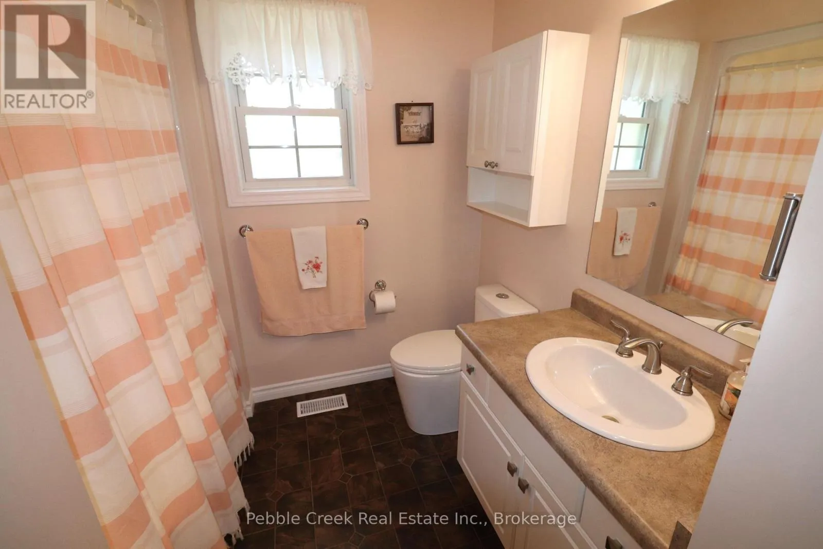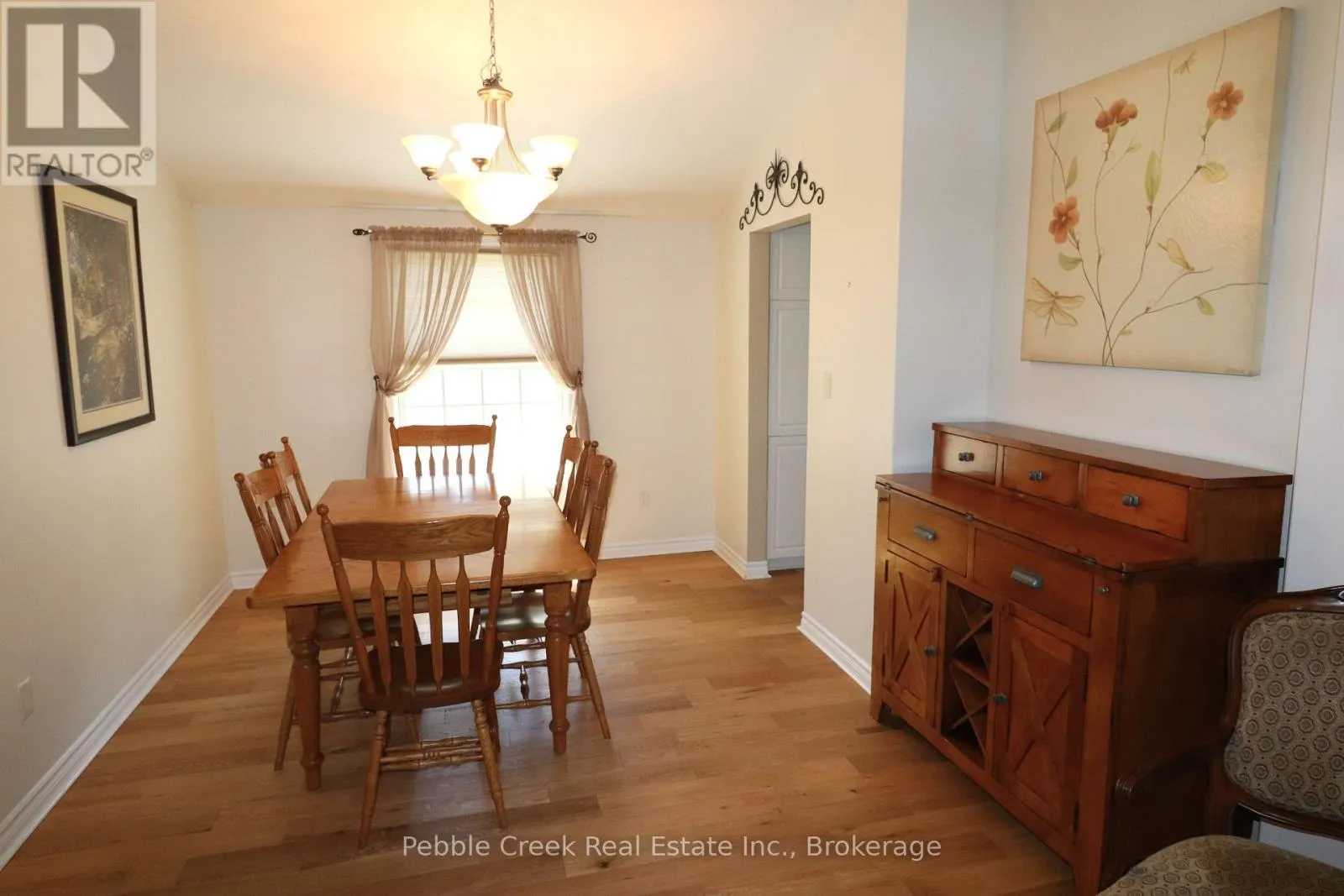 Cross Streets: Iroquois Lane and Algonquin Lane. ** Directions: North from Goderich on Hwy 21, turn West onto Airport Rd. Follow to the end and turn left into Meneset, then South onto Iroquois Lane. Property on the East side at the end. Amazing location! This stunning "Royal Home" is situated on one of the best lots at Meneset on the Lake, an adult lakefront community located just minutes north of Goderich. This fabulous home offers a partial seasonal lakeview and is located across the road from a forested area and path leading to the community's beachfront area! As you walk up to the inviting covered front porch, you will know you've found your new home! Step inside and you will be very impressed with the spacious interior including cathedral ceilings and gorgeous wood flooring. The impressive kitchen features newer premium appliances, an abundance of cabinets and several windows for lots of natural light. There's also a formal dining room, living room and stunning family room addition with cathedral ceiling, skylights and natural gas fireplace! Down the hall from the main living area is a laundry room with sink and primary bedroom with 3 pc en-suite bath and walk in closet. There is a spacious second bedroom as well. At the back of the home there's a deck for grilling, concrete patio, private fenced area and large shed/workshop. Services include forced air gas heating, central A/C, high speed internet and "whole home" generator. An added bonus is the entire roof was replaced in 2022 with long lasting metal. This is a great opportunity to acquire a beautiful home in a very desirable land lease community, complete with its very own club house and recreational activities! If that isn't enough, several golf courses, walking trails and lots of shopping is available nearby in "The "Prettiest town of Canada!" (id:27476)