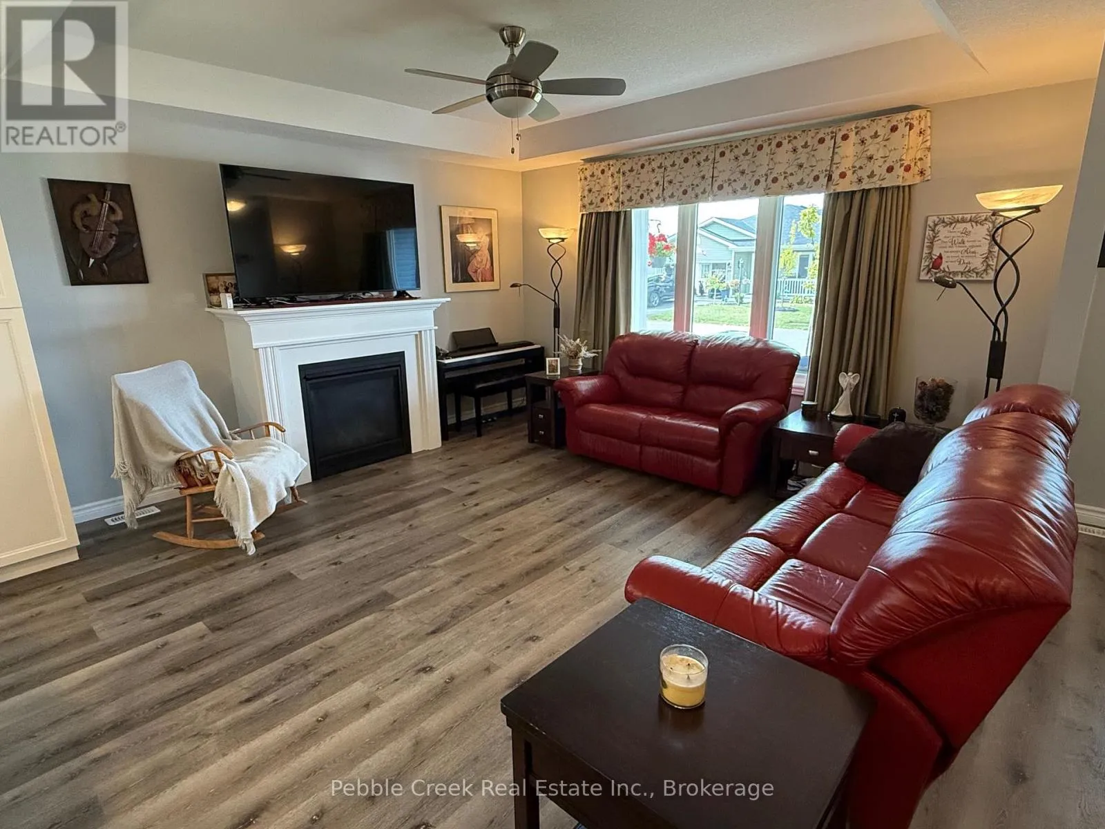 Cross Streets: Windward Way N and Huron Heights Drive. ** Directions: Head North on Hwy 21 from Goderich, turn West into the main entrance of The Bluffs. Proceed toward the lake, then right onto Windward Way N and right onto Huron Heights Drive. Property is on the left side. Welcome to an amazing lifestyle! Imagine living along the shores of Lake Huron, close to Goderich with its historic town square and abundance of shopping, fantastic golf courses and your own private community recreation center with indoor pool, library and entertainment facilities. This very popular Cliffside B with Sunroom model features nearly 1600 sq ft of living space and a long list of upgrades! Once you step inside this beautiful home, you will be impressed with the spacious open concept, living room with gas fireplace and tray ceiling! The adjacent kitchen offers an abundance of cabinets with oversized center island, pots and pan drawers, pantry, corner turntable and upgraded appliances. The dining room also sports a tray ceiling and the cozy sunroom has a vaulted ceiling and patio doors leading to the extended size composite deck with privacy screen at the end. There's also a large primary bedroom with walk-in closet and 3 pc ensuite bath and a spacious guest room with 4pc bath right beside. Additional features include kitchen pantry and extended height cabinets as well as upgraded light fixtures. Also located throughout the home are custom blinds which are sure to impress! The home offers plenty of storage options as well with an attached 2 car garage, lots of closets and a full crawl space underneath! Situated in The Bluffs at Huron land lease community, just a few streets back from the lake and rec center, this home is a must see for anyone considering moving to this upscale adult subdivision! Bonus 6 appliances included! (id:27476)