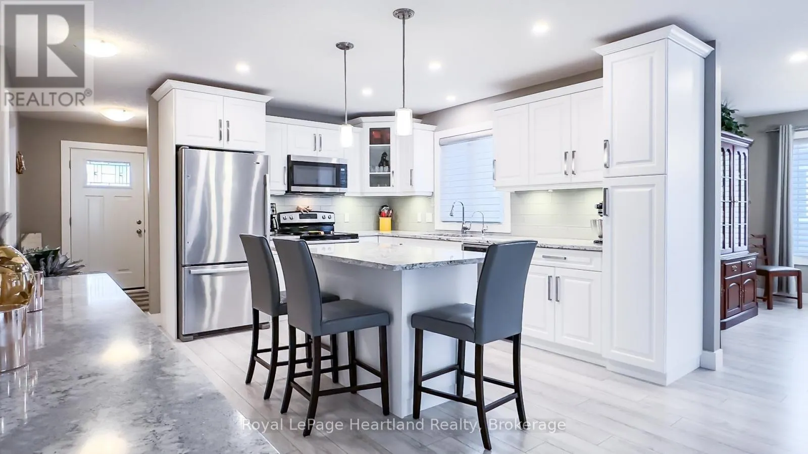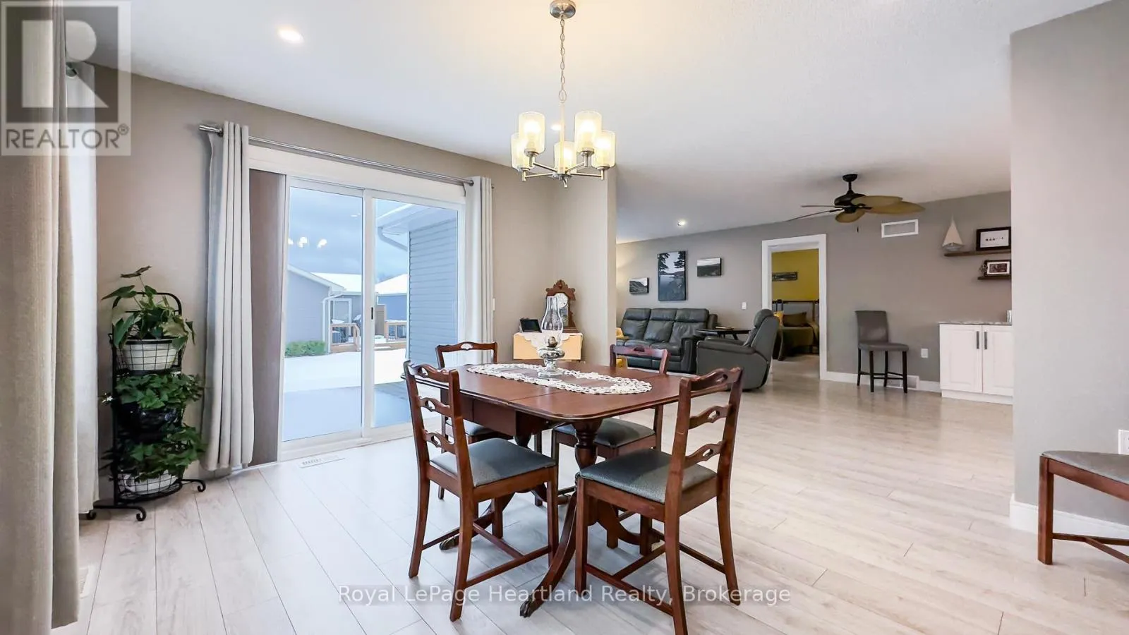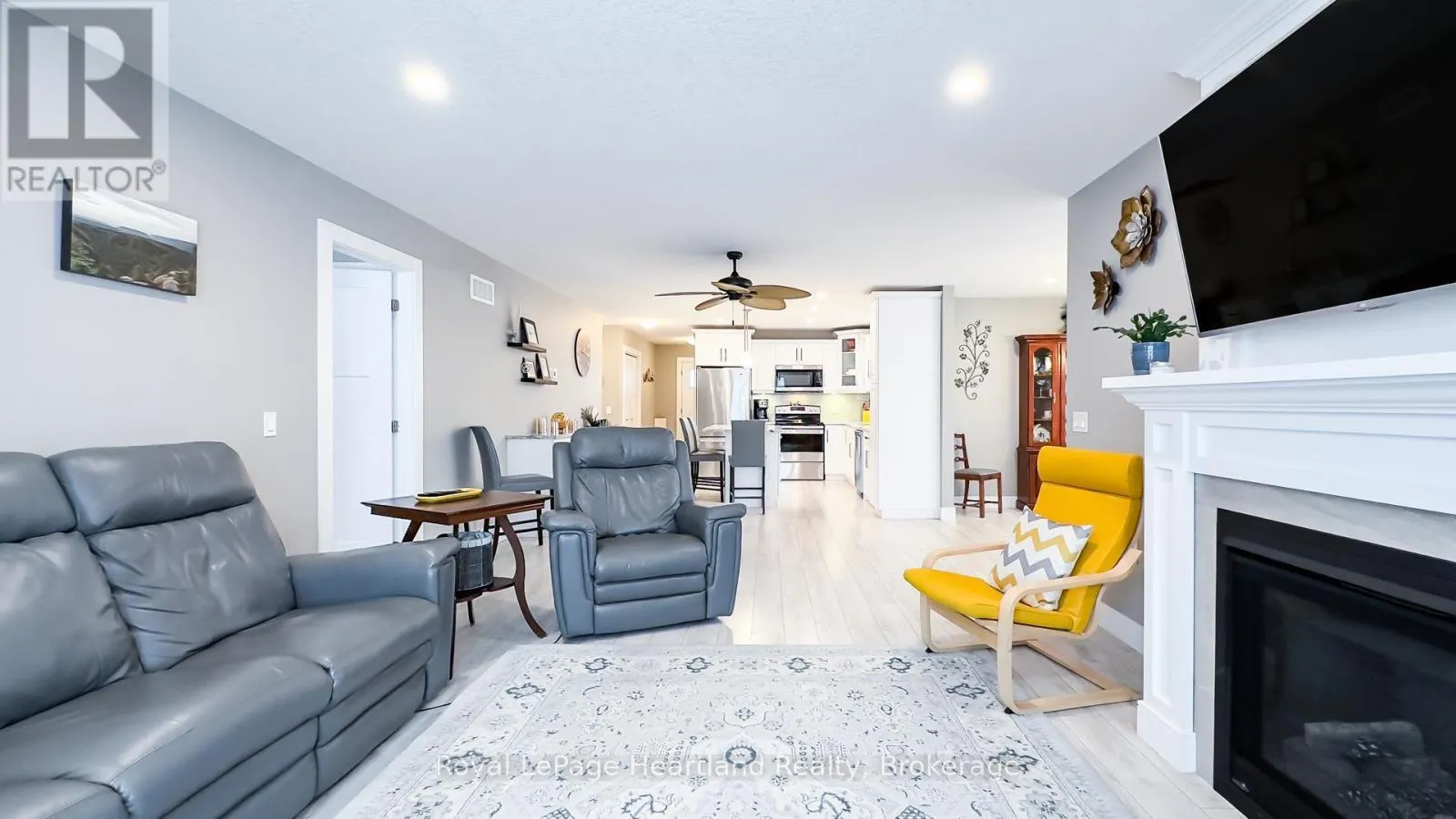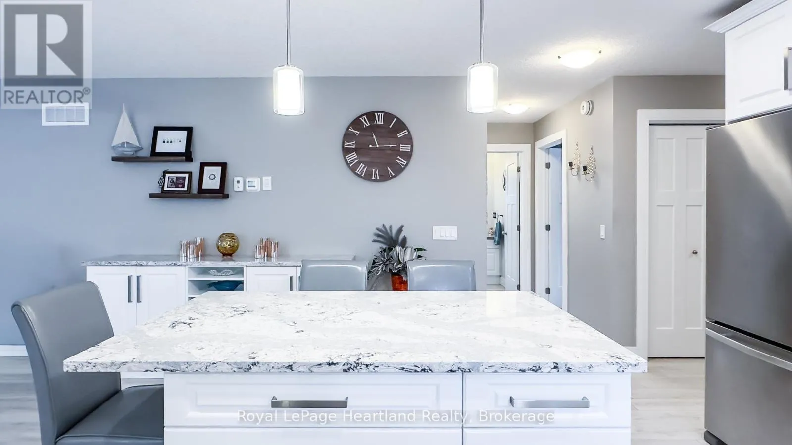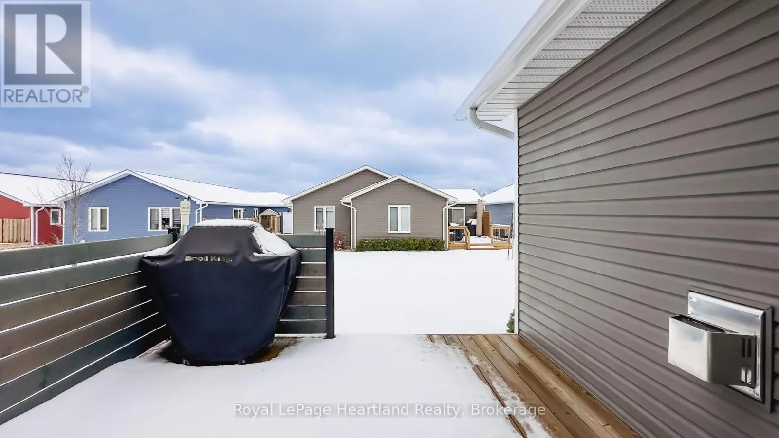Cross Streets: Hwy 21 and West Coast Way. ** Directions: Take Hwy.21 North of Goderich to the main entrance of \"The Bluffs.\" Head west to Windward Way N (third roundabout). Turn right - home on left. When proximity to Lake Huron sunsets, the beach, and community matters, wait no longer! This Lakeside with sunroom model is located in The Bluffs on Huron, offering a full crawl space for storage and a range of upgrades no longer available in later builds. The foyer is a welcome entrance with space right off the attached 2 car garage and main door where you have a full sized closet, room for an entrance table and bench to take your footwear off. A crisp white kitchen dazzles the critical eye featuring quartz countertops including the island and a custom oversized side table/hutch with matching quartz. Additional highlights include upgraded appliances, a pantry, crown moulding, pots-and-pans drawers in the island, undermount lighting, tiled backsplash, an oversized kitchen window, and a glass corner cabinet. The living room is a welcoming room with a gas fireplace with a tile inset, the perfect spot for snuggling in on the chilly evenings. The sunroom is a fantastic space for a second sitting room or alternative dining space. Take note of the upgraded interior doors and custom blinds which elevate the feel of the home.The Lakeside with Sunroom layout offers a generous guest bedroom and a main bathroom positioned at the front of the home. The privately located primary suite includes an ensuite with a 5' shower and a spacious walk-in closet. Outdoors, relax on the deck or install a hot tub on the concrete pad between the deck and garage, both with privacy fencing. Residents enjoy access to an 8,000-square-foot clubhouse featuring an indoor pool, gym, sauna, gathering rooms, and stunning views of Lake Huron, as well as pickleball courts and a dog park. All of this is just minutes from Goderich and local golf courses. (id:27476)