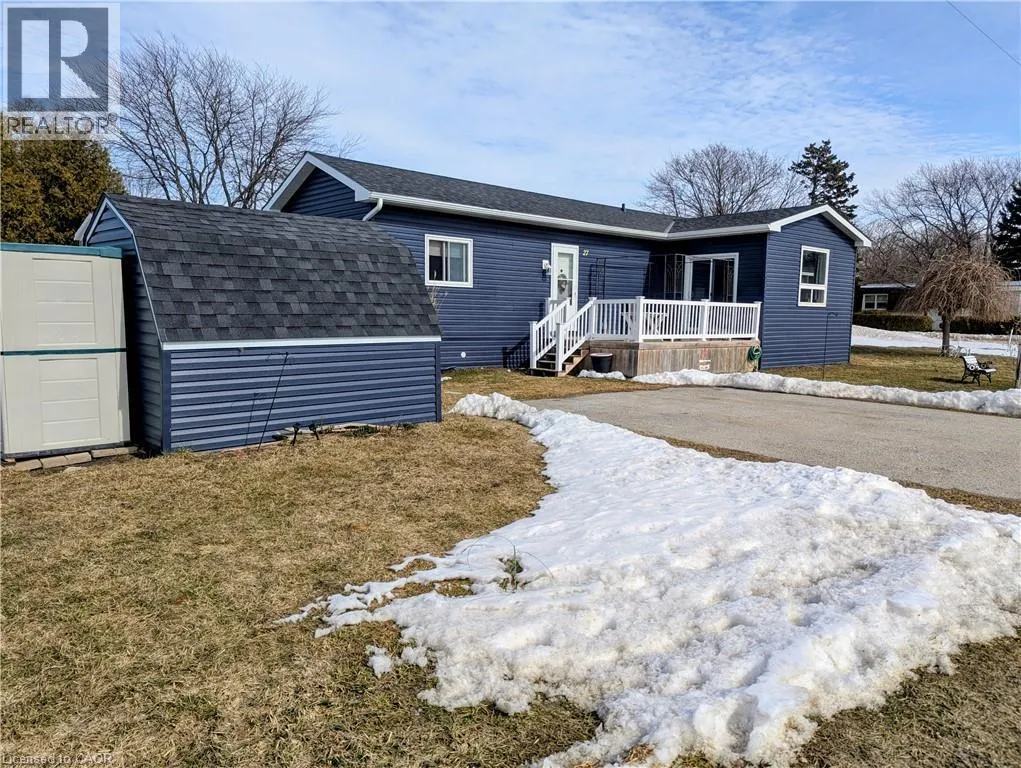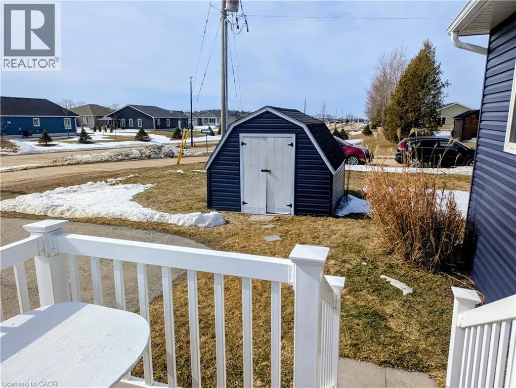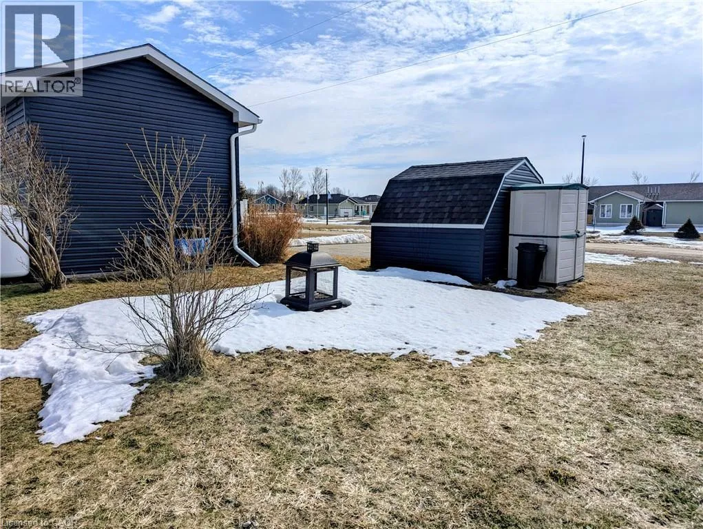 Take Hwy 21 north from Goderich to Huron Haven Village. Turn left into The Bluffs at Huron. At first roundabout turn right then at Poplar Lane turn left. Property is located at the end of the street on right. Watch for sign. Why pay those seasonal cottage prices when you can own your year round home at the lake for a fraction of the price! This Stunning two bedroom modular bungalow located in the beautiful community of Huron Haven Goderich features a vast open concept with sun-room, breakfast bar and cozy dining room set up. Located on one of the largest and nicest lots on an end street with nothing blocking your view. Take advantage of the double asphalt driveway, storage shed, chimania burn pit and an entertainment size deck for all those friends dropping in to enjoy those incredible sunsets on lake Huron. Absolutely nothing needing updating here with the roof, windows, doors, kitchen, flooring throughout, furnace(convertible to natural gas) and central air all replaced in 2021 and even a new dishwasher that has never been used. Natural gas is at the lot line if you would rather hook up than use propane. The community features are swimming pool, dog park, pavilion, recreation centre and a paved path down to the private beach to enjoy the day or watch National Geographic's claimed one of the best sunsets in all of the world. if you are looking for an inexpensive way to retire to the lake then we need to talk VERY SOON! (id:27476)