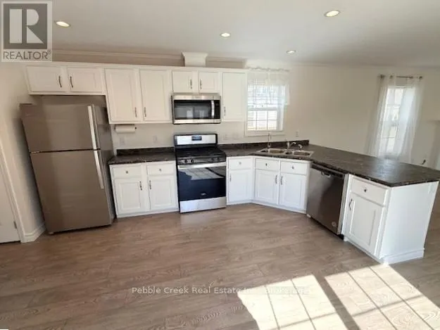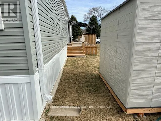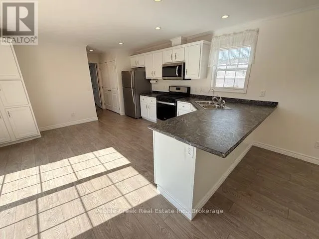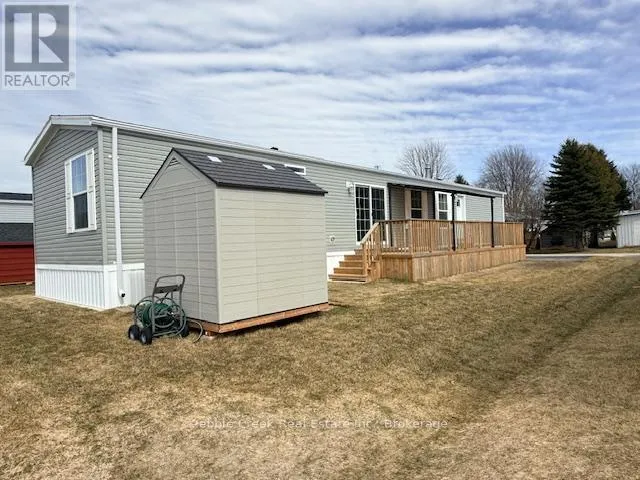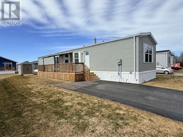 Cross Streets: Bluffs View Blvd & Lookout Lane North. ** Directions: Take Hwy 21 North from Goderich to the main entrance of The Bluffs/Huron Haven Village. Head West toward the lake, then turn North onto Bluffs View Blvd, then East onto Lookout Lane N and follow to the property. Welcome to Huron Haven Village, a charming year-round community located just north of Goderich! This impressive manufactured home is just a few years old and boasts brand new laminate flooring in the kitchen/living room area. You will be very impressed with the bright open concept, spacious kitchen featuring an abundance of cabinets and peninsula along with a large living room sporting a gas fireplace. The primary bedroom offers lots of closet space and 3pc en-suite bath. The generous sized second bedroom is at the other side of the home with 4 pc bath right beside. Utilities include natural gas heating and central A/C. Outside, there is a huge deck for entertaining or relaxing, storage shed and paved driveway! This is a wonderful opportunity to own your own home in the newest section of a quaint land lease community which boasts an outdoor swimming pool and rec center. All this and a great location, close to shopping, golf courses and the shores of Lake Huron! Bonus - fridge, stove, dishwasher, OTR microwave and washer/dryer included! (id:27476)