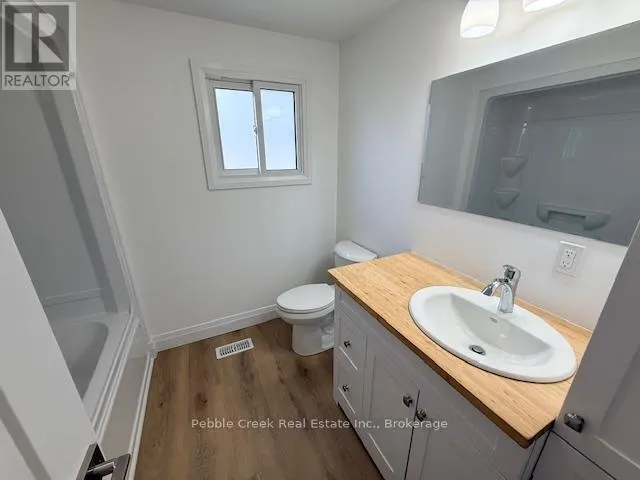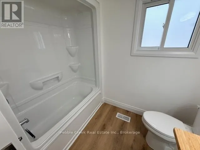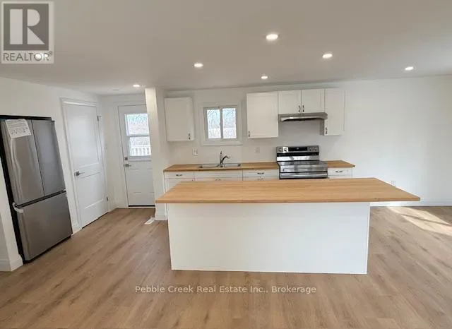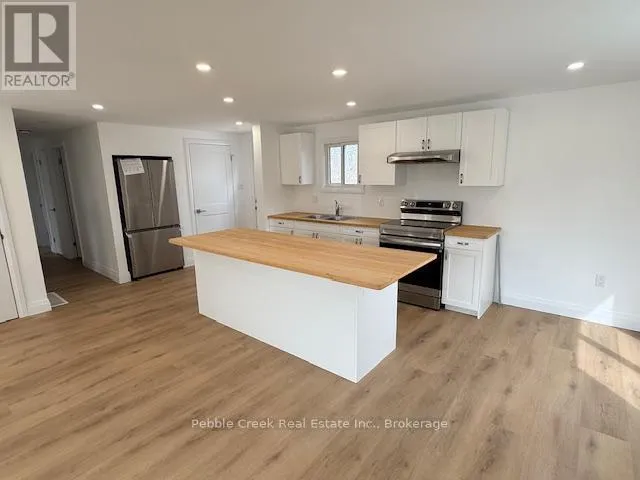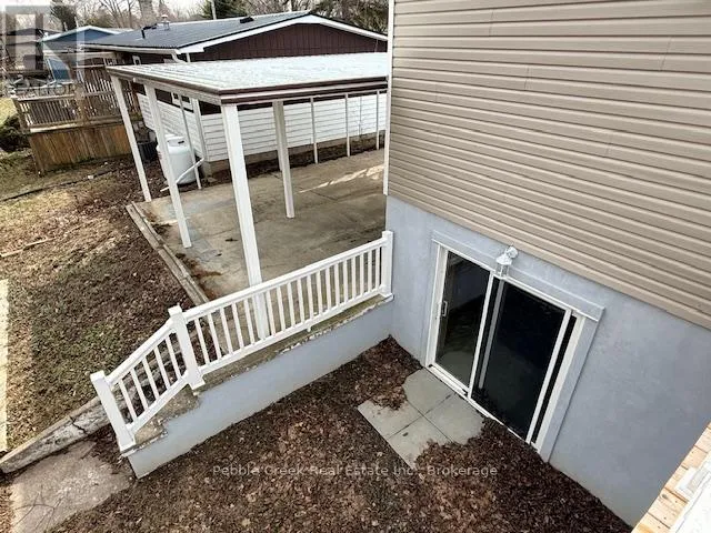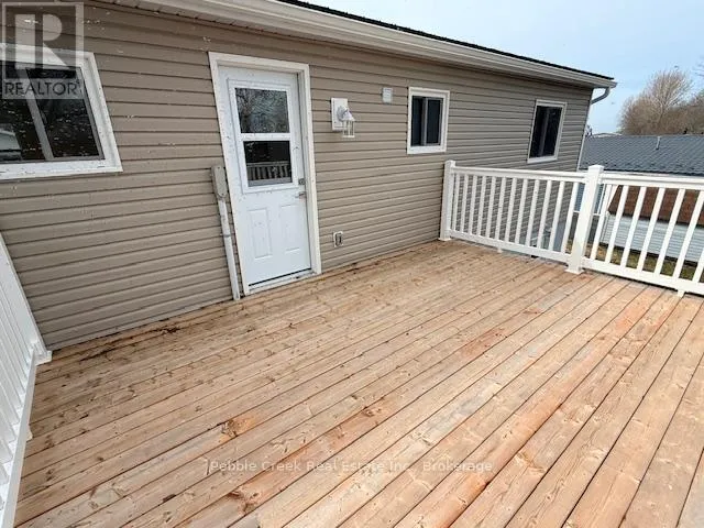 Cross Streets: Watergate Dr and Bluffs View Blvd. ** Directions: Take Hwy 21 North from Goderich to the main entrance of The Bluffs/Huron Haven. Turn right onto Bluffs View Blvd then right onto Watergate Dr. Property is on the left side. Stunning renovation! This beautiful raised ranch home is set on a large private lot backing onto natural environment in Huron Haven Village, just minutes north of Goderich. The main level has been completely renovated and now features an open concept with new kitchen, huge center island, 3 bedrooms and updated bathroom. Quality laminate flooring, new doors, trim and pot lights have been installed throughout the main level as well. Summertime entertaining will be a pleasure on the large raised back deck, overlooking the creek and trees at the back of the property! The full lower level features a laundry room and potential for more living space as there are patio doors leading to the backyard and "rough-in" for a second bathroom. This is a great opportunity to purchase a spacious affordable home located in a year-round land lease community close to shopping, golf courses and the shores of Lake Huron! There's also a rec center and outdoor swimming pool located in the village! Bonus - fridge, stove, dishwasher, washer & dryer included! (id:27476)