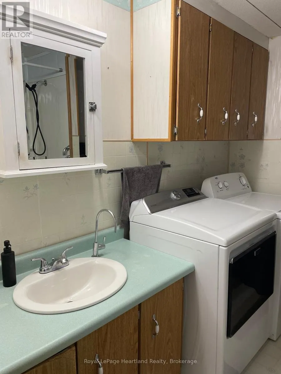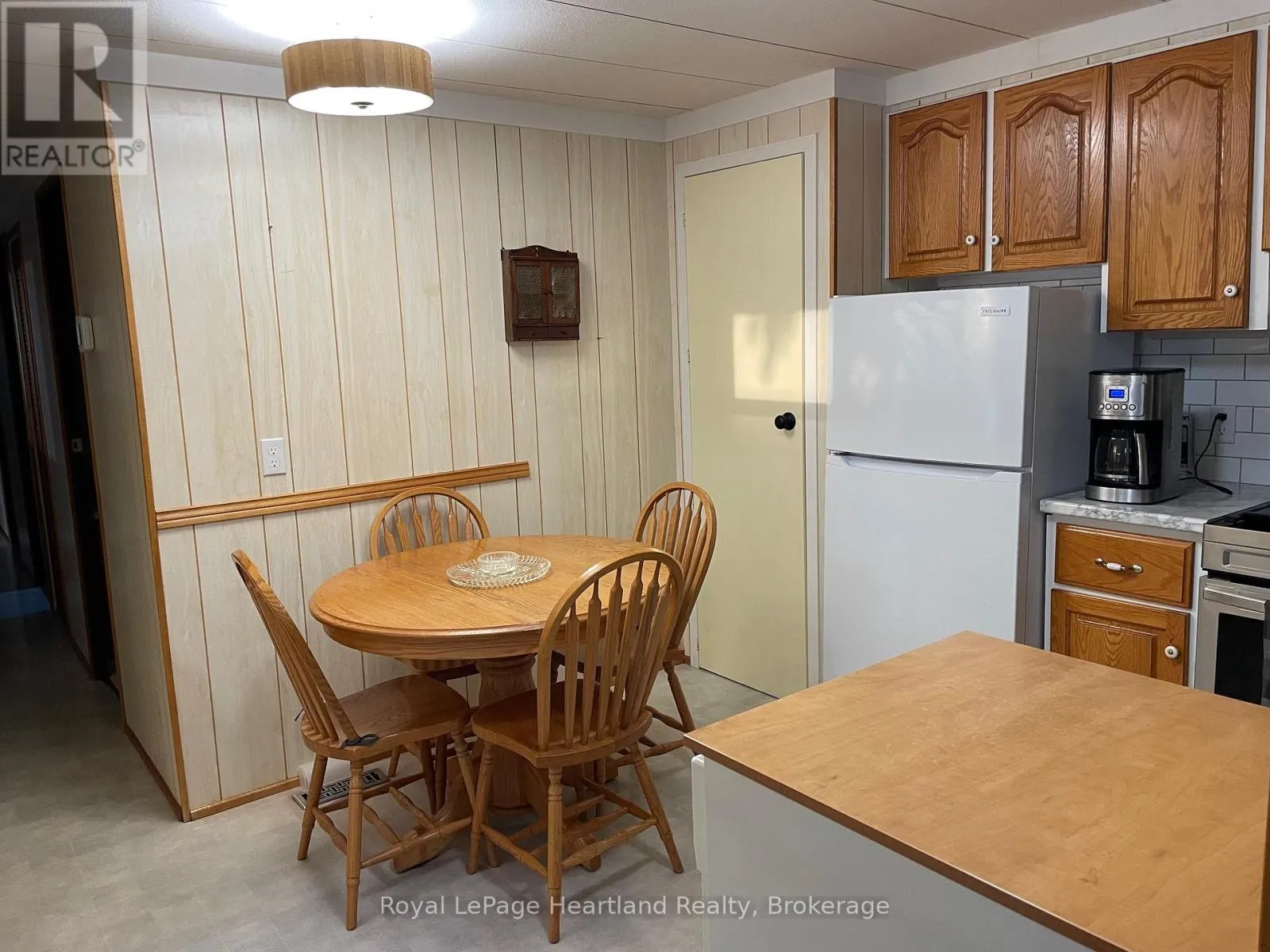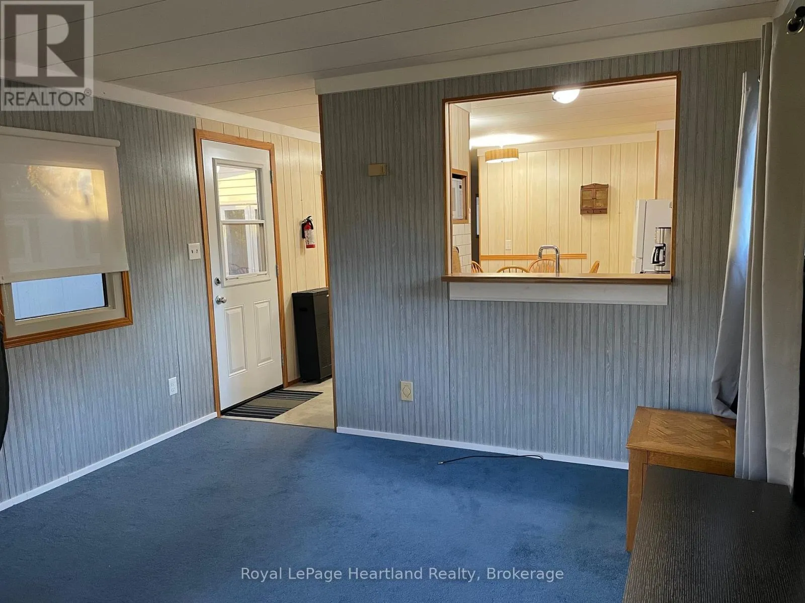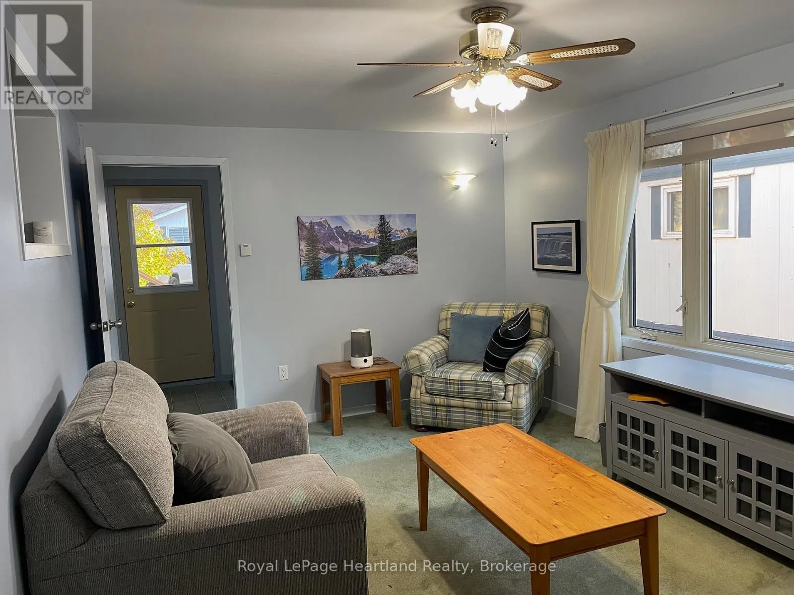 Cross Streets: Hwy. 21 North & West Coast Way. ** Directions: Hwy. 21 North from Goderich to the main entrance of the Bluffs and Huron Haven Village. Follow West Coast Way to the first roundabout and turn onto Lake Dr. N, veer to the right then turn North onto Sutton Dr. Property on the right. Well maintained, affordable home for families or individuals looking to downsize is now being offered for sale at 36 Sutton Dr. in the land leased park known as Huron Haven Village, located just north of the Town of Goderich. The home consists of 3 bedrooms, 1bathroom, a kitchen with upgrades consisting of a new countertop, backsplash, new 7 in 1 stove, new fridge, updated cabinets and eat in dining area. The living room is located at the front of the home and a secondary cozy sitting room with propane fireplace is conveniently located at the back of the home. Exit to the backyard from the sitting room where you will find a private deck with no neighbours behind. Features of this home include new exterior doors, replacement windows throughout with tint on some, central AC, new electric owned hot water heater, new washer 2021 and dryer 2024. Outside you will find 2 new storage sheds, the roof on the home was replaced approx. 10 years ago, it is vinyl sided and the back of the lot is lined with mature trees for privacy. The community offers an outdoor inground swimming pool and clubhouse. Call your REALTOR today to book a showing. (id:27476)