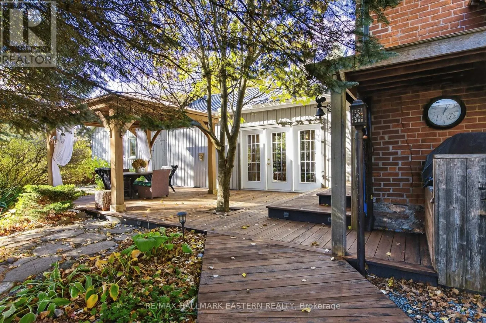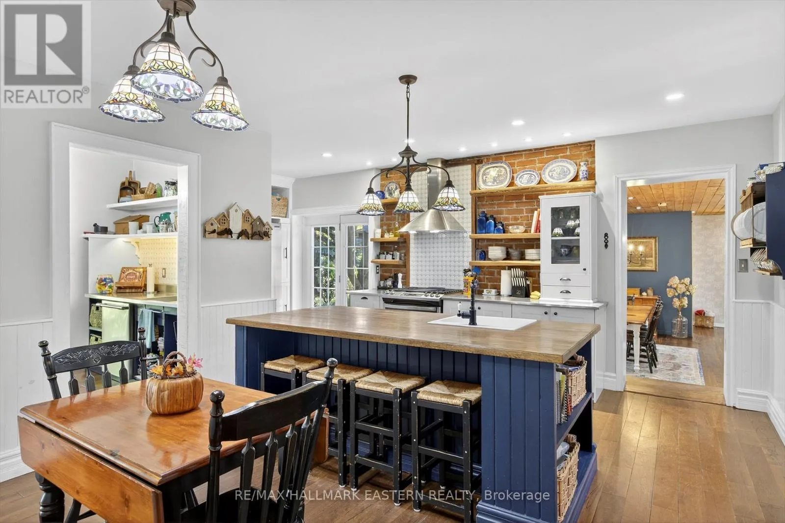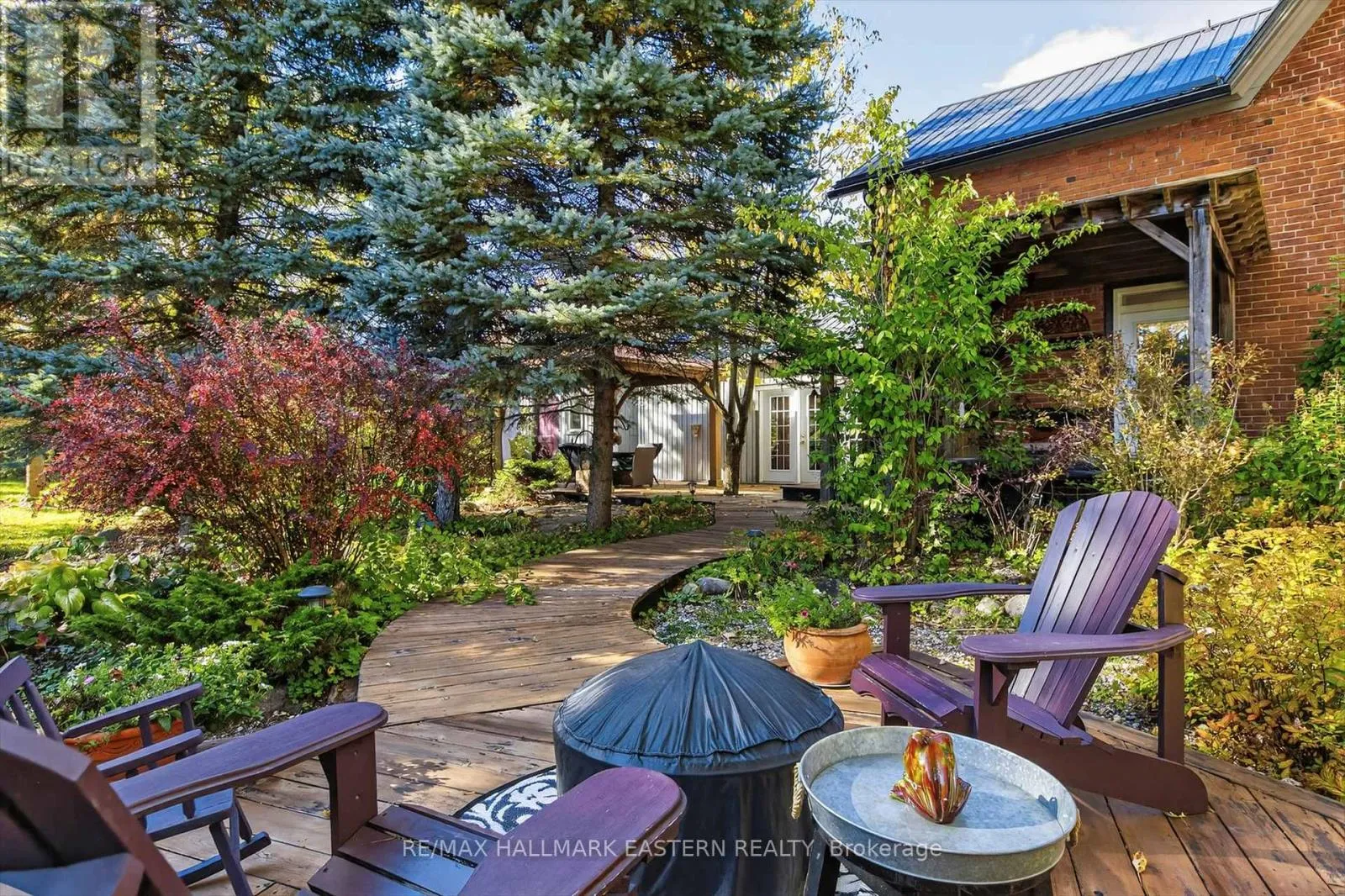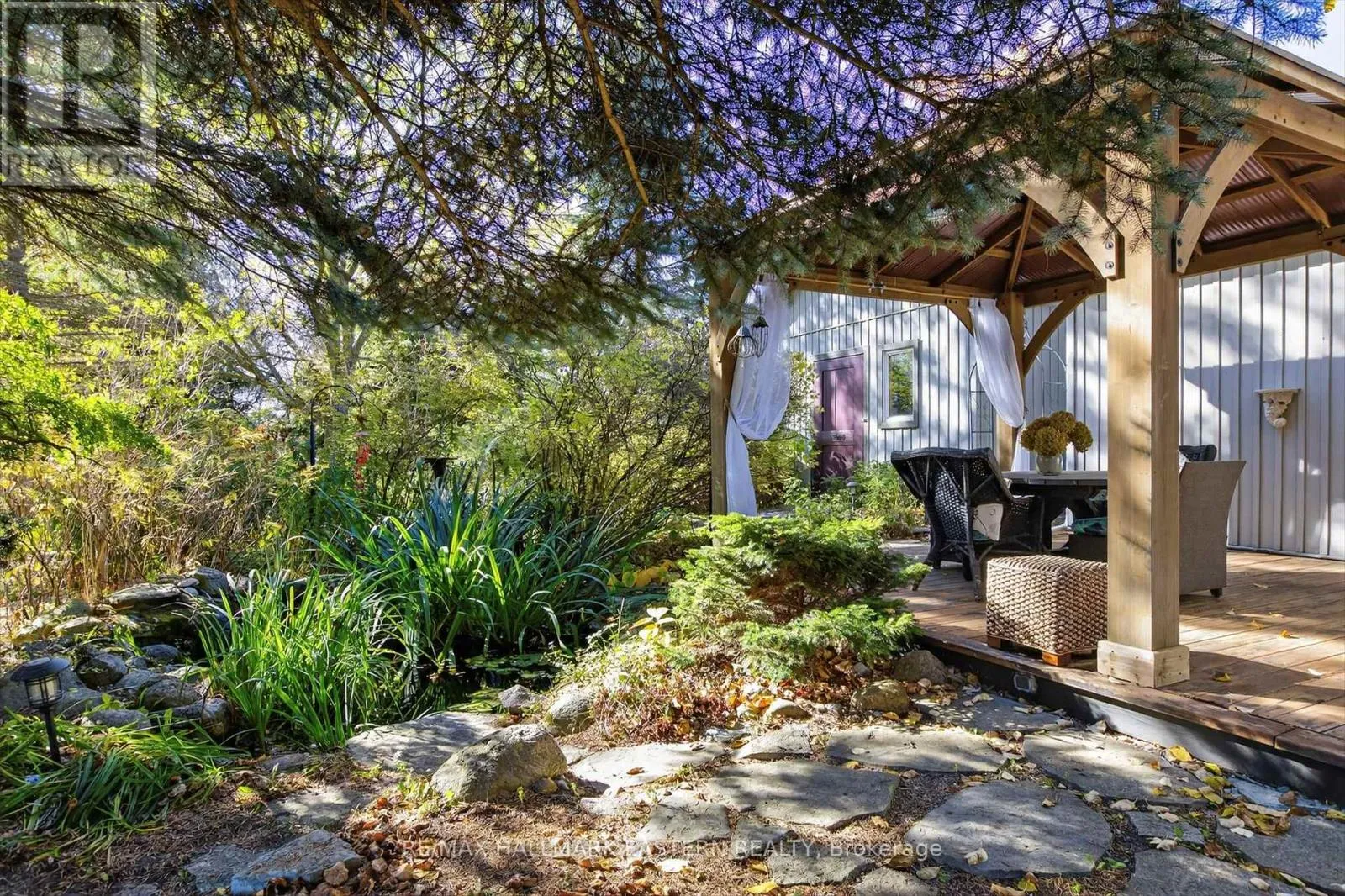 Cross Streets: County Rd 45 / County Rd 42. ** Directions: North on County Rd 45 from County Rd 42/Birch St. Welcome to a home that perfectly blends timeless character with modern comfort - a place where every corner tells a story. This 4-bedroom, 4-bathroom beauty offers the warmth and craftsmanship of a century home with the thoughtful modern upgrades of today. Step through the large front foyer and into the inviting library with its rich hardwood floors, built-in shelving, and bright windows, an ideal spot to read, work, or unwind. The main floor flows seamlessly, featuring charming original trim and wainscoting, a cozy yet spacious living room with a bay window and gas fireplace, and beautiful farmhouse kitchen designed for both function and gathering. With stainless steel appliances including a gas range and side-by-side Frigidaire Professional refrigerator/freezer, a butcher-block island, two walkouts, and a spacious Butlers kitchen with a second sink, plus a walk-in pantry...entertaining here is effortless. The formal dining room radiates charm with wide plank floors, an electric fireplace, tongue-and-groove pine ceiling, and French doors leading to the outdoors. Upstairs, the primary retreat offers a vaulted ceiling with exposed beams, a 3 pc ensuite with heated floors and glass shower, and a sense of calm that feels like a private getaway. 3 additional bedrooms upstairs with an upper-level laundry room for convenience. Outside, the magic continues beautifully landscaped gardens surround a park-like backyard with a deck, pergola, koi pond, built-in BBQ, hot tub, and fire pit retreat connected by a charming boardwalk. A large detached workshop with hydro adds versatility and storage, while the two covered porches invite you to enjoy the changing seasons. From the curb appeal to the craftsmanship, this property isn't just a house it's a lifestyle, offering space, warmth, and character in every detail. (id:27476)