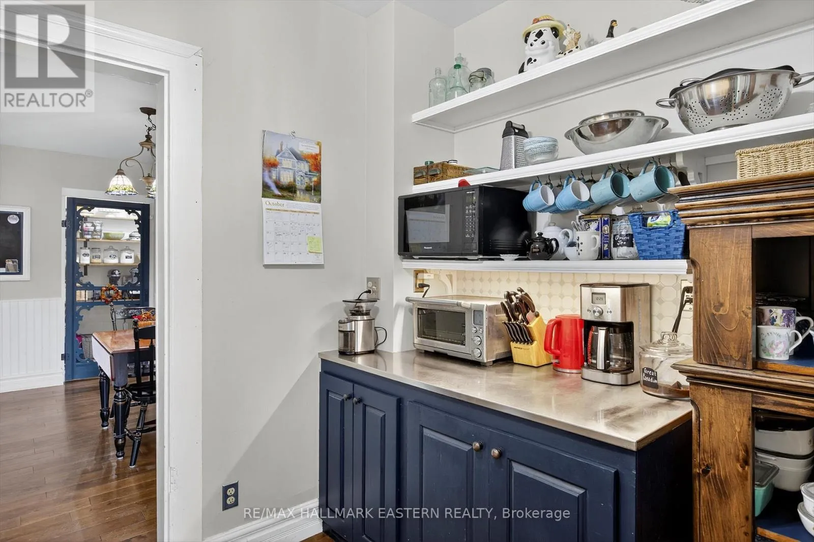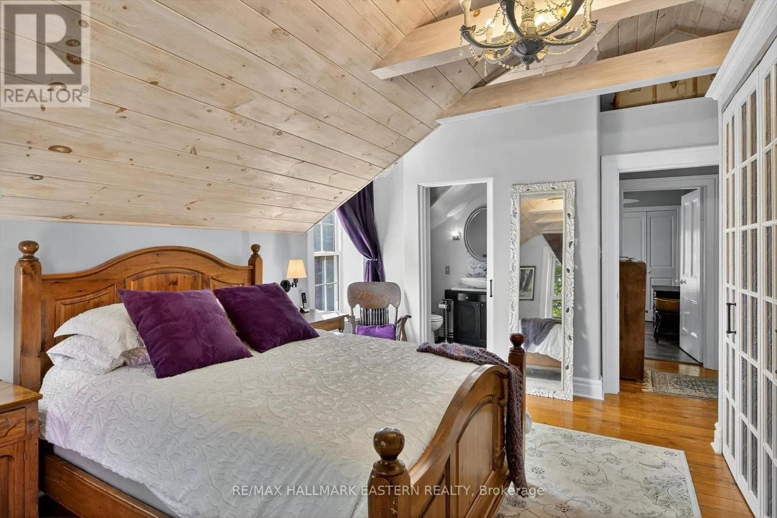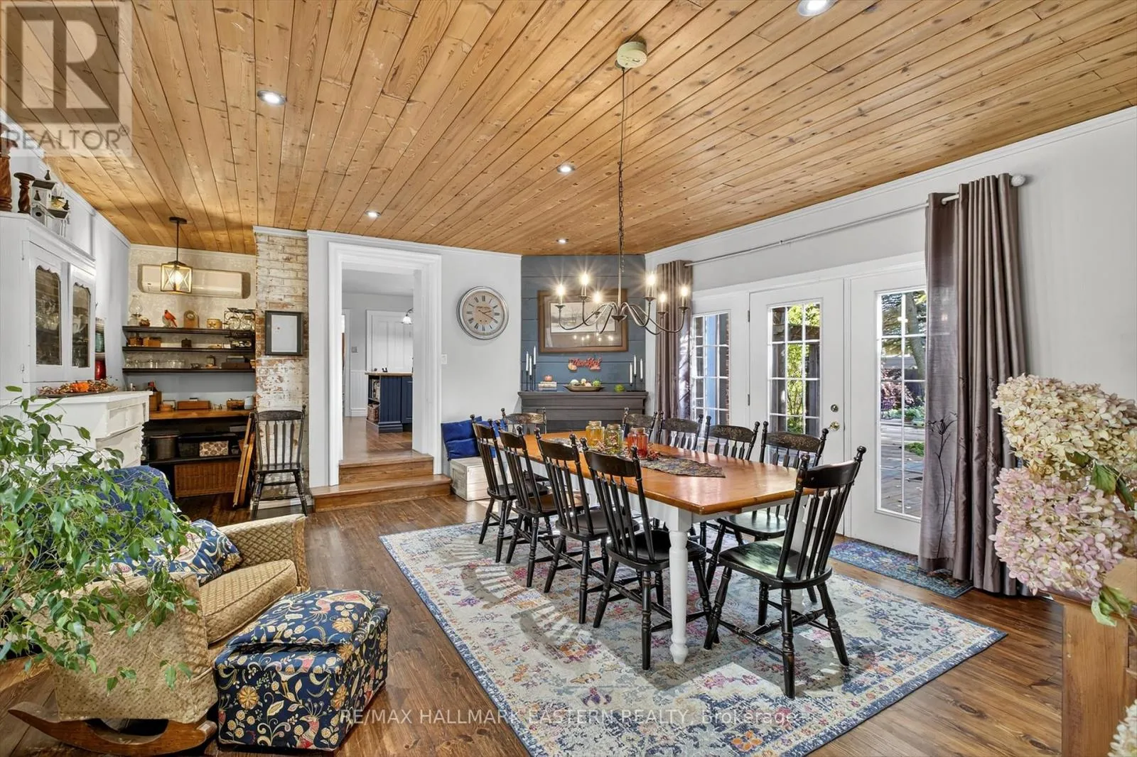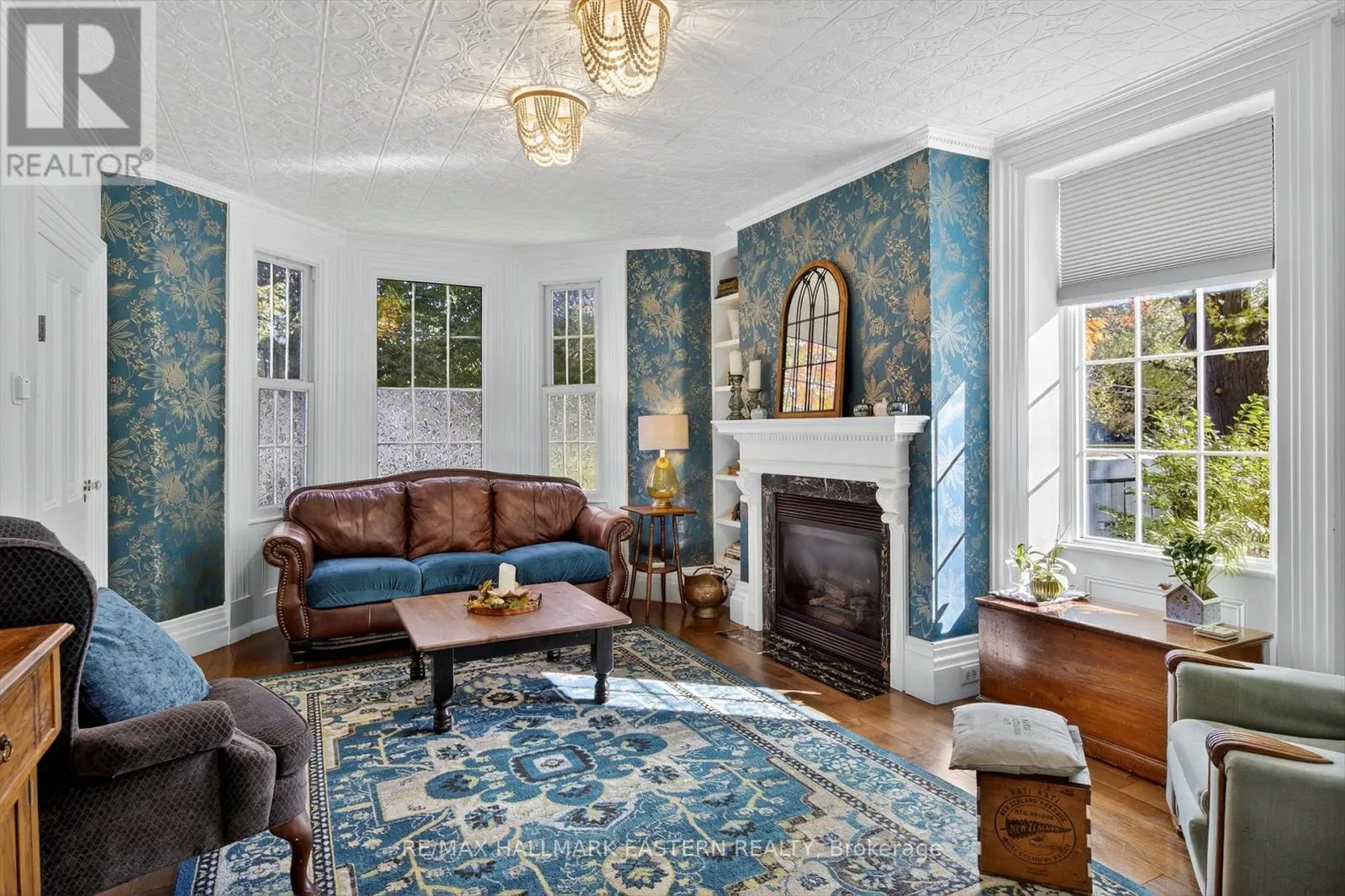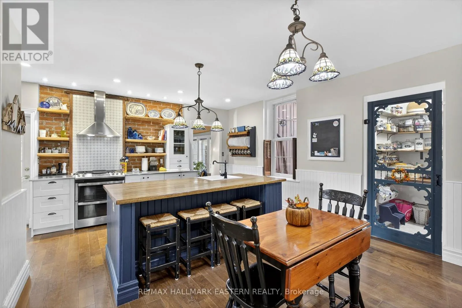 Cross Streets: County Rd 45 / County Rd 42. ** Directions: North on County Rd 45 from County Rd 42/Birch St. Welcome to a home that perfectly blends timeless character with modern comfort - a place where every corner tells a story. This 4-bedroom, 4-bathroom beauty offers the warmth and craftsmanship of a century home with the thoughtful modern upgrades of today. Step through the large front foyer and into the inviting library with its rich hardwood floors, built-in shelving, and bright windows, an ideal spot to read, work, or unwind. The main floor flows seamlessly, featuring charming original trim and wainscoting, a cozy yet spacious living room with a bay window and gas fireplace, and beautiful farmhouse kitchen designed for both function and gathering. With stainless steel appliances including a gas range and side-by-side Frigidaire Professional refrigerator/freezer, a butcher-block island, two walkouts, and a spacious Butlers kitchen with a second sink, plus a walk-in pantry...entertaining here is effortless. The formal dining room radiates charm with wide plank floors, an electric fireplace, tongue-and-groove pine ceiling, and French doors leading to the outdoors. Upstairs, the primary retreat offers a vaulted ceiling with exposed beams, a 3 pc ensuite with heated floors and glass shower, and a sense of calm that feels like a private getaway. 3 additional bedrooms upstairs with an upper-level laundry room for convenience. Outside, the magic continues beautifully landscaped gardens surround a park-like backyard with a deck, pergola, koi pond, built-in BBQ, hot tub, and fire pit retreat connected by a charming boardwalk. A large detached workshop with hydro adds versatility and storage, while the two covered porches invite you to enjoy the changing seasons. From the curb appeal to the craftsmanship, this property isn't just a house it's a lifestyle, offering space, warmth, and character in every detail. (id:27476)