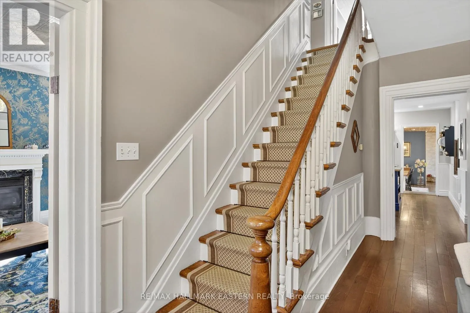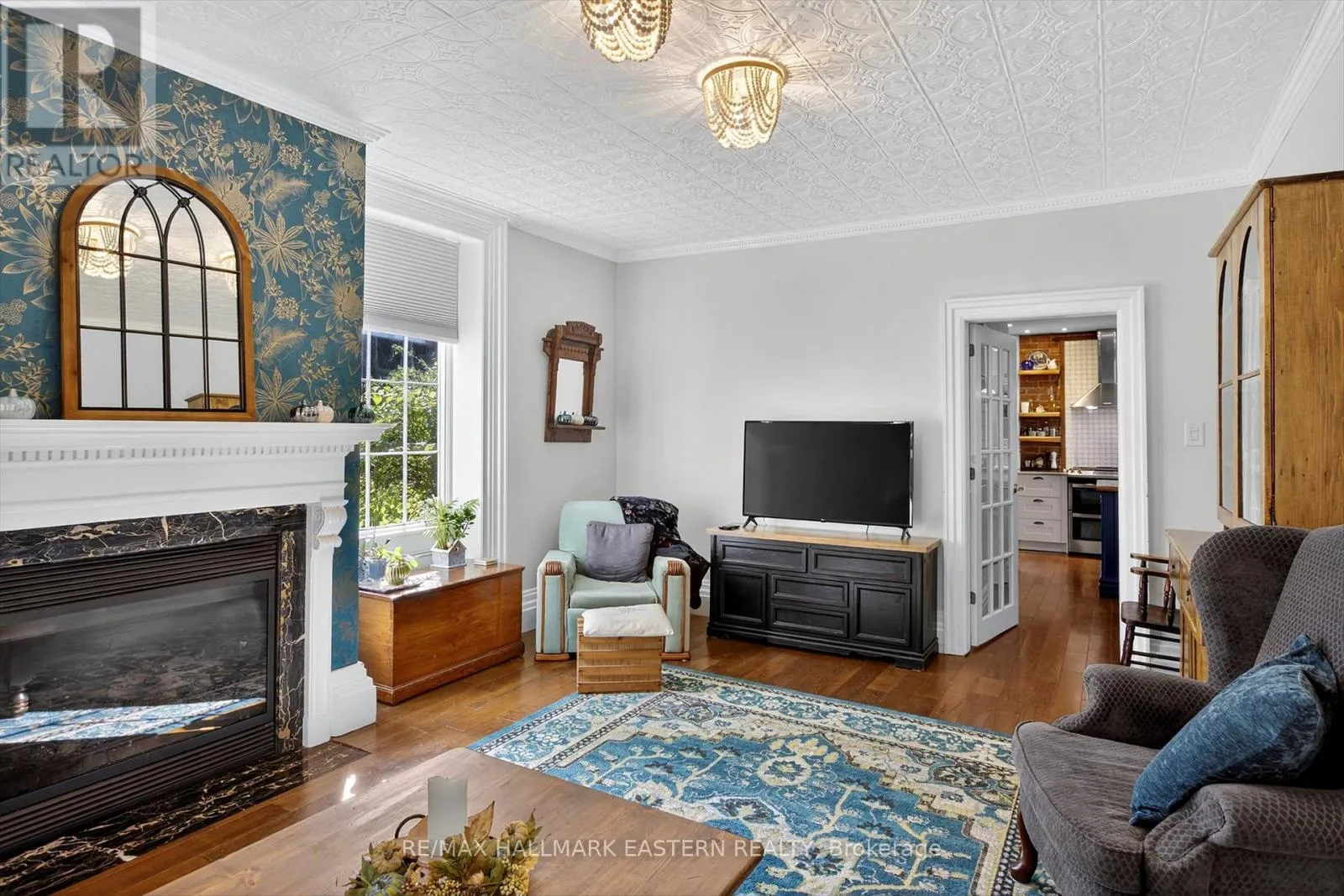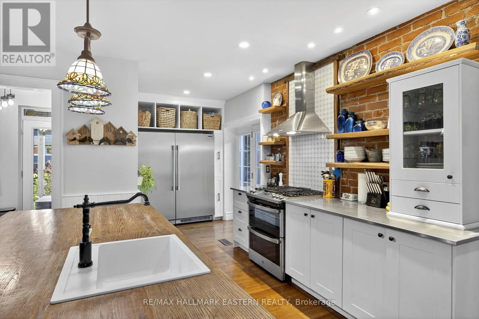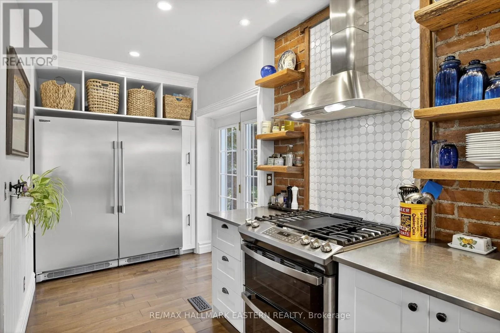 Cross Streets: County Rd 45 / County Rd 42. ** Directions: North on County Rd 45 from County Rd 42/Birch St. Welcome to a home that perfectly blends timeless character with modern comfort - a place where every corner tells a story. This 4-bedroom, 4-bathroom beauty offers the warmth and craftsmanship of a century home with the thoughtful modern upgrades of today. Step through the large front foyer and into the inviting library with its rich hardwood floors, built-in shelving, and bright windows, an ideal spot to read, work, or unwind. The main floor flows seamlessly, featuring charming original trim and wainscoting, a cozy yet spacious living room with a bay window and gas fireplace, and beautiful farmhouse kitchen designed for both function and gathering. With stainless steel appliances including a gas range and side-by-side Frigidaire Professional refrigerator/freezer, a butcher-block island, two walkouts, and a spacious Butlers kitchen with a second sink, plus a walk-in pantry...entertaining here is effortless. The formal dining room radiates charm with wide plank floors, an electric fireplace, tongue-and-groove pine ceiling, and French doors leading to the outdoors. Upstairs, the primary retreat offers a vaulted ceiling with exposed beams, a 3 pc ensuite with heated floors and glass shower, and a sense of calm that feels like a private getaway. 3 additional bedrooms upstairs with an upper-level laundry room for convenience. Outside, the magic continues beautifully landscaped gardens surround a park-like backyard with a deck, pergola, koi pond, built-in BBQ, hot tub, and fire pit retreat connected by a charming boardwalk. A large detached workshop with hydro adds versatility and storage, while the two covered porches invite you to enjoy the changing seasons. From the curb appeal to the craftsmanship, this property isn't just a house it's a lifestyle, offering space, warmth, and character in every detail. (id:27476)