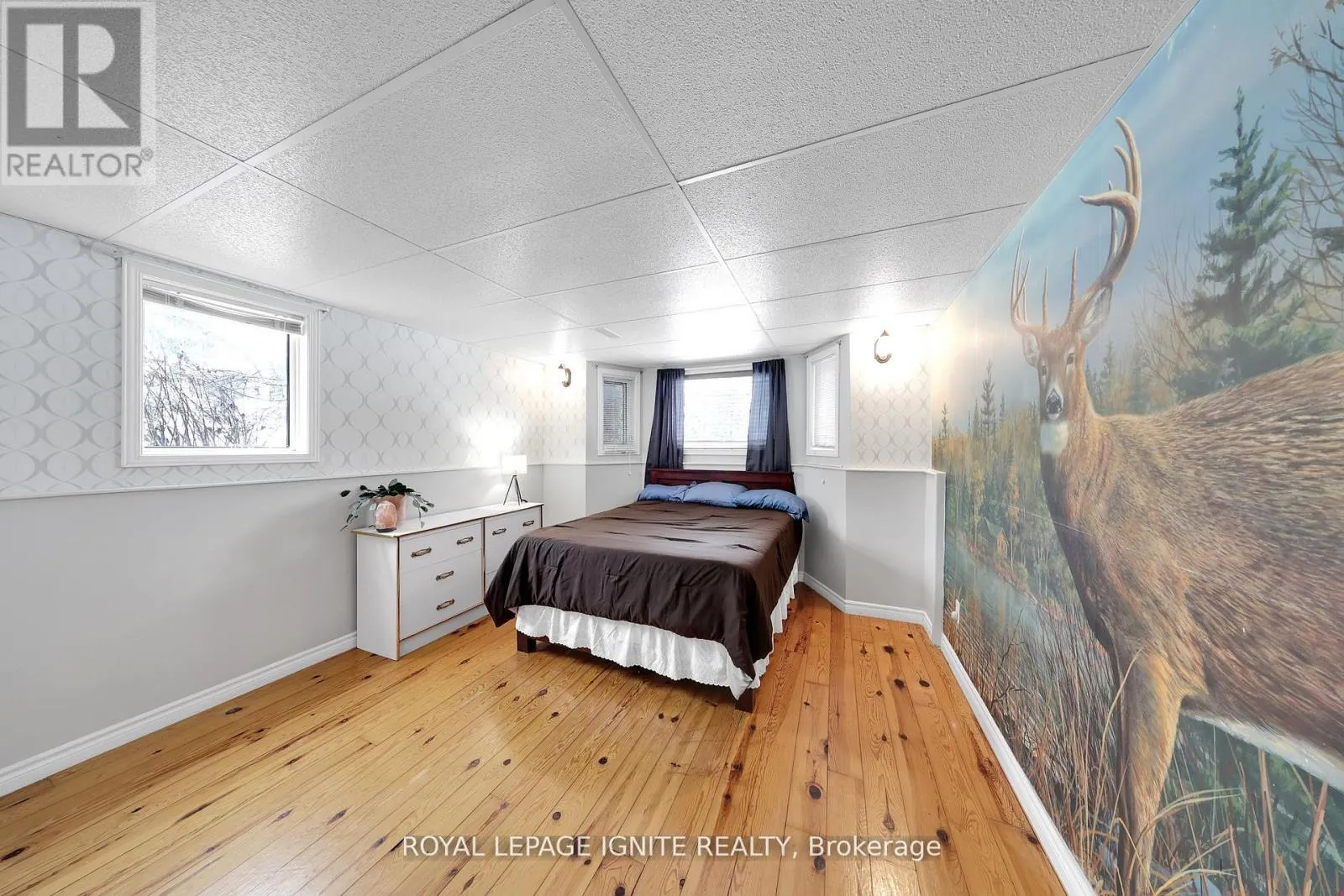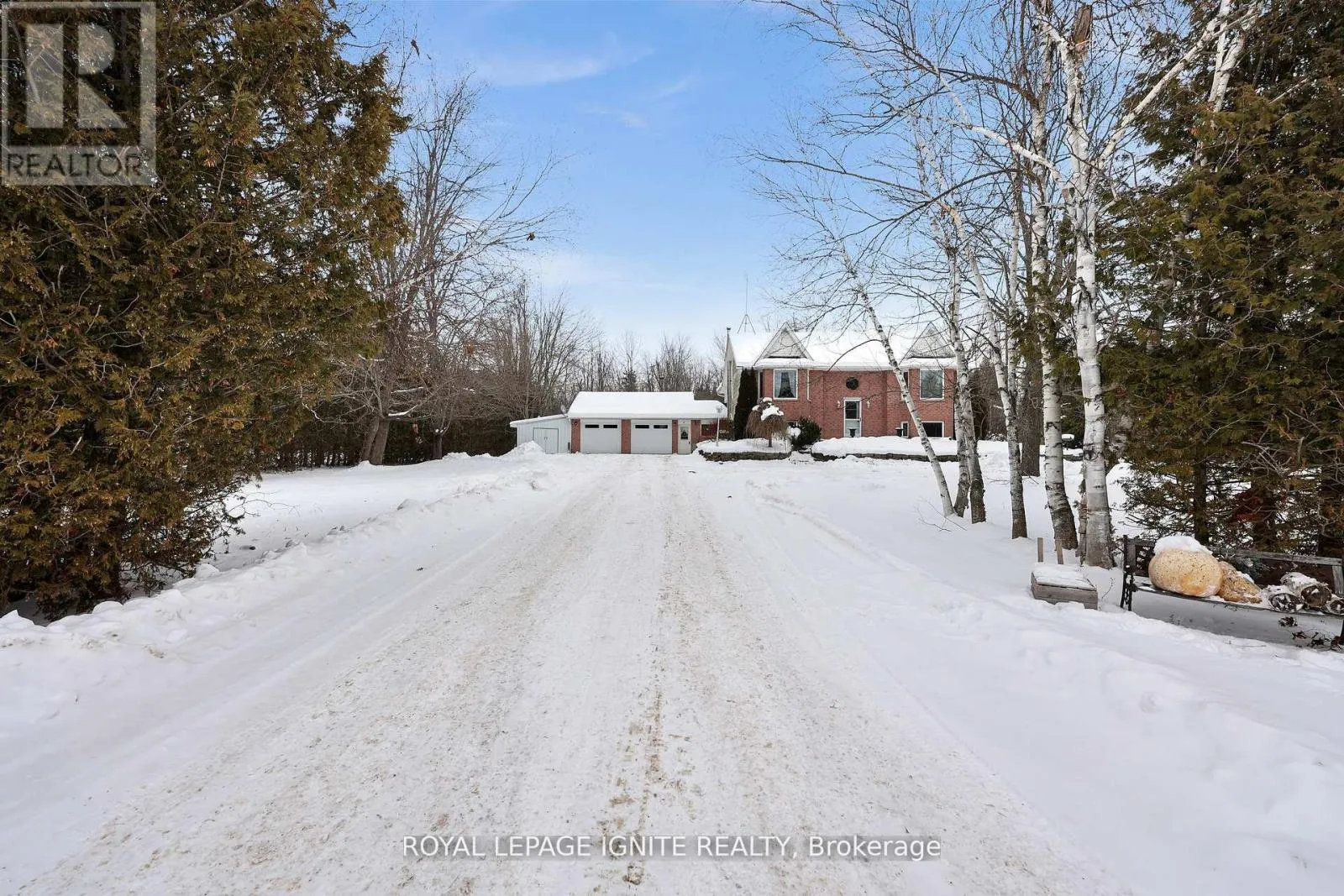 Highway 7 east to Cameron Line, North to Division Rd Stunning custom-built home situated on a spectacular private treed lot in a prime location. A bright open-concept oak kitchen with eating area, flows into the living room-ideal for botheveryday living and entertaining. Walk-out from the dining area to the rear deck, with an additional walk-out from the primary bedroom. The main level features two spacious bedrooms and a full bath, highlighted by hardwood flooring throughout. A wide staircase leads to the lower level, presenting a large recreation room, three additional bedrooms, and a 3-piece bath, all complemented by warm pine flooring. Additional features include central vacuum, a new pellet stove, an attached oversized double garage with direct access to the mudroom, and a deep private driveway. An impressive 864 sq. ft. detached storage building provides ample space for storage, hobbies, or workshop use. A rare opportunity to enjoy privacy, functionality, and quality in a beautifully maintained home. This property is ideal for a growing family or as a vacation home with rental potential. (id:27476)