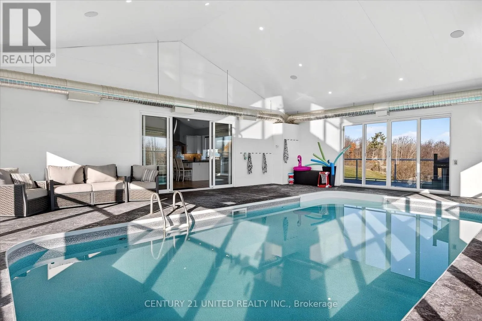 10th Line Asphodel & Highway 7 Set on 23 breathtaking acres, this exceptional custom-built bungalow blends luxury, craftsmanship, and lifestyle in one remarkable property. Offering 5 bedrooms and 4 bathrooms, featuring soaring 16-foot vaulted ceilings and a bright, open-concept layout designed for both comfort and entertaining. The chef-inspired kitchen is beautifully appointed with custom cabinetry, a THOR gas stove, and a striking marble backsplash. The main floor primary suite is a private retreat, with custom closets and a spa-like ensuite featuring a steam shower. A standout feature of the home is the incredible indoor saltwater pool, separated by glass sliding doors-creating a resort-style experience you can enjoy year-round. The lower level boasts a concrete insulated floor system, while the ICF foundation and durable steel roof ensure long-term efficiency and peace of mind. A whole-home Generac generator adds another level of reliability. Step outside to the expansive 12' x 40' Trex deck with panoramic views, perfect for relaxing or entertaining, and unwind in the Marquis hot tub with automated Covana cover, while surrounded by nature. Car enthusiasts and hobbyists will appreciate the attached heated 2-bay garage and the impressive detached 40x60' 3-bay garage, featuring 12' ceilings, a bathroom, built-in air compressors, plumbed pressure washer, in-floor drains, insulated floors, hoist compatibility, and hydronic in-floor heating. Above the detached garage is a beautifully finished 2-bedroom, 1-bathroom apartment-ideal for extended family or income potential. Additional features-surround sound throughout, RV parking with a 50-amp hookup, R60 insulation and unmatched privacy. A rare chance to own a truly one-of-a-kind rural estate. (id:27476)
