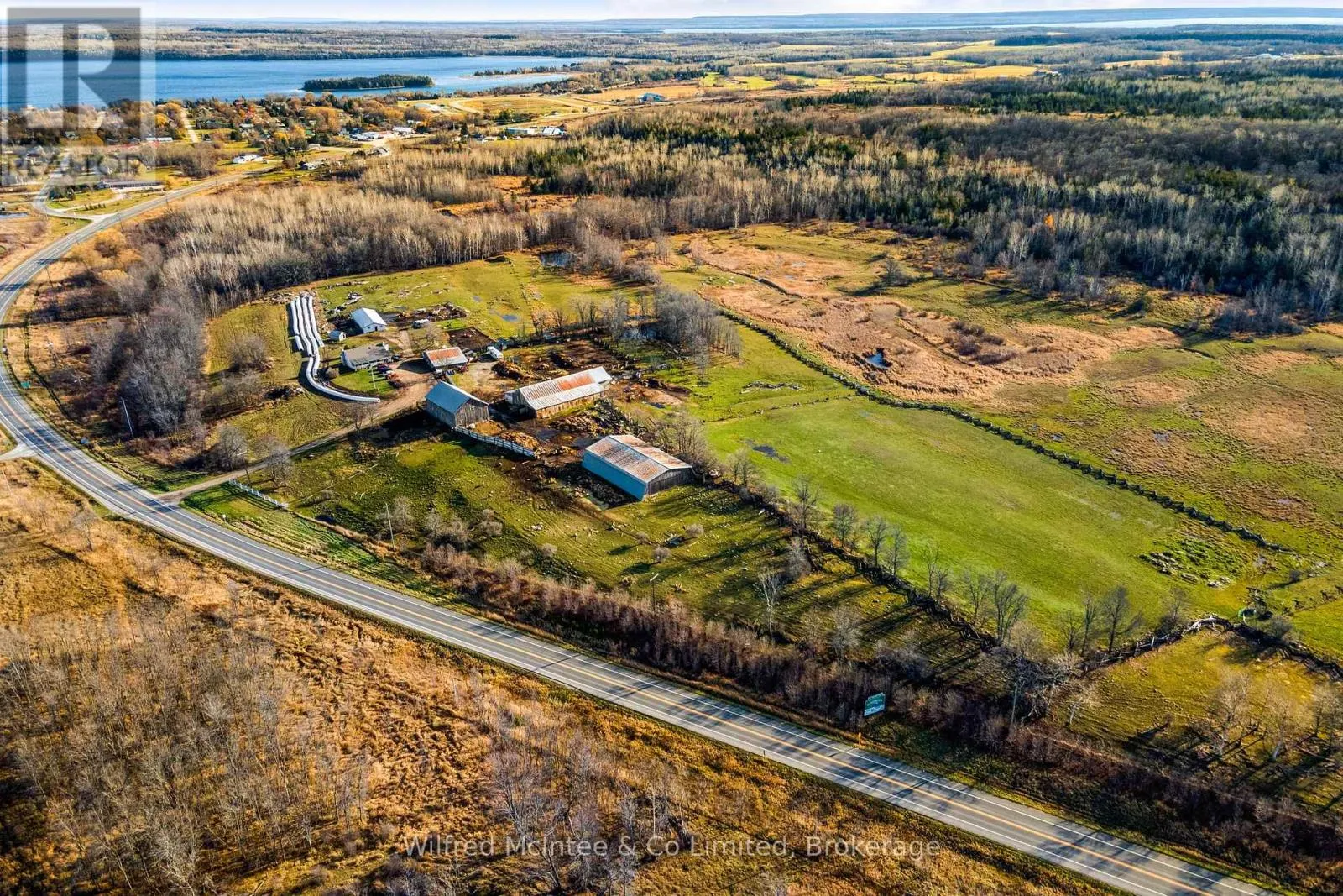 Cross Streets: Sucker Lake Rd/McCauleys Rd along Hwy 6 to Queen St. ** Directions: 15339 ON-6 (Hwy 6), Town of Manitowaning, Manitoulin Island, Ontario, Canada, P0P 1N0: Property is 1 km NW of town with frontage on both sides of Hwy 6. Rare opportunity to own 340 acres of versatile farm land on Manitoulin Island! Located minutes outside of the town of Manitowaning, on the shores of Manitoulin Island with 165ft of direct water frontage on the bay. This unique package consists of three parcels of land, of which 100 acres are workable with loam soil, 80+ acres of pasture and the remainder is bush. Of the bushlands there is approximately 40 acres of Maple bush. Land is owned directly along both sides of Hwy 6, giving easy equipment access to all corners of the farm. The 2000sq.ft ranch style home offers a large covered front porch, 5 good sized bedrooms, and the space to raise a growing family while enjoying the scenery and lifestyle. Brand new electric furnace, WETT inspection on woodstove, and new breaker panel. The farm yard consists of three large barns for housing livestock, plus several dedicated outbuildings for equipment, workshop space, hay, and feed storage. With plenty of room to expand. All inclusions of equipment are negotiable. Desirable long term stable income is generated by a cell tower land lease of $7200 annually. This functional farm package checks all the boxes with a large home; proven income avenues; easy access to town amenities and schools; great mix of cropland, pasture, and bush; plenty of wildlife activity; and cottage worthy panoramic views. (id:27476)