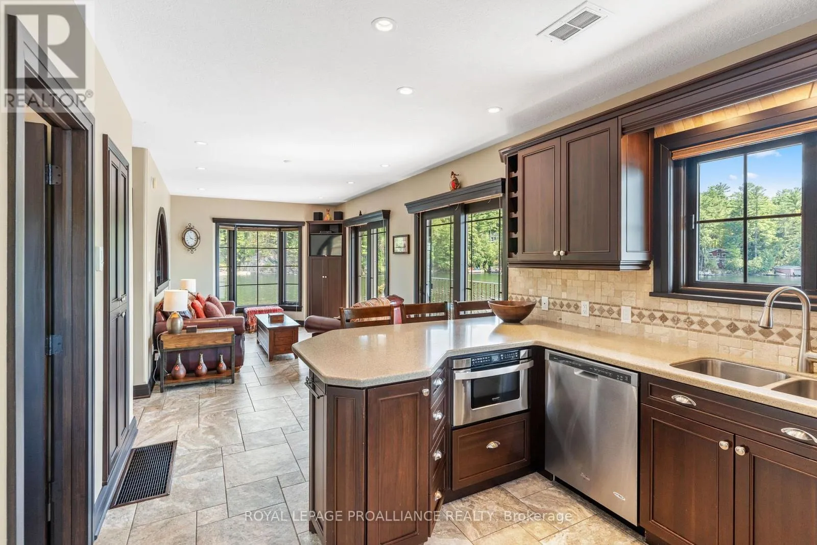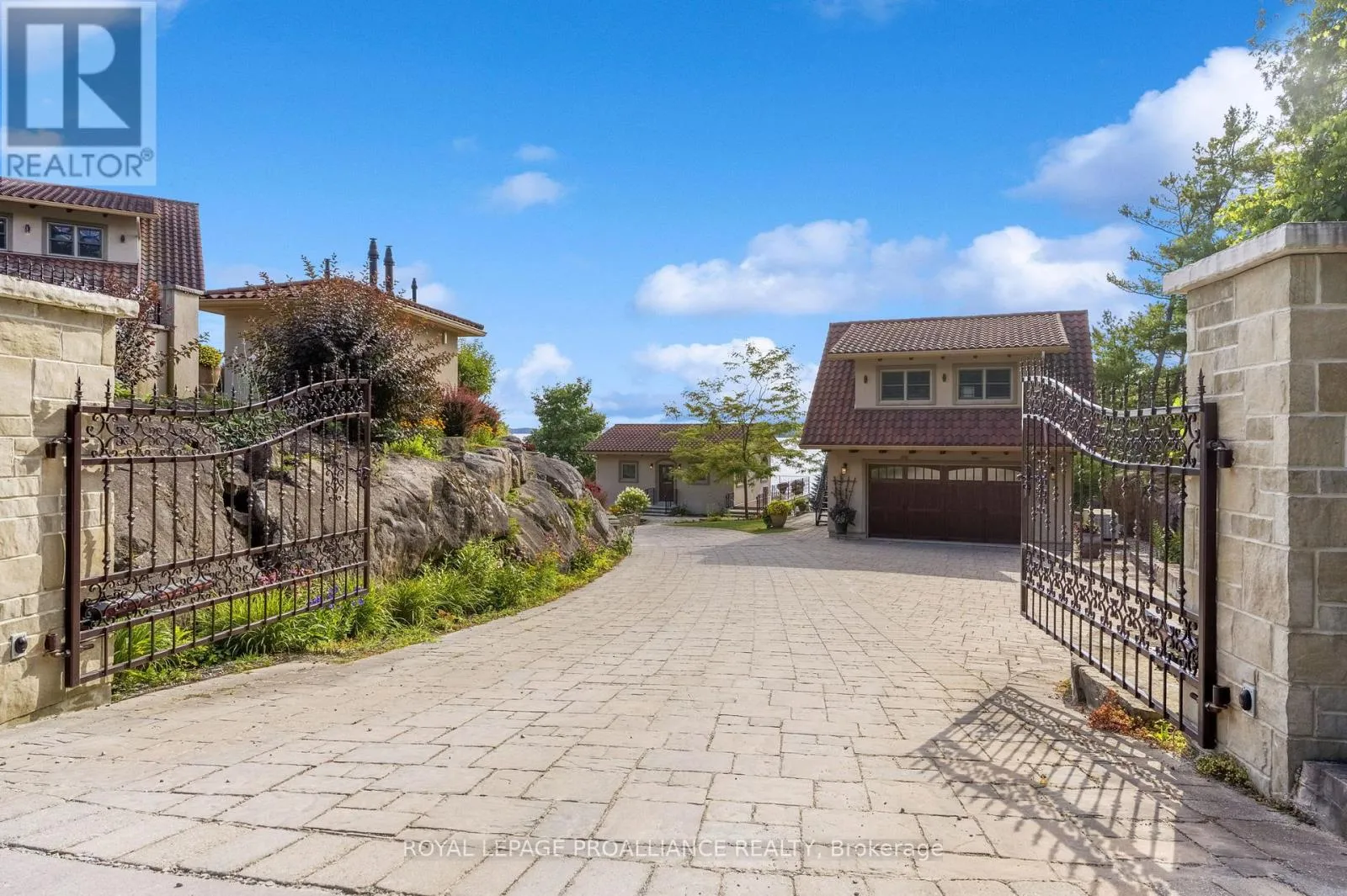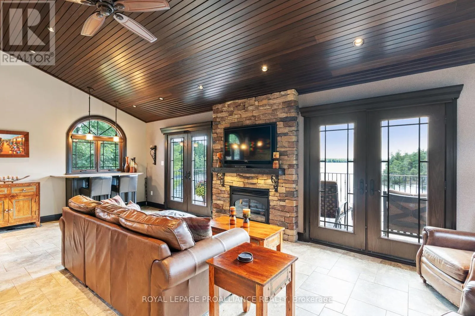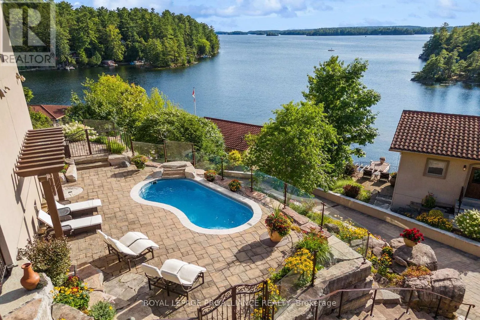 Cross Streets: Beales Mills/Spence Lane. ** Directions: From Brockville - County Road 29 north, turn left onto County Road 42, turn left onto County Road 40, left onto Beales Mills Road, turn right onto Spence Lance. Click the "Link" tab to view the iGuide and lifestyle film. A distinguished sanctuary on celebrated Charleston Lake, Bella Vista - Italian for "beautiful view" - embodies the spirit of this remarkable four-season waterfront estate. Spanning 5.5 acres on the lake's pristine shoreline, the custom residence draws inspiration from the owners' admiration for South American design. With more than 100 islands and 162 kilometers of coastline, Charleston Lake is renowned for its clarity, exceptional angling, and dramatic natural beauty. Positioned northeast of Gananoque with convenient access to major centres - near two international U.S. crossings, 1 hour from Ottawa, 2.5 hours from Montreal, just over 3.5 hours from Toronto, and approximately 6.5 hours from New York City - the setting is perfectly suited to a private family haven or executive getaway. The estate unfolds as a curated collection of living spaces: a principal home overlooking the water, boathouse with guest accommodations, seasonal cottage, separate villa, triple garage with full bar, secondary garage housing a gym and games lounge, two bunkies, and an elevated entertainment pavilion. Exterior amenities include a heated drive, outdoor chef's kitchen, multiple gathering terraces, warmed pool, twin spas, cascading waterfall, fireplace, firepit, hammocks, and sculpted landscaping. The boathouse supports lakeside entertaining with docking, storage, and electric lift capability. Winter brings cross-country skiing, snowshoeing, skating, and direct access to OFSC snowmobile trails. Whether welcoming guests, enjoying quiet time with family, or hosting associates, Bella Vista represents an uncommon opportunity to own a resort-inspired retreat on one of Ontario's most coveted lakes - where the experience is as memorable as the panorama. Copy and paste link for iGuide tour: https://unbranded.youriguide.com/21nli_270_spence_ln_athens_on/ (id:27476)