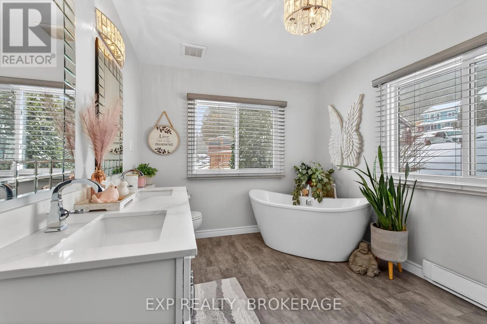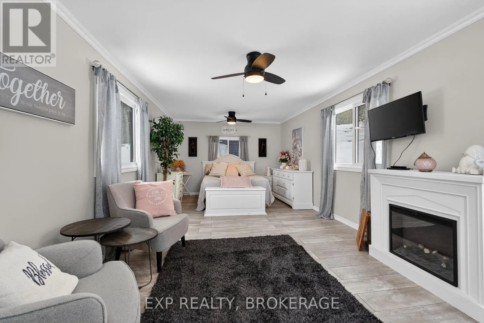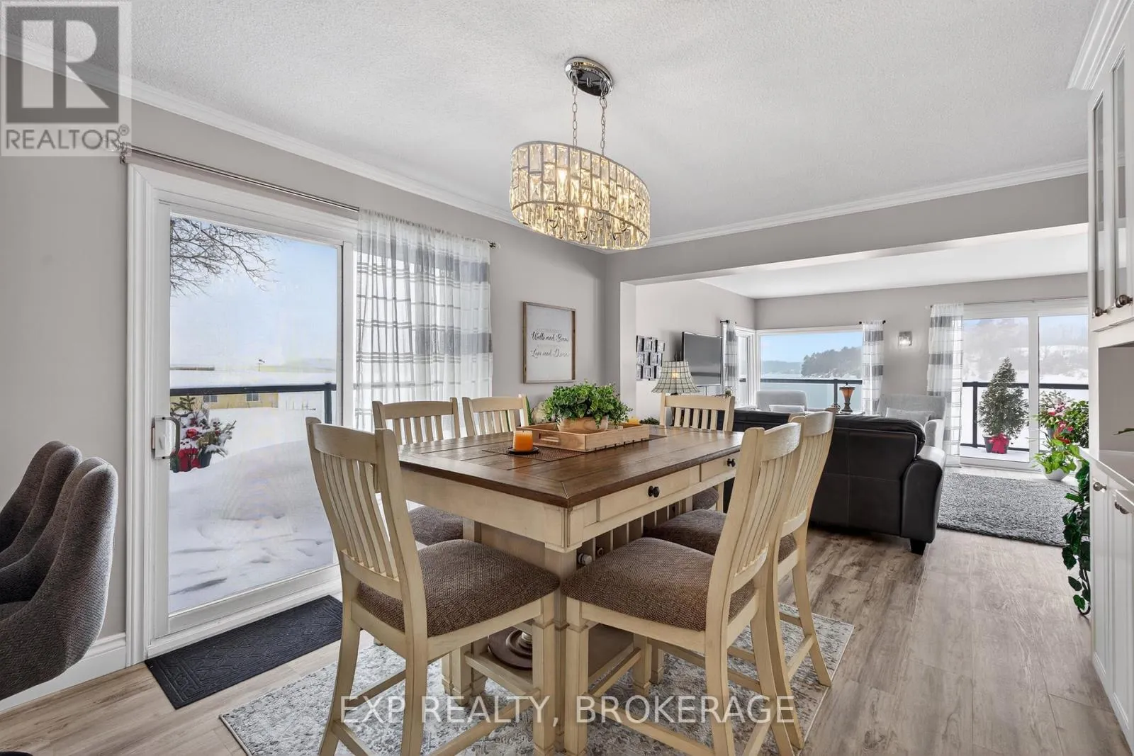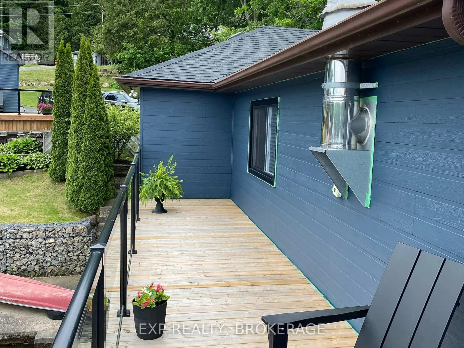 Cross Streets: From the main dock at Charleston Lake Village, head south on Cedar Park Lane. ** Directions: From the main dock at Charleston Lake Village,head south on Cedar Park Lane. Enjoy spectacular sunsets from your wraparound deck or living room overlooking beautiful Charleston Lake. This four-season waterfront home offers 3 bedrooms, 1.5 baths, and a spacious finished walk-out basement, providing ample room for family and guests. A separate 1-bedroom bunkie (264.71 sq/ft) adds extra accommodation, perfect for hosting while everyone enjoys the sandy frontage and beach. The attached boathouse and newer concrete dock create an ideal waterfront setup with direct access to Charleston Lake's more than 100 miles of shoreline-perfect for boating, swimming, amazing fishing, and endless summer fun. Upgrades include almost all new windows and doors, a deck and railing (2023), flooring (2025), a roof (2025), bathrooms (2024), a septic system (2015), an updated water system, a basement (2025), and a fully redesigned kitchen. This is a move-in-ready waterfront property offering comfort, charm, and unforgettable lake living on one of EasternOntario's most desirable lakes. Schedule your private viewing today. (id:27476)