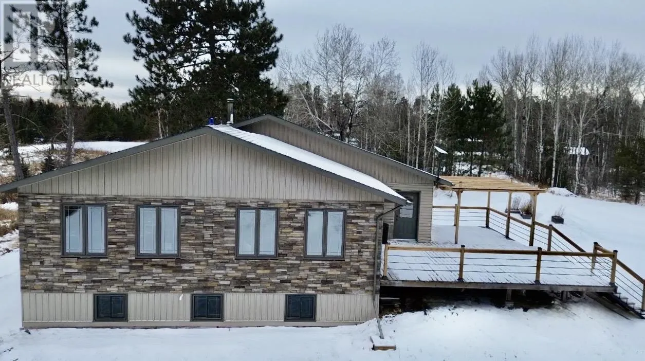 HIGHWAY 11, 8 MILES FROM ATIKOKAN, NEAR FIRE LAKE RD. Wake up to fresh air, quiet mornings, and the feeling of having space to breathe, all just 1 km from Nym Lake and only 10 minutes east of Atikokan. Set on just over 2 acres in unorganized territory, this 2014 raised bungalow offers the perfect balance of modern comfort and peaceful country living. Living in unorganized territory means lower property taxes, fewer restrictions, and more freedom to enjoy your land, whether thatâs additional storage, outdoor projects, or future outbuildings. Inside, the bright open concept main level offers 1,248 square feet of comfortable living space, with the kitchen, dining, and living areas flowing together and filled with natural light. The main floor features one primary bedroom, a full bathroom, and a smaller second room ideal for a home office, nursery, or flex space. The partially finished basement adds excellent extra living space with two additional bedrooms, a rec or family room, a half bath, laundry and utility room, and storage. A dedicated wood room with a wood chute makes heating with the wood stove convenient and efficient, adding cozy warmth during the winter season. Outside, enjoy the 640 square foot deck with built in pergola and wide 10 foot staircase, perfect for relaxing or entertaining. The seasonal bunky is a fantastic bonus with a loft and a main living area with a bar and stools, ideal for guests and weekend gatherings. An excellent opportunity to own a well maintained rural property offering privacy, flexibility, and convenient access to Atikokan and surrounding lakes. A home where you can host family, welcome friends, and enjoy the simple luxury of space, quiet, and freedom. (id:27476)