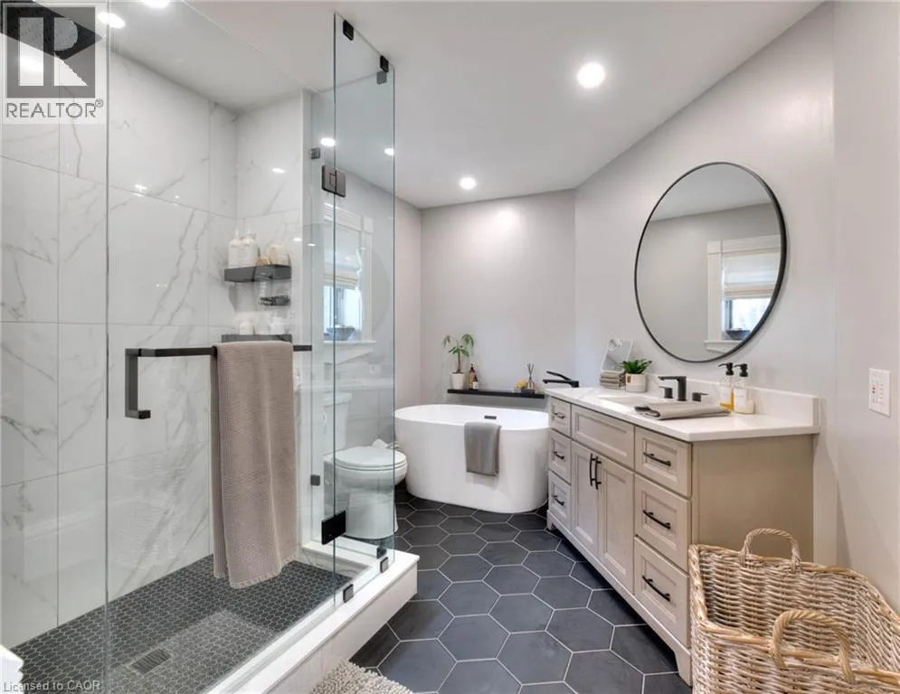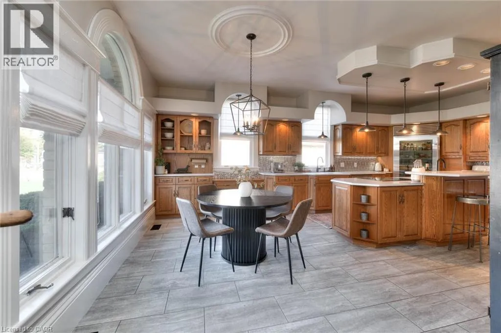 Located on Hwy 23 between west Monkton and Listowel On a secluded .59 acers, this home holds a timeless allure without compromising modern luxuries. The yard is professionally landscaped with a stone patio, gas fire feature, and surrounded by newer fencing. Positioned in the heart of Atwood, 10 minutes to Listowel, one hour to Godrich beach, and 45 minutes to K-W. From the 600 Sq ft heated garage with epoxy floors you will enter the homes large mudroom/foyer. The 3500 sq ft upper levels pay homage to the architectural details found in Victorian-style homes of this caliber. From the modern farmhouse lighting, and colour selection to the crown moldings, arched windows, and doorways, every detail has been thoughtfully designed. The eat-in kitchen is timeless with oak cabinets, stainless steel appliances, and a large island. The pantry offers room for a freezer and bar fridge. From the front of the house, you can access the front living room and the office. This layout expands the main floor to include a laundry room and the family room with a gas fireplace, and a 3-piece bath. Upstairs includes 4 bedrooms and 2 baths. The primary suite is spectacular with a walkout to a private balcony, dual walk-through closets, and an ensuite featuring a standalone tub and a glass shower. The lower-level features a rec room with a hardwood staircase off the family room and 2 more storage rooms. The roofs are all less than 15 years old, furnace and AC 2015, bathrooms and addition in 2020, new gas generator for the whole house 2025 and the list just keeps going. The Atwood Lions Park offers a pool, tennis, baseball diamond, new playground, and an outdoor rinkâalong with beloved local traditions like the Canada Day celebration and annual Santa Claus parade. The scenic Rail Trail invites year-round biking, hiking, snowmobiling, and ATV adventures. This private escape lets you live in a dreamy small town only a minute away from the fire department and coffee shop, yet on a property that allows for peace and tranquility all year round. (id:27476)