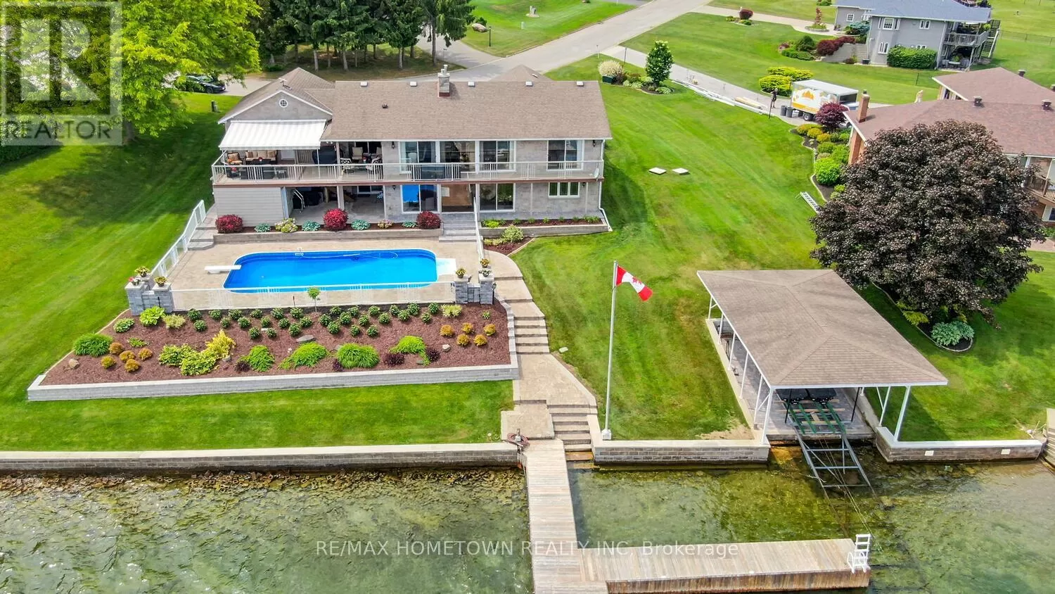 Cross Streets: Cty Road 2 and Burnside Drive. ** Directions: Take Exit 705 off of 401 and head south on Cty Rd 15/Chruch St,go till you come to Hwy 2, turn right at the stop sign.Go past the Old Grenville College and Lion's Gate and on the left hand side is Burnside Drive. go down to the end and house is #1111. Perched on the banks of the St. Lawrence River, this impeccably maintained all-brick/stone bungalow awaits you. Step inside this deceptively modest façade and discover a 3,100 sq ft, 3 + 1-bedroom, 3-bath retreat on the banks of the St. Lawrence River complete with a double-car garage, in-ground pool, and full walk-out lower level that's primed for an in-law suite or multifamily setup. Key Features: Waterfront Wow-Factor Instant river views greet you the moment you cross the threshold. Expansive, low-maintenance decks (one covered with an adjustable awning) overlook the pool and riverfront. Private dock, perfect for your boat or evening sunset sessions. Main Level Living Open living/dining layout divided by a gas fireplace, both rooms opening onto the deck; chef's kitchen with abundant cabinetry, generous counter space, and patio access - Primary suite with built-in closets, private deck access, and 3-piece ensuite - Two additional bedrooms and a 4-piece bath round out this level. Lower-Level Versatility Fourth bedroom and 3-piece bath - ideal guest or nanny quarters. Media room and exercise room, each with built-in storage. Cozy family room centered around a gas fireplace - home office life has never been so distracting! Laundry room plus a dedicated hot-tub room for year-round relaxation - Outdoor & Lot Highlights - Professionally interlocked driveway and newly planted gardens showcase true pride of ownership. - The inground pool is ready for summer afternoons, with steps leading directly to your dock. A full walk-out basement offers easy subdivision or suite conversion with a separate entrance. Everything you've been looking for-space, light, luxury, and waterfront lifestyle is here. Come see how deceiving exteriors can set the stage for something truly extraordinary. (id:27476)