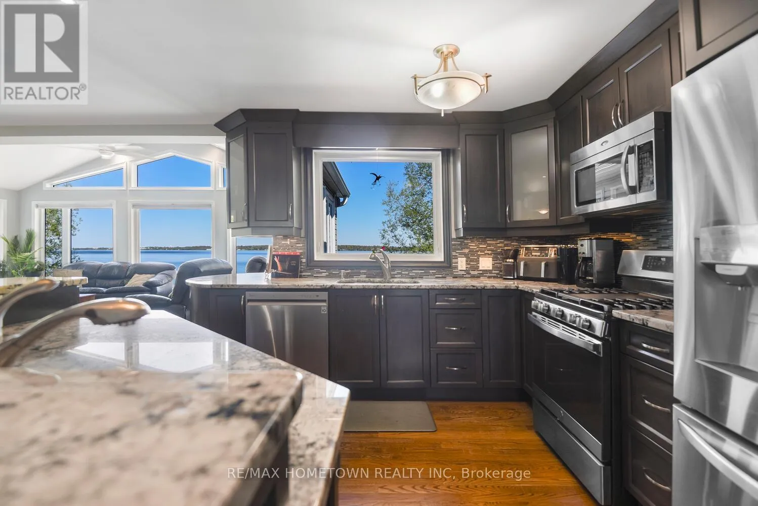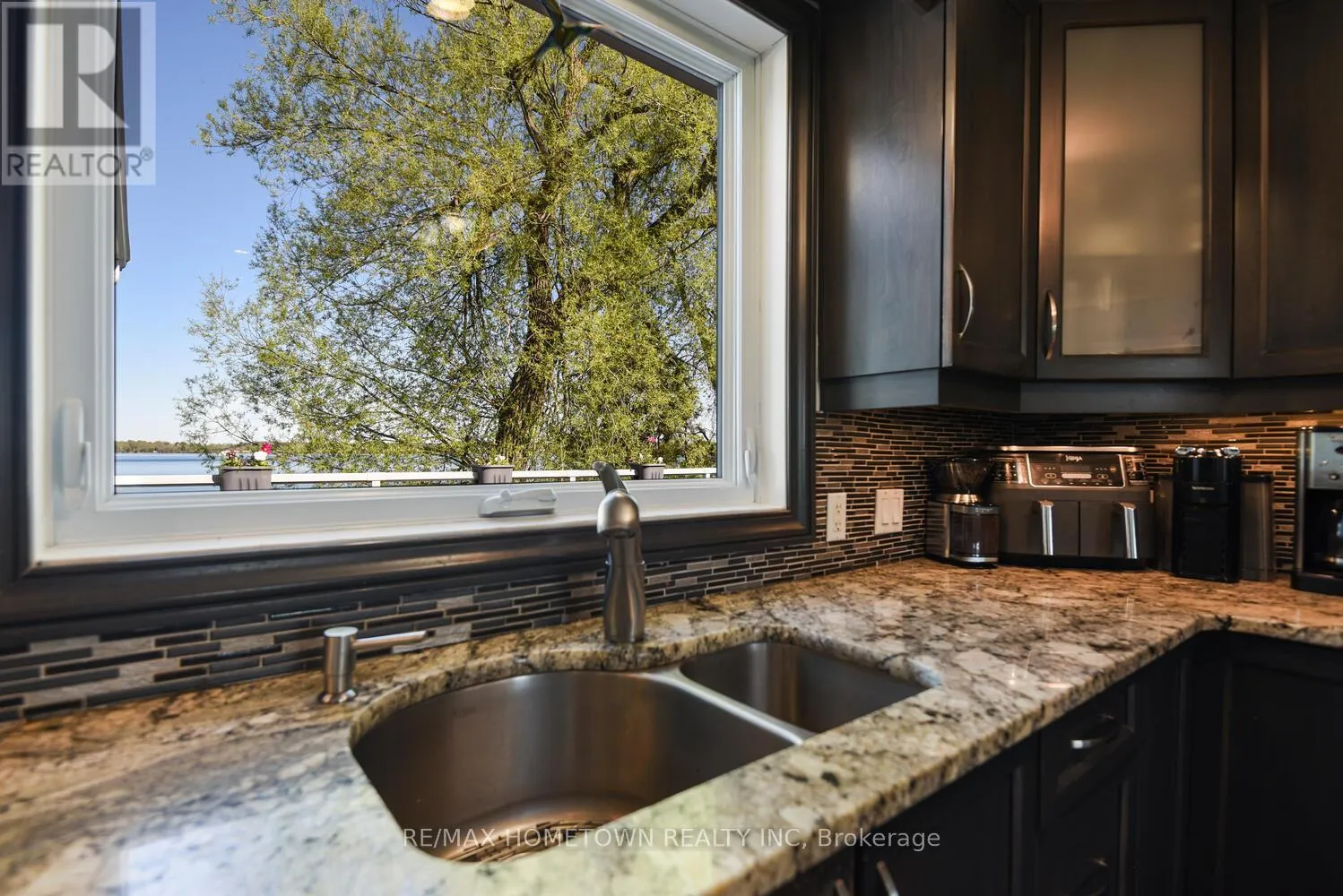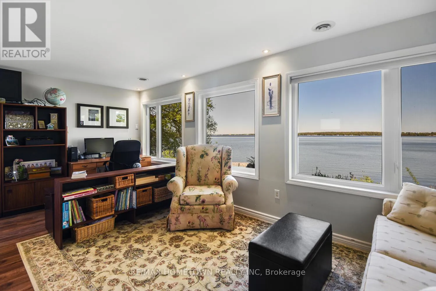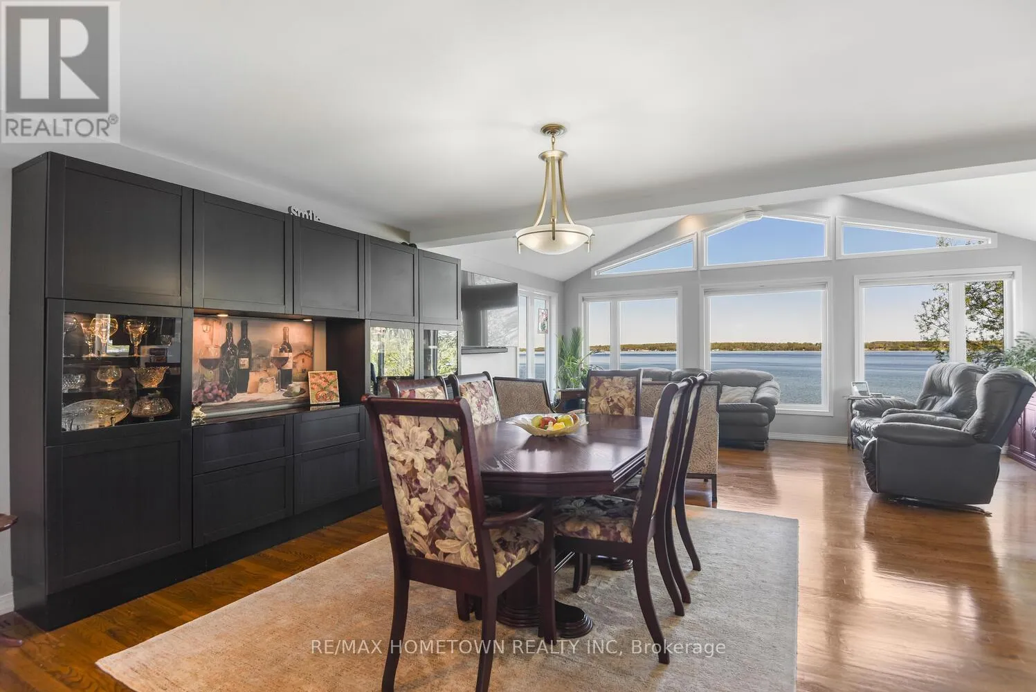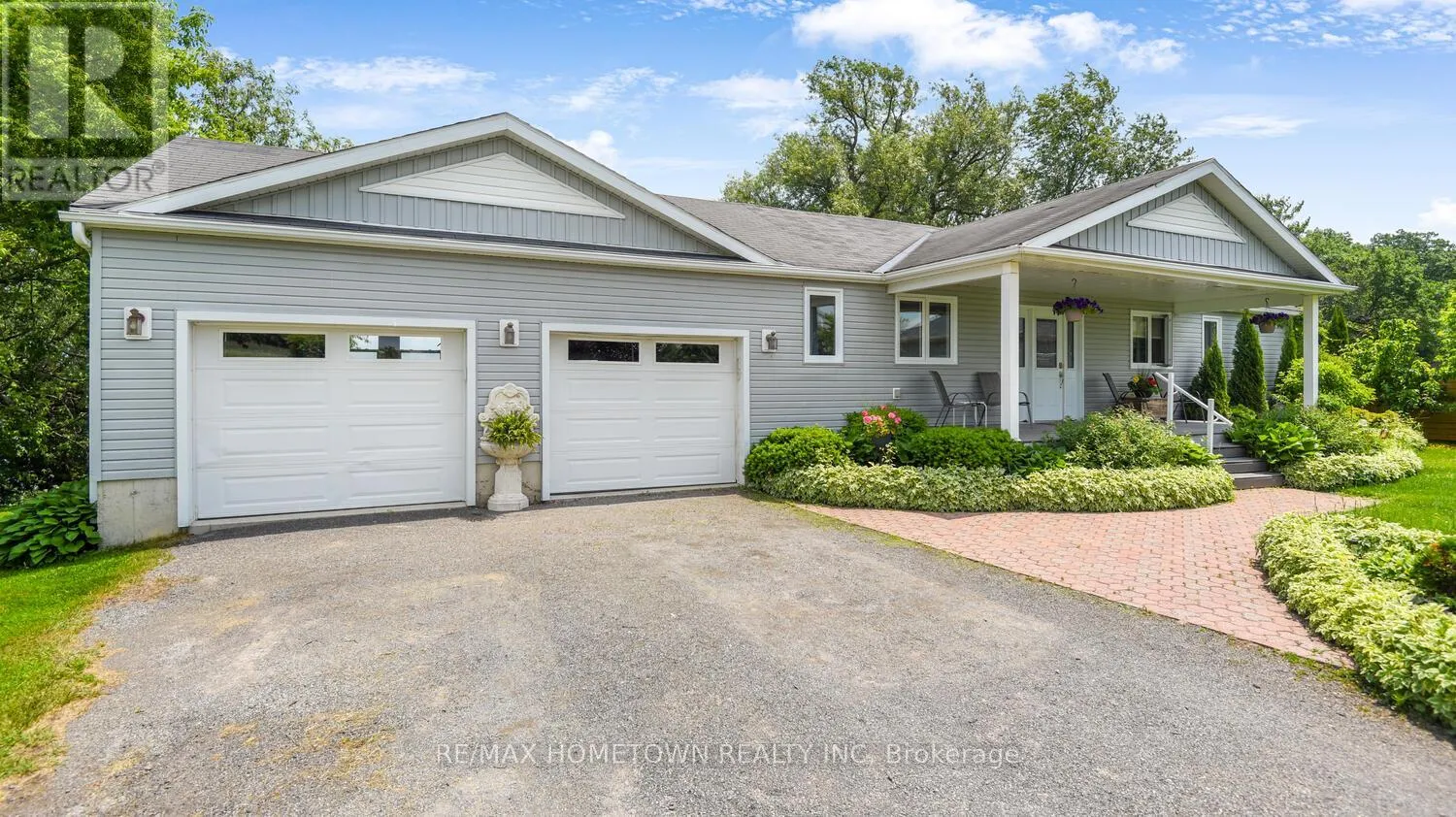 Cross Streets: Country Road 2. ** Directions: Exit 716 off the 401, head south down Edward St. to County Road 2, head west, and once you pass Blue Church Road, you will find the property on the left-hand side, #1435 . Welcome to 1435 County Road 2, a rare find on the beautiful St. Lawrence River! If you're looking for peaceful waterfront living, step inside and be instantly greeted with a full view of the river through a wall of large windows. Open-concept living and dining areas. The built-in wall unit includes a buffet, china cabinets, lighting, and lots of storage. Custom walnut kitchen with a generous island, including a prep sink and seating, designed for creating great meals and gathering with friends. Just off the kitchen is a 3-piece bath with a walk-in shower and a separate laundry room with a built-in ironing board. 2-car oversized garage with workshop area.The primary bedroom offers built-in drawers and cupboards and a spacious walk-in closet. Access the large deck from the living room or bedroom. Enjoy quiet mornings with coffee and an expansive river view, and watch the ships go by. Soak in the river views sitting on the deck, with a railing of glass panels and a dining area with built-in seating and storage cupboards, ideal for year-round BBQs. The lower level offers the same large windows as the main-level living room and includes two additional bedrooms, a 4-piece bath with a large soaker tub, a large walk-through storage room, and a big flexible room that can be used as a family room or office.The view may be too distracting to get much work done! Walk out to a covered patio and follow the stairs to the river to a 100 ft wide lawn, a cabin for sleeping,storing kayaks,swimming and fishing supplies. Attached is another deck for dining or lounging. Beyond the cabin is a beach area. Wildlife abounds; every day when you see the resident bald eagle sitting on its perch in the trees, ready to dive for a fish. Sometimes you'll be greeted by a heron standing on the seawall or at the beach. Watch ships and sailboats float by on the mighty St. Lawrence. Surrounding the home are vibrant, low-maintenance perennial gardens and fruit trees (apple, pear, plum,cherry, saskatoon). (id:27476)