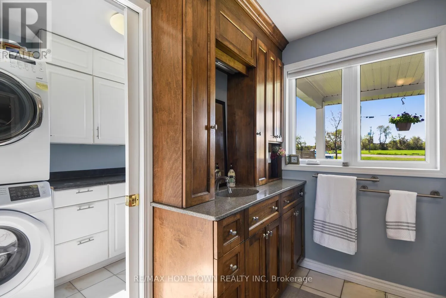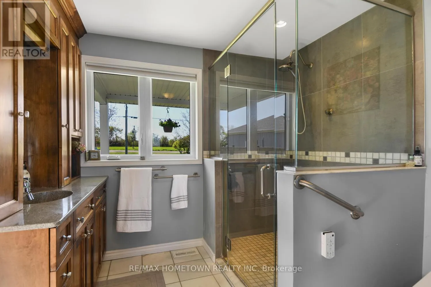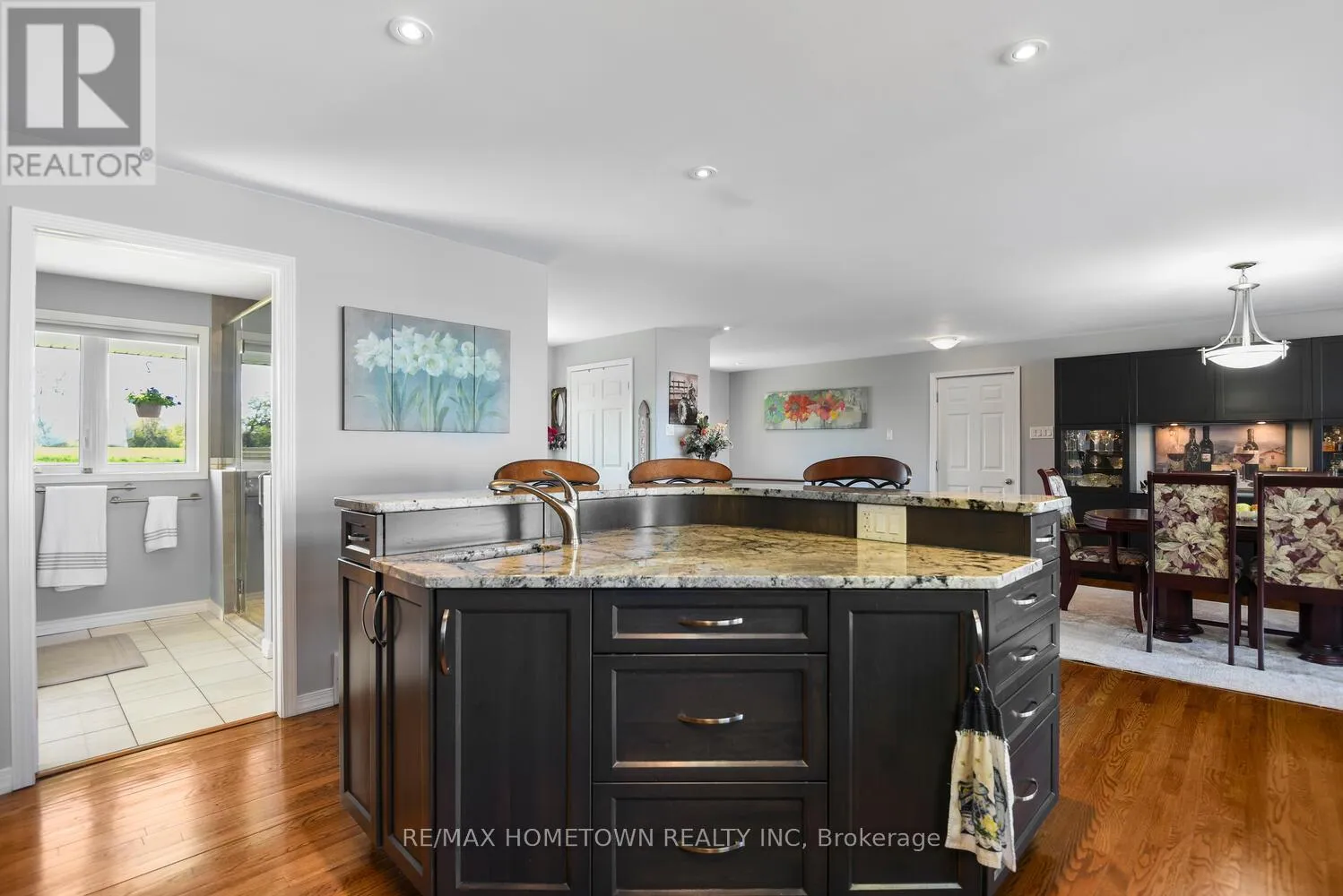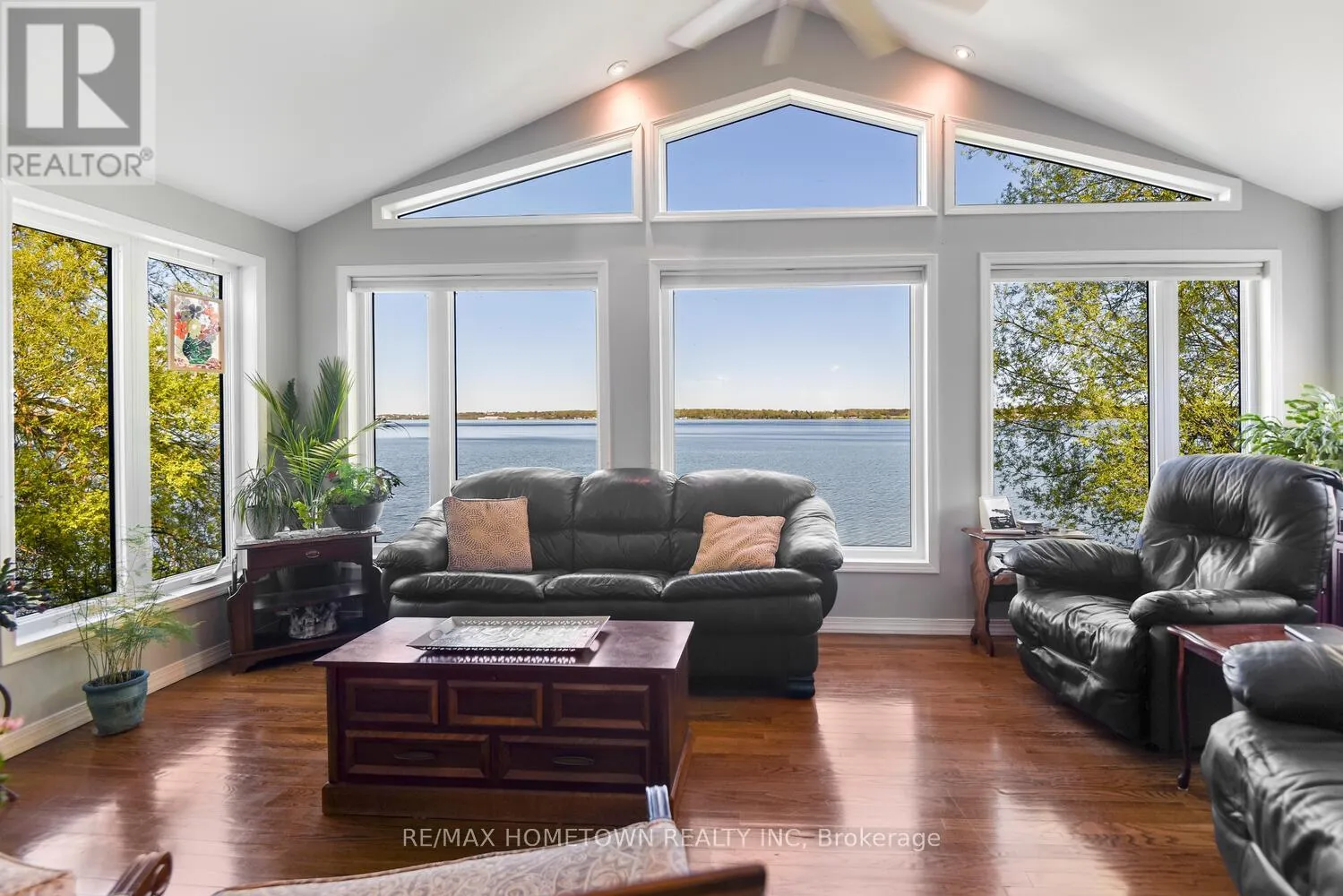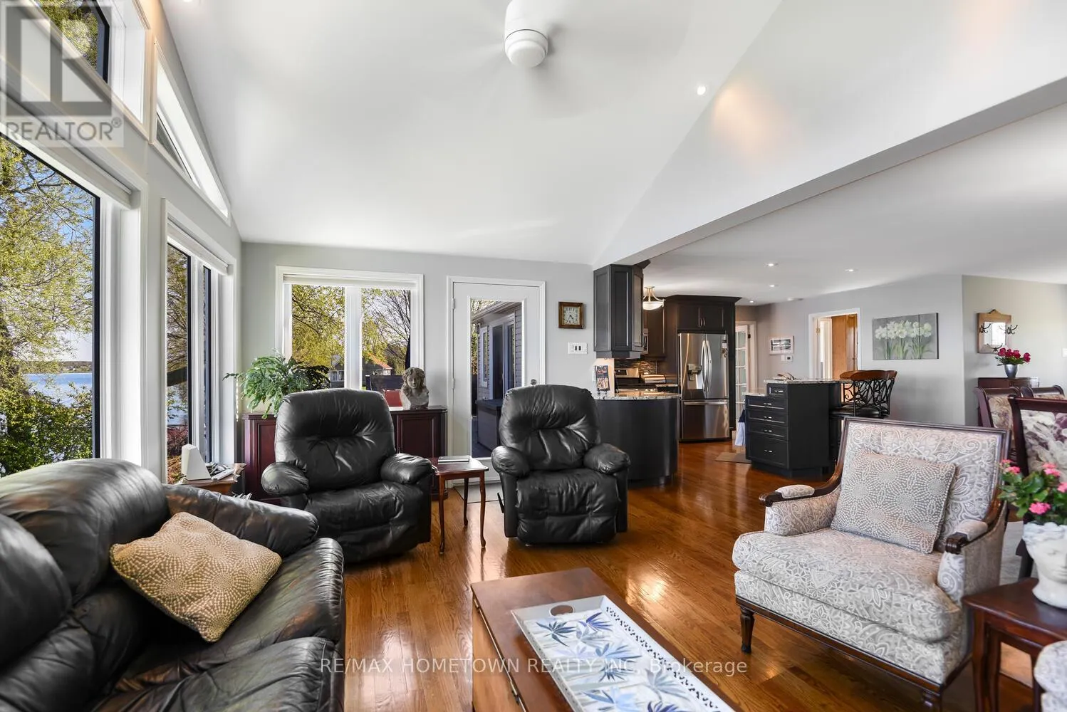 Cross Streets: Country Road 2. ** Directions: Exit 716 off the 401, head south down Edward St. to County Road 2, head west, and once you pass Blue Church Road, you will find the property on the left-hand side, #1435 . Welcome to 1435 County Road 2, a rare find on the beautiful St. Lawrence River! If you're looking for peaceful waterfront living, step inside and be instantly greeted with a full view of the river through a wall of large windows. Open-concept living and dining areas. The built-in wall unit includes a buffet, china cabinets, lighting, and lots of storage. Custom walnut kitchen with a generous island, including a prep sink and seating, designed for creating great meals and gathering with friends. Just off the kitchen is a 3-piece bath with a walk-in shower and a separate laundry room with a built-in ironing board. 2-car oversized garage with workshop area.The primary bedroom offers built-in drawers and cupboards and a spacious walk-in closet. Access the large deck from the living room or bedroom. Enjoy quiet mornings with coffee and an expansive river view, and watch the ships go by. Soak in the river views sitting on the deck, with a railing of glass panels and a dining area with built-in seating and storage cupboards, ideal for year-round BBQs. The lower level offers the same large windows as the main-level living room and includes two additional bedrooms, a 4-piece bath with a large soaker tub, a large walk-through storage room, and a big flexible room that can be used as a family room or office.The view may be too distracting to get much work done! Walk out to a covered patio and follow the stairs to the river to a 100 ft wide lawn, a cabin for sleeping,storing kayaks,swimming and fishing supplies. Attached is another deck for dining or lounging. Beyond the cabin is a beach area. Wildlife abounds; every day when you see the resident bald eagle sitting on its perch in the trees, ready to dive for a fish. Sometimes you'll be greeted by a heron standing on the seawall or at the beach. Watch ships and sailboats float by on the mighty St. Lawrence. Surrounding the home are vibrant, low-maintenance perennial gardens and fruit trees (apple, pear, plum,cherry, saskatoon). (id:27476)