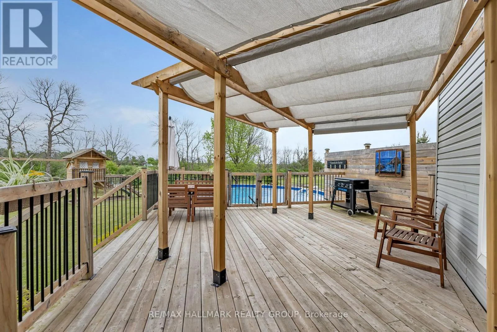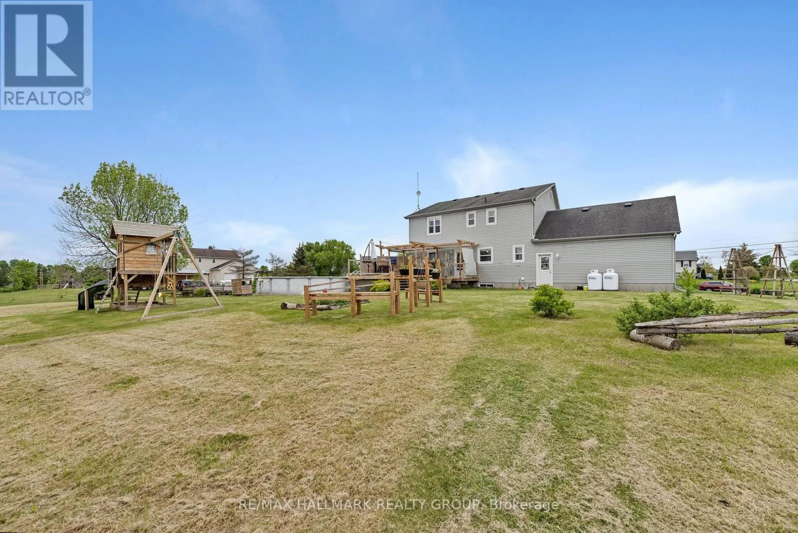Cross Streets: From 401 exit at Highway 15 head north towards Algonquin. Turn Right on Montana way and right on Cheyenne Trail. House is located on the East side of Cheyenne Trail. ** Directions: Montana Way and Cheyenne. Located just 10 minutes from Brockville in the highly desirable country subdivision of Algonquin, North Augusta, this beautifully 3BR/4BTH home offers over 2,000 sq. ft. of fully finished living space on a generous 211 ft x 224.93 ft lot with no rear neighbours ensuring exceptional privacy and a peaceful, scenic setting. The main floor showcases tastefully updated hardwood & ceramic tile flooring, creating a warm and elegant atmosphere throughout. The updated kitchen features granite countertops, a double Granite sink, a tile backsplash, a new stove, and a stylish centre island, flowing seamlessly into a cozy family room with a gas fireplace. A separate formal living room provides additional space to relax or entertain, while a renovated powder room and a convenient laundry area enhance everyday functionality. A dedicated dining room completes the layout, ideal for family meals or entertaining guests. Upstairs, the spacious primary suite includes a walk-in closet and a private ensuite with a newly tiled shower, underfloor heating, updated fixtures, and fresh décor. The renovated family bathroom also offers heated tile flooring and modern finishes. The fully finished, carpet-free basement provides a large recreation room, a newly built office or gym space, a functional 3-piece bathroom, and ample storage in the furnace room. Step outside to a generous deck and enjoy summer days in the 27' above-ground pool. The expansive yard is a true retreat, featuring a productive crabapple tree, two apple trees, raspberry canes, and established rhubarb plants. Garden enthusiasts will appreciate the fenced-in raised herb and vegetable beds, along with a bee-friendly wildflower garden. Families will love the charming children's playhouse with swings and a slide. Additional outdoor highlights include wooden staging for summer potted plants and hanging baskets, and a hardstanding parking area next to a large Amish shed. Located just 400 metres from Dixons General Store and Café! (id:27476)