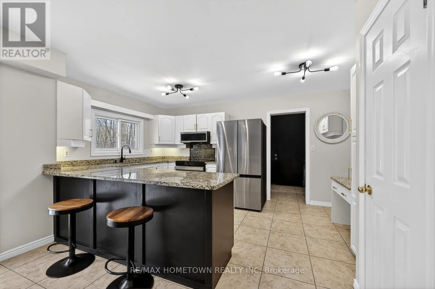Cross Streets: Algonquin Rd. ** Directions: North from Maitland on County rd 15 to Algonquin rd. North on DeJong rd. Enjoy peaceful country living on a private 1-acre lot with no rear neighbours. This well-maintained 3+1-bedroom, 2-storey home offers numerous recent updates, including a metal roof, new double garage doors, and new second-floor windows (all 2023), plus topped-up attic insulation in 2024. The spacious main floor features a bright living room, dining room, and office space-ideal for those working from home. The eat in kitchen with large peninsula is equipped with granite countertops and newer stainless steel appliances, while main-floor laundry provides convenient access to the large double garage. Upstairs, the primary bedroom includes a 3-piece ensuite and generous closet space. The fully renovated lower level family room (2023) boasts spray foam insulation, new subfloor, luxury vinyl tile flooring, and offers a large family room, den/craft room or 4th bedroom, utility area, and flex space currently used as a home gym. This home is efficiency heated by a geo-thermal heat pump. A perfect blend of comfort, functionality, and privacy in a serene rural setting. (id:27476)