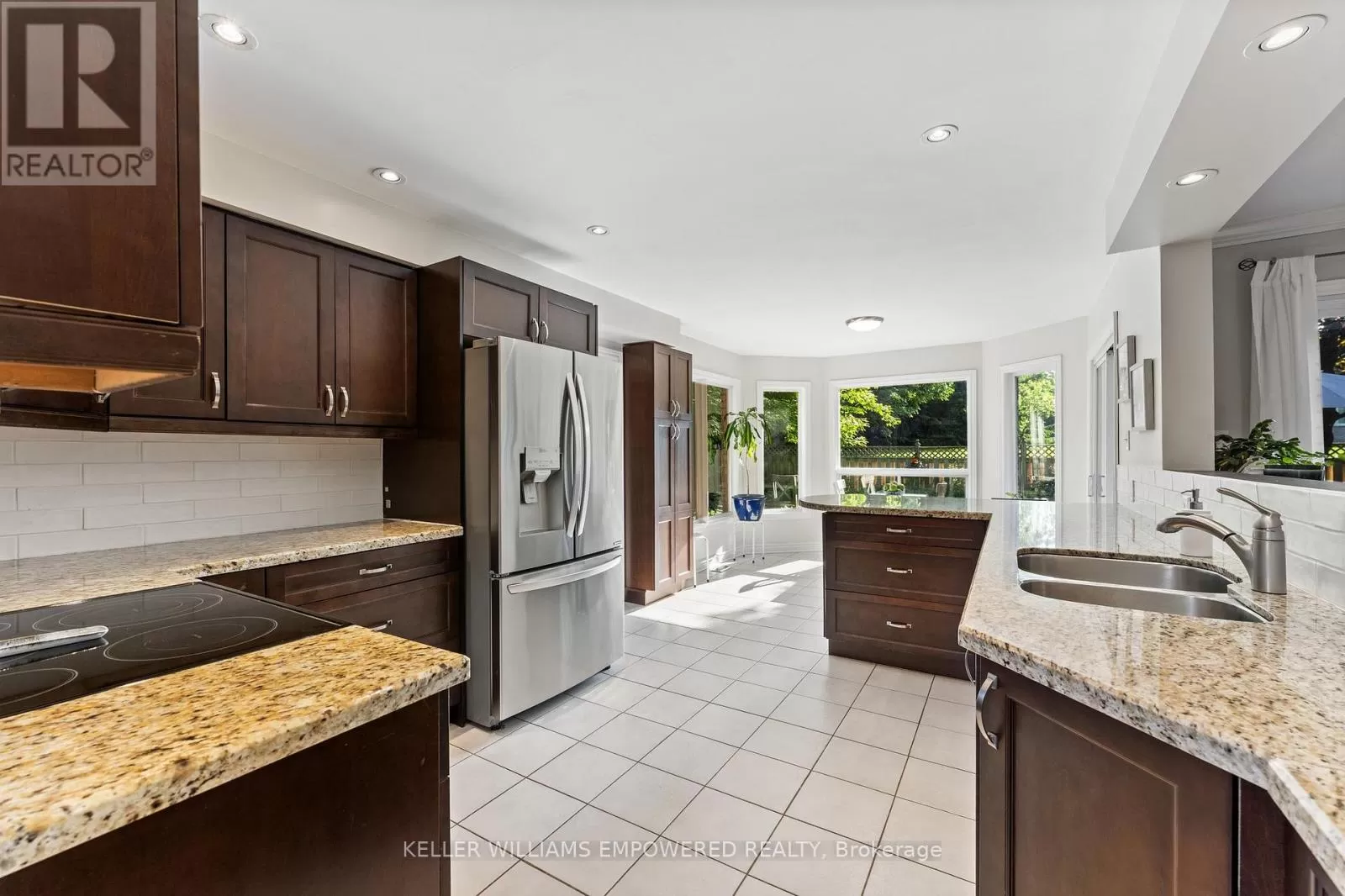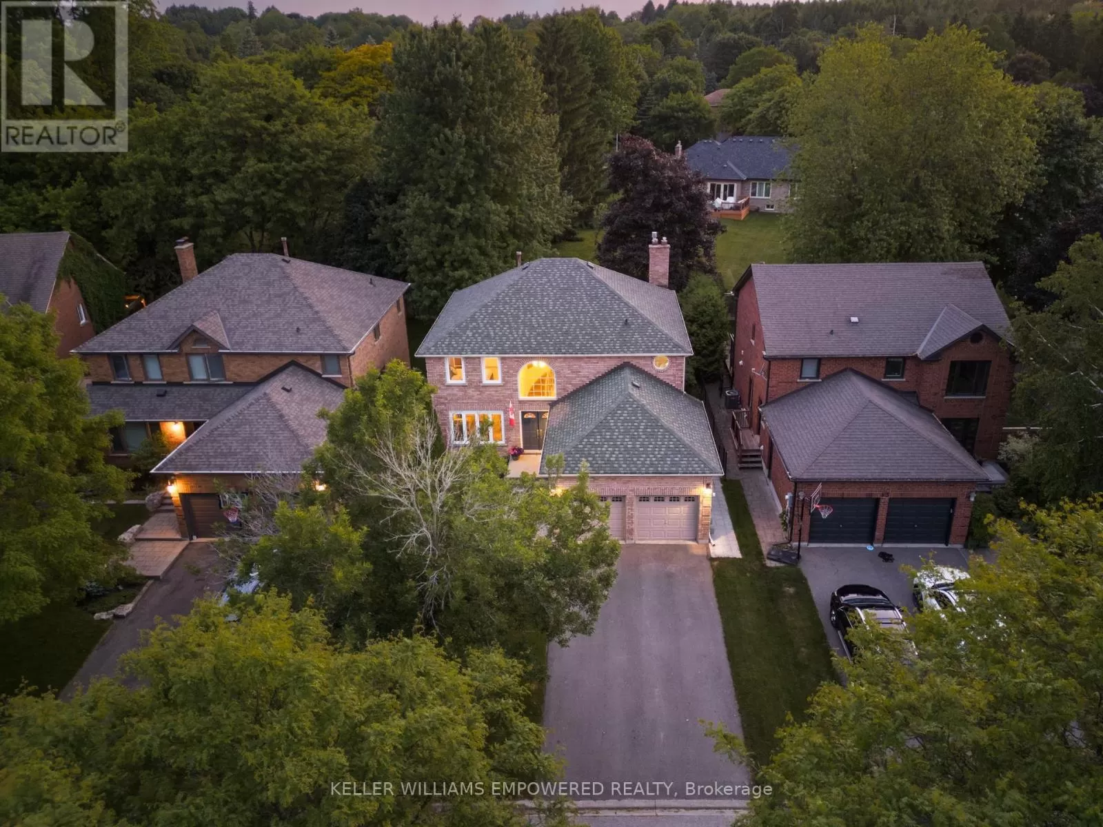 Cross Streets: Bathurst St. & Wellington St. W. ** Directions: North of Bathurst St. and Wellington St. W. Welcome to this gorgeous family home nestled in the desirable Aurora Heights community. Perfectly located within walking distance to the Aurora Community Centre and just minutes from top-rated schools, shopping, and entertainment. This warm and inviting home features hardwood flooring, pot lights, crown moulding, and an open-concept design ideal for both everyday living and entertaining. Large windows throughout offer beautiful views of the treed surroundings, filling the space with natural light. The spacious kitchen is perfect for hosting, with direct access to the rear deck and adjacent family room. The family room exudes charm with a cozy gas fireplace with a floor-to-ceiling brick surround. The convenient main floor laundry room includes a side entrance and plenty of storage space. Upstairs, the large primary bedroom offers hardwood flooring, a custom floor-to-ceiling closet organizer, and a private three-piece ensuite with oversized porcelain tile flooring, a vanity with a stone countertop and a glass-enclosed shower. The additional bedrooms are generously sized perfect for a growing family. The fully finished lower level is made for entertaining, featuring a spacious recreation room with another brick-surround fireplace, a dedicated home office and an exercise room complete with laminate flooring and built-in speakers. Step outside to a private backyard oasis framed by mature trees and lush landscaping. This fully fenced yard includes a multi-level deck ideal for summer barbecues, relaxing in the sun, or entertaining guests. Enjoy garden beds filled with vibrant annuals and perennials that enhance the natural beauty of this space. Conveniently located near prestigious schools including St. Andrews College and St. Annes School, this home truly offers the best of family living in Aurora. (id:27476)