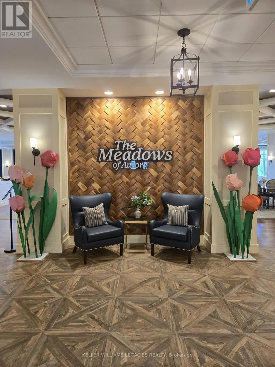 Cross Streets: Leslie St / William Graham Dr. ** Directions: Leslie St. between St. John's Rd & Wellington. Welcome to the Meadows of Aurora, Aurora's premier 55+ senior lifestyle community. Nestled on 25 acres of lush greenery, this state-of-the-art resort-style facility offers unparalleled amenities designed to enhance retirement living. Enjoy a vibrant social calendar with activities such as exercise classes, game days, movie screenings, and so much more. This spacious 1282 sq ft corner suite boasts 10' ceilings and a well-designed floor plan ideal for senior living. Features include a generous sized kitchen/dining with ample cupboard and countertop space, stainless steel appliances, very spacious primary bedroom with an accessible ensuite bathroom and walk-in closet, a spacious second bedroom with large window and double closet, and a walkout to a 338 sq ft wrap-around balcony. Included are an underground parking spot and locker. Monthly maintenance fees include property taxes, water, heat, A/C, $110 Communication Package (telephone, TV, internet), and $75 Amenity Fee. EXTRAS: Enjoy a variety of amenities including an Activity Room, Party Room, Family Lounge, Games Room, Meadows Cafe, Arts and Crafts Room, Pickle Ball Court, Library, Outdoor Patio Lounge with BBQ, Fireside Lounge, Hair Salon, Fitness Center, and Car Wash. (id:27476)