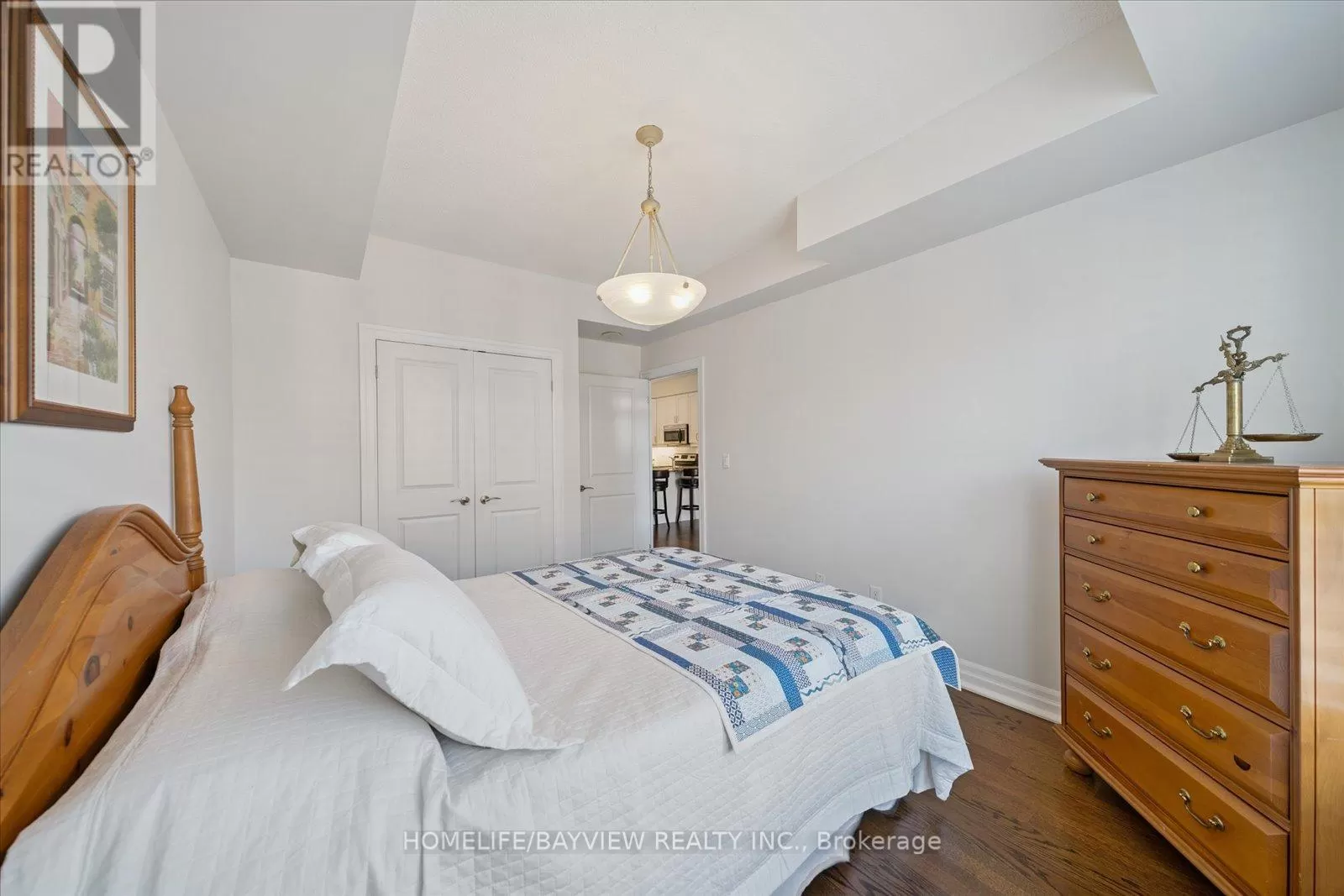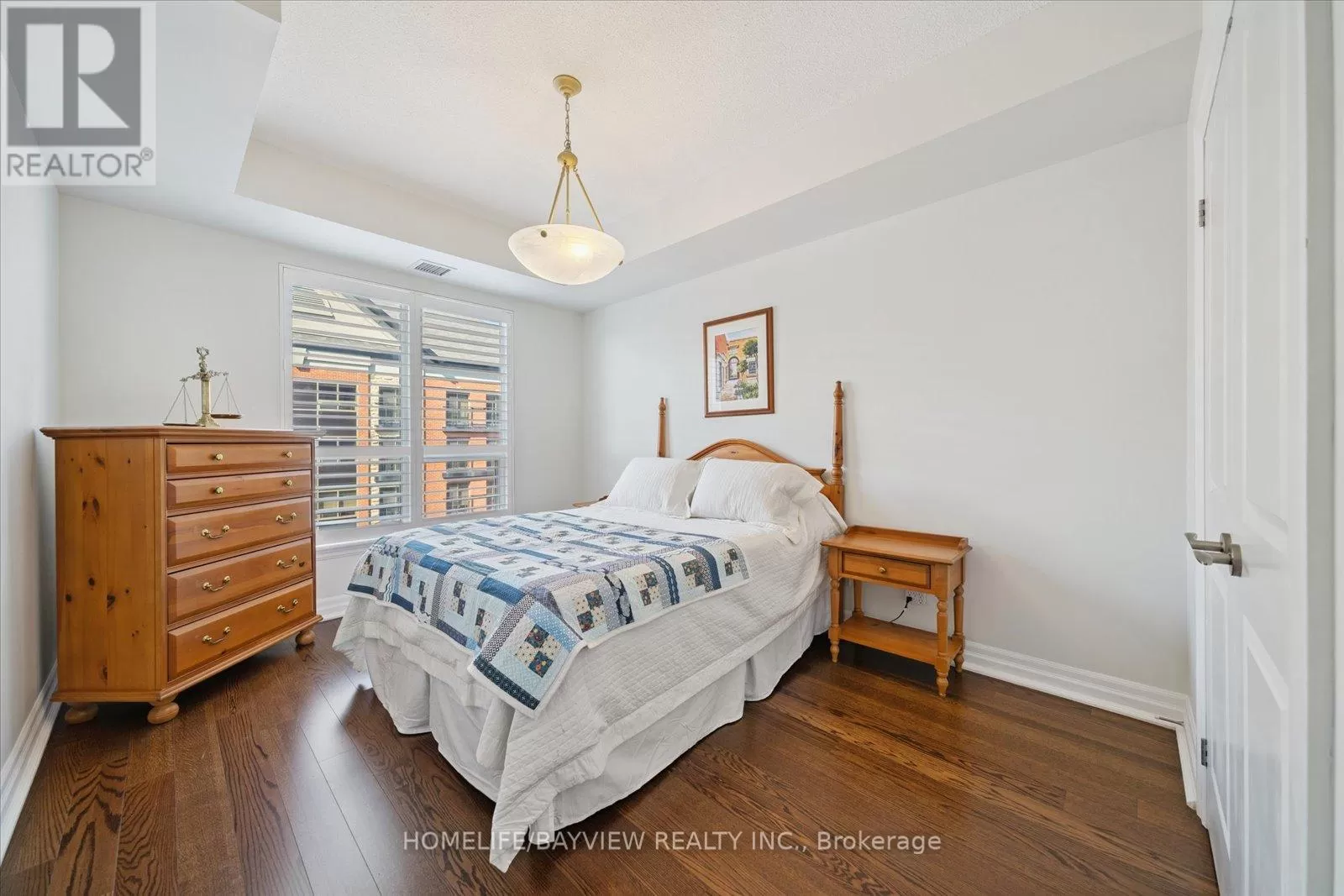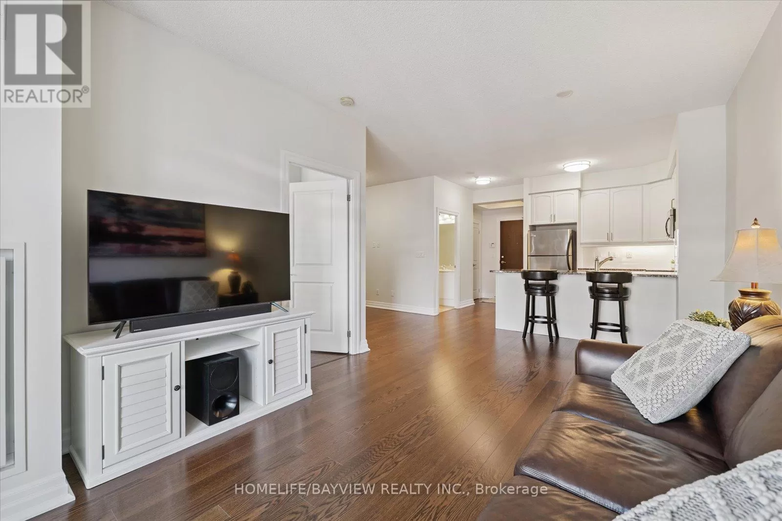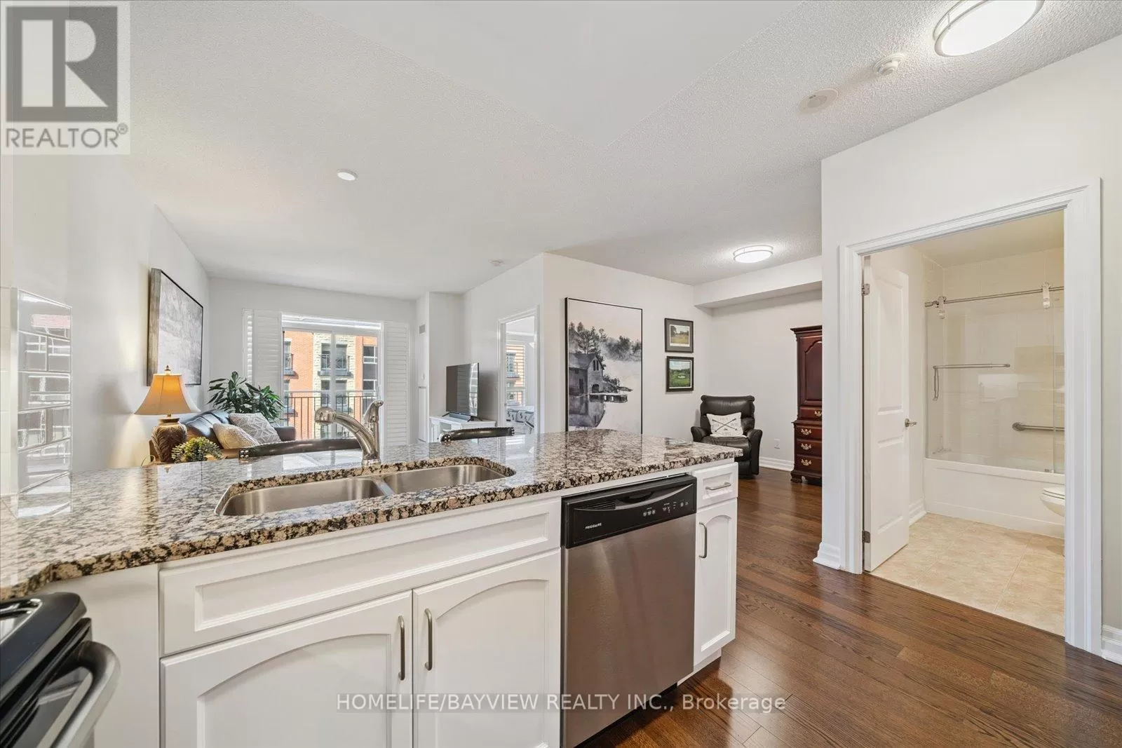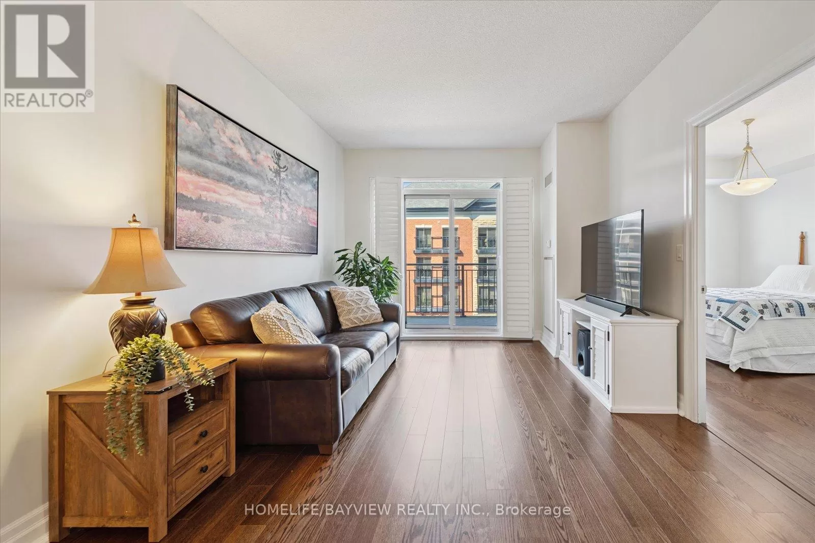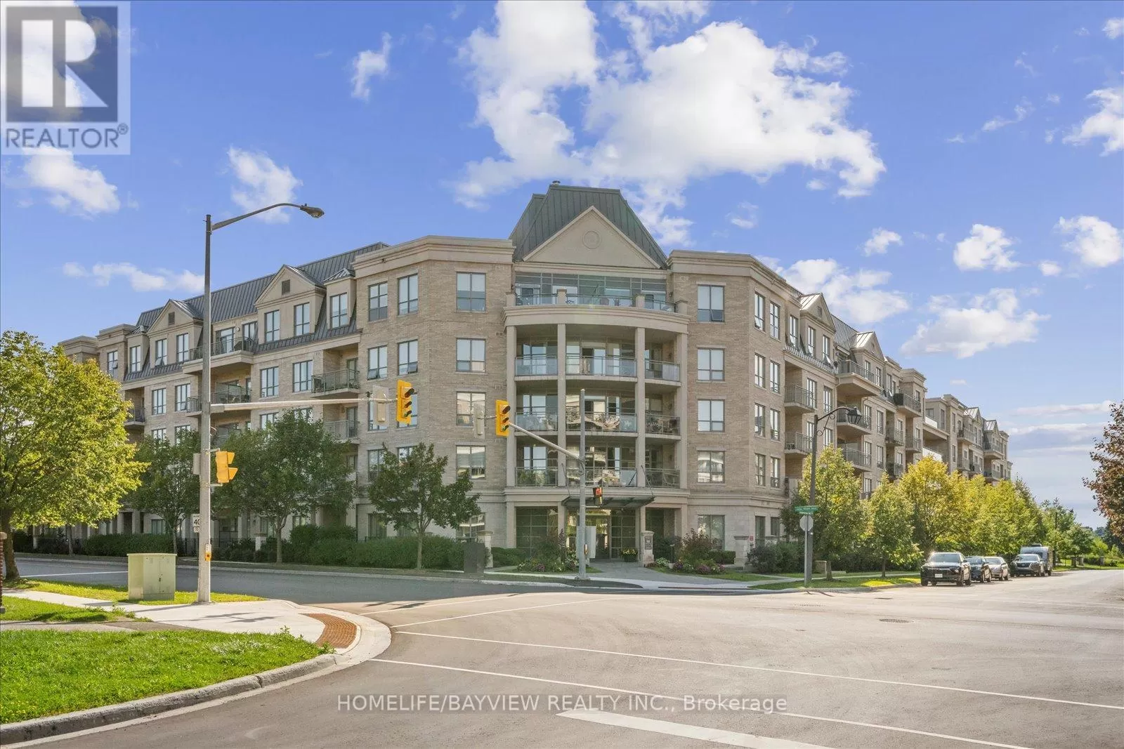 Cross Streets: Bayview/Wellington. ** Directions: Google Maps. Discover Resort-Style Living At "Ridgewood" In Aurora, With This Updated 1-Bedroom Plus Den Condo Offering 736 Sq Ft Of Open-Concept Space And A Private Balcony Showcasing Stunning Northern City Views. Inside, Enjoy Coffered Ceilings, 9 ft heights, And A Stylish Kitchen Featuring White Cabinetry, Granite Countertops, A Breakfast Bar, New Backsplash With Under-Valence Lighting, & Engineered Hardwood Floors. This Home Has Been Freshly Painted Throughout, Enhancing Its Bright And Welcoming Atmosphere. The Primary Bedroom Fits A King-Sized Bed And Offers Ample Closet Space, While The Den Serves As an Ideal Office Or Dining Area. The Luxurious Bathroom Includes A Soaker Tub And A Glass Shower Door. Exceptional Community Amenities Include A Saltwater Pool, BBQ Area, Gym, Steam Room, Theater Room, Bike Racks, And Party Room, With Concierge Services For Added Security and Convenience. There are Plenty of Visitor Spots & Guest Suite Available For Friends. Pets Allowed with Restrictions. You're Just Minutes From Walking Trails, The Stronach Rec Complex, Aurora Leisure Complex, The Aurora Seniors Centre, Sheppard's Bush, Top Schools, GO Train Station, Dining & Shopping, as well as Quick Access To Highway 404. This Design is Unique & Spacious & You will Not Want To Miss This One!! (id:27476)