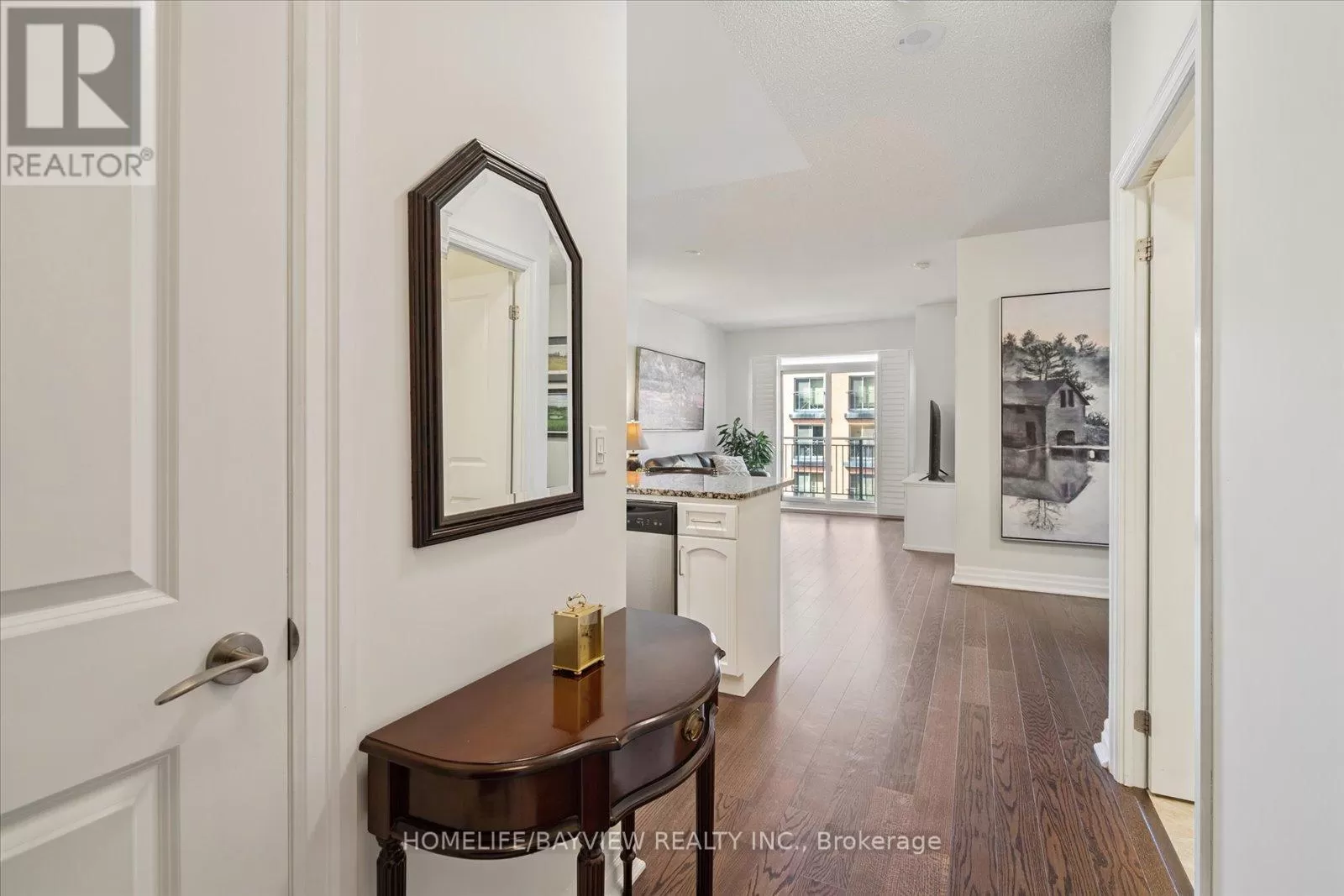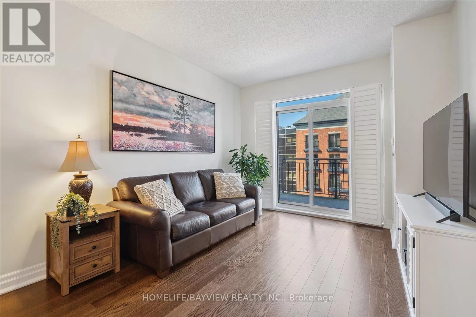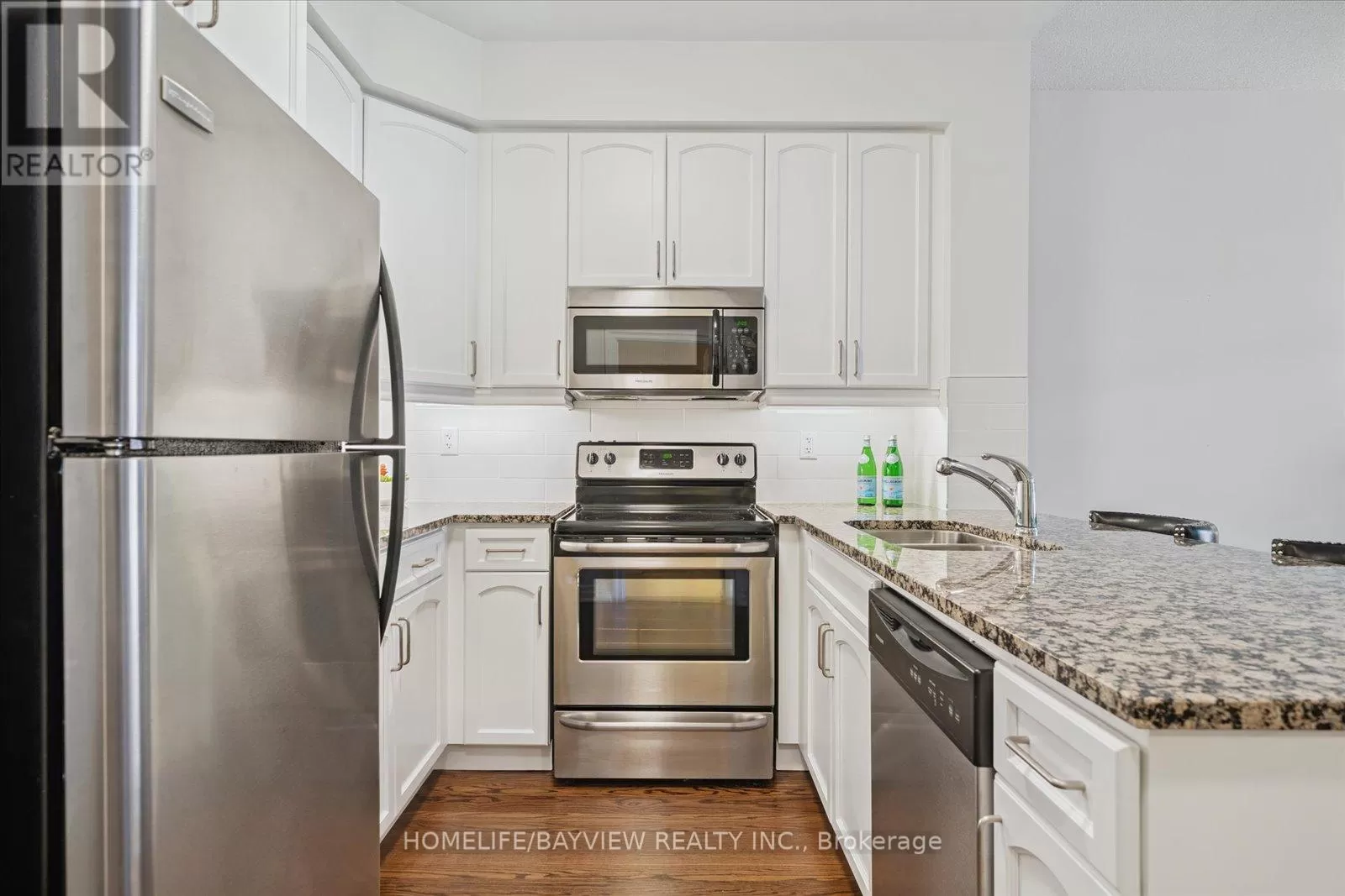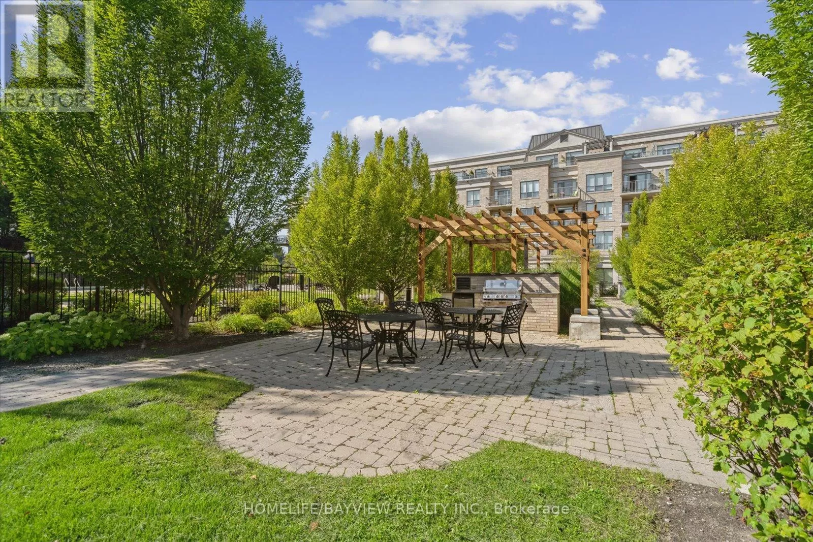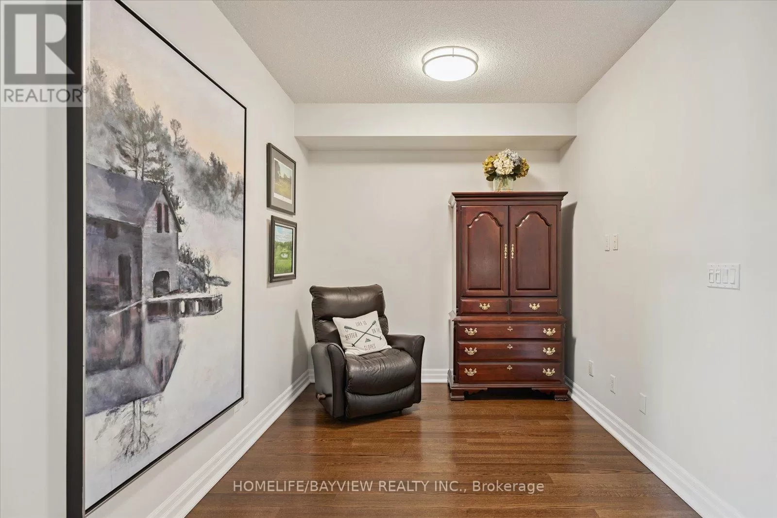 Cross Streets: Bayview/Wellington. ** Directions: Google Maps. Discover Resort-Style Living At "Ridgewood" In Aurora, With This Updated 1-Bedroom Plus Den Condo Offering 736 Sq Ft Of Open-Concept Space And A Private Balcony Showcasing Stunning Northern City Views. Inside, Enjoy Coffered Ceilings, 9 ft heights, And A Stylish Kitchen Featuring White Cabinetry, Granite Countertops, A Breakfast Bar, New Backsplash With Under-Valence Lighting, & Engineered Hardwood Floors. This Home Has Been Freshly Painted Throughout, Enhancing Its Bright And Welcoming Atmosphere. The Primary Bedroom Fits A King-Sized Bed And Offers Ample Closet Space, While The Den Serves As an Ideal Office Or Dining Area. The Luxurious Bathroom Includes A Soaker Tub And A Glass Shower Door. Exceptional Community Amenities Include A Saltwater Pool, BBQ Area, Gym, Steam Room, Theater Room, Bike Racks, And Party Room, With Concierge Services For Added Security and Convenience. There are Plenty of Visitor Spots & Guest Suite Available For Friends. Pets Allowed with Restrictions. You're Just Minutes From Walking Trails, The Stronach Rec Complex, Aurora Leisure Complex, The Aurora Seniors Centre, Sheppard's Bush, Top Schools, GO Train Station, Dining & Shopping, as well as Quick Access To Highway 404. This Design is Unique & Spacious & You will Not Want To Miss This One!! (id:27476)