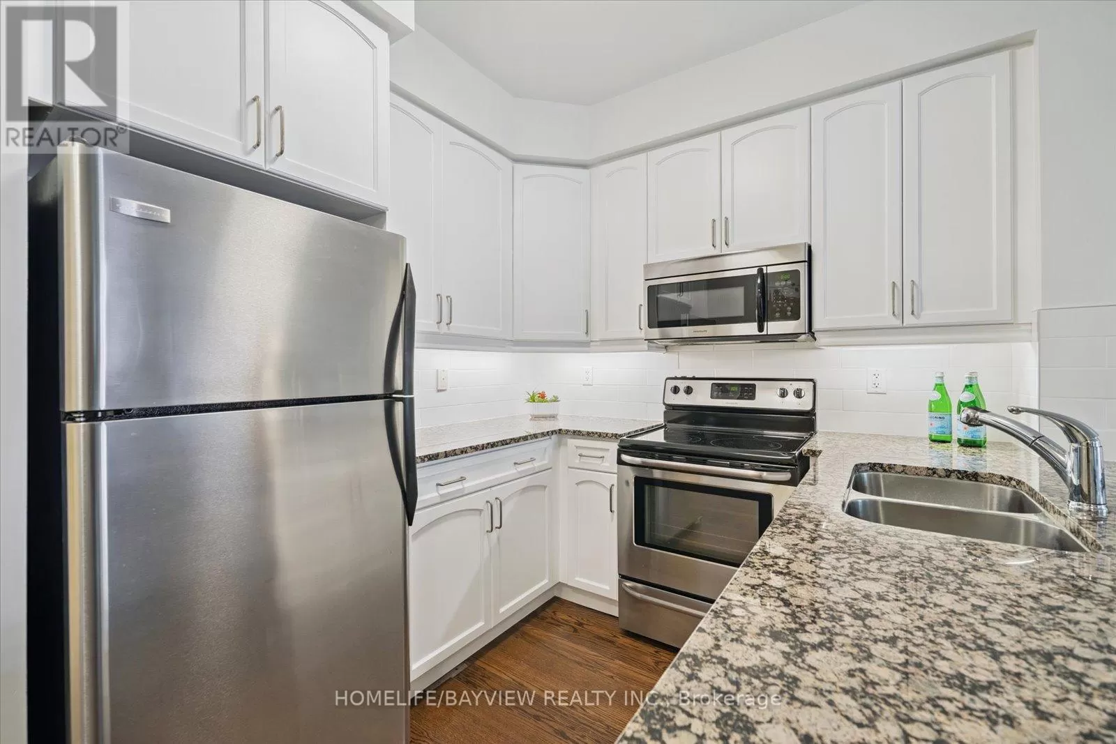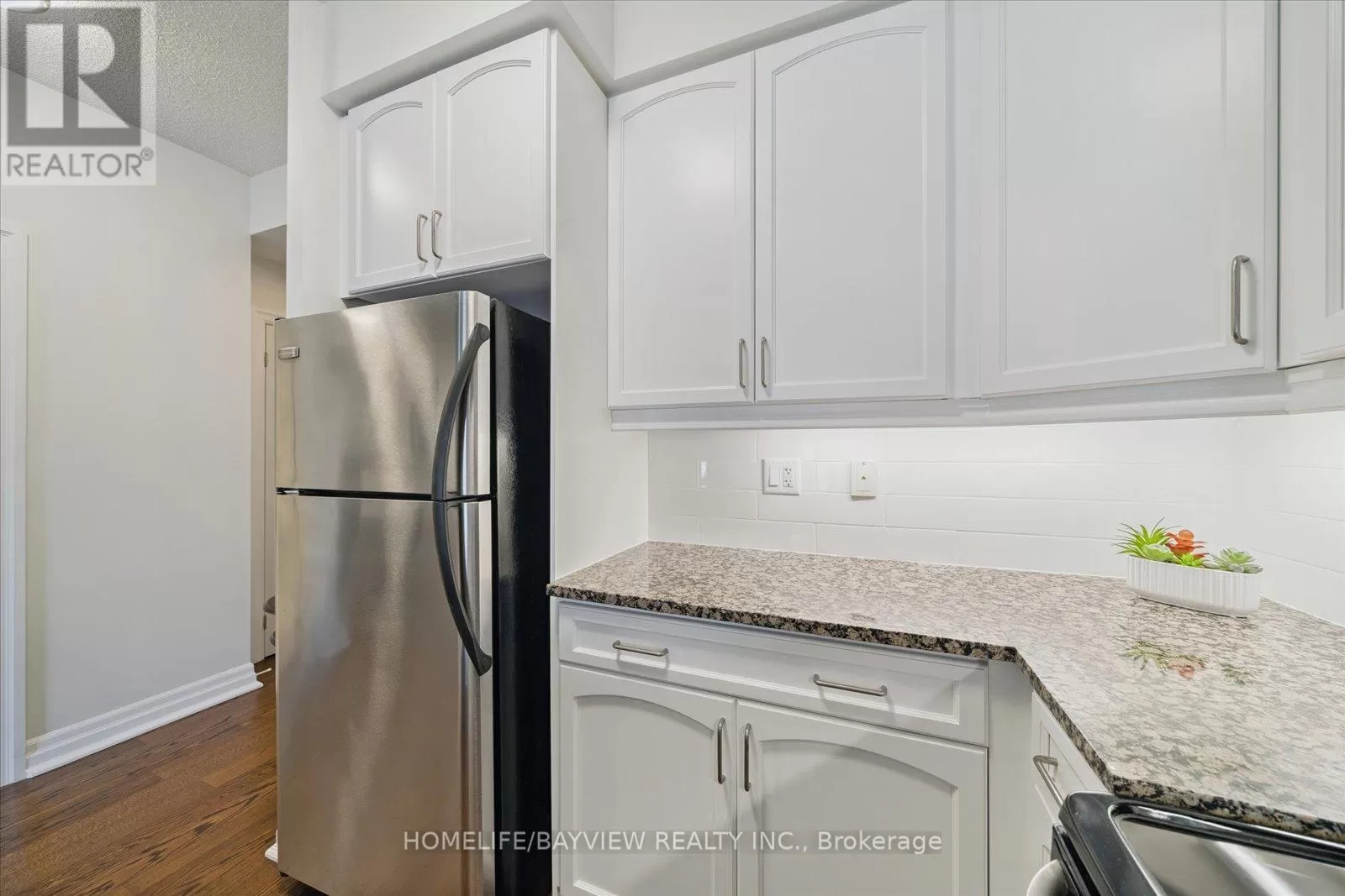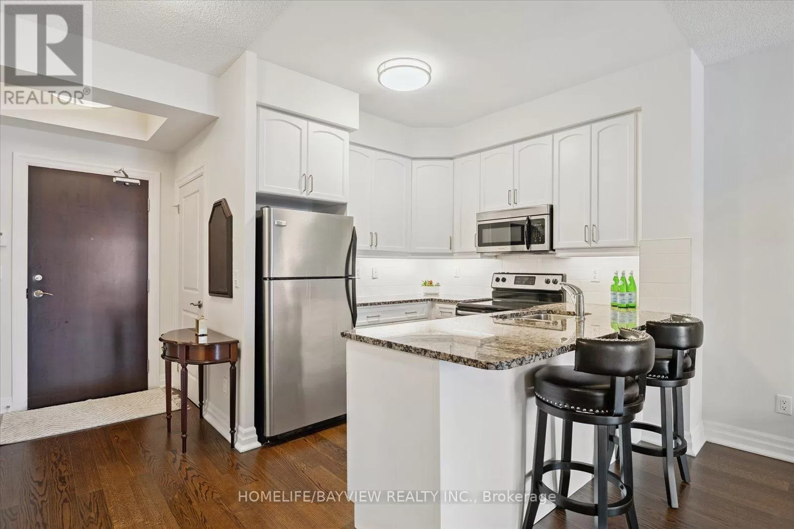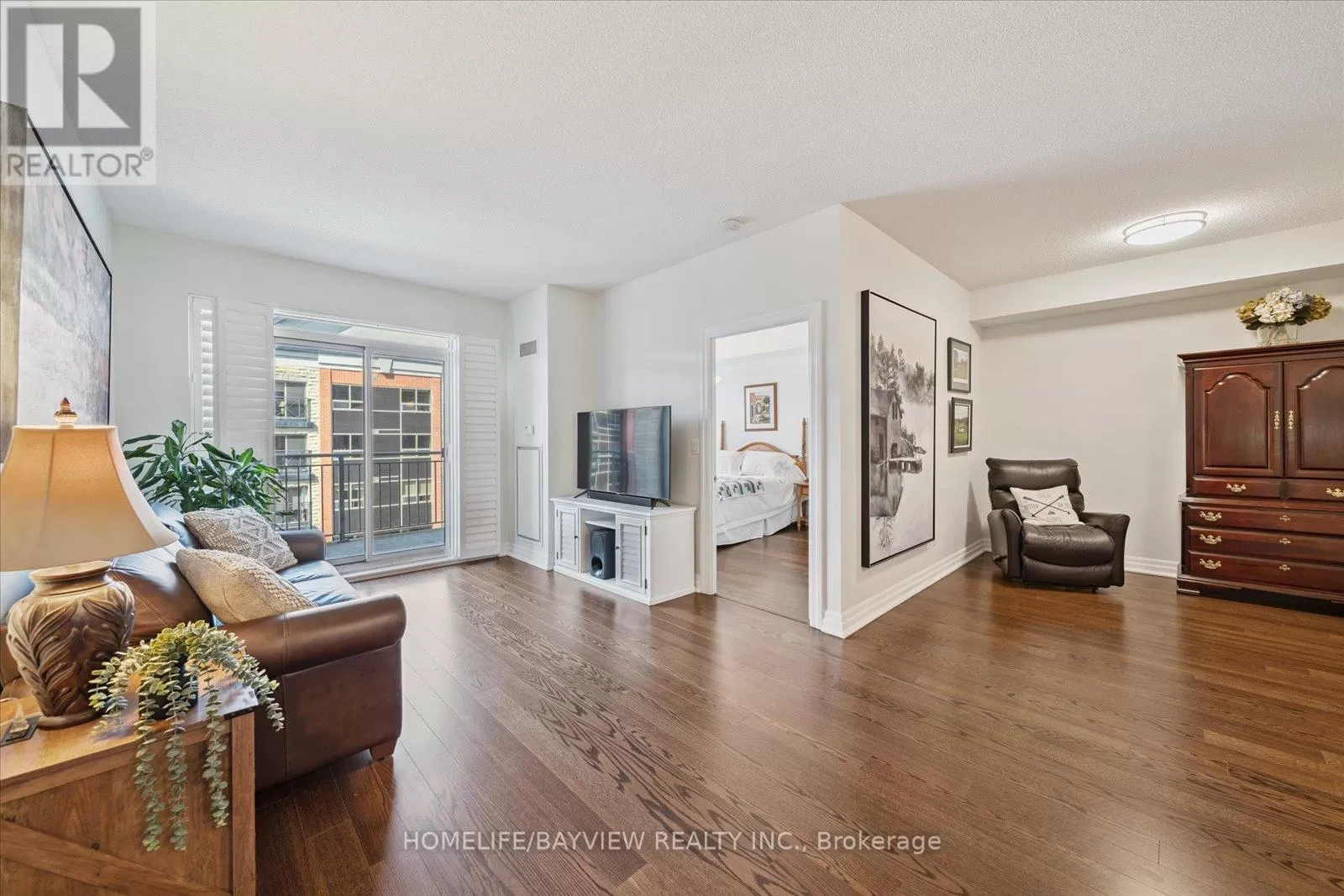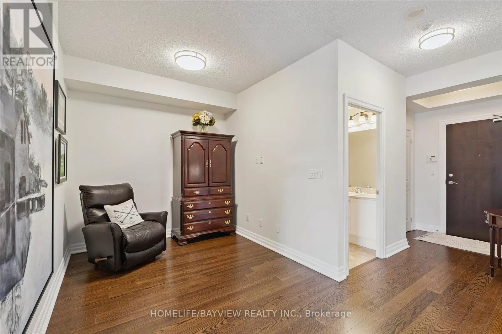 Cross Streets: Bayview/Wellington. ** Directions: Google Maps. Discover Resort-Style Living At "Ridgewood" In Aurora, With This Updated 1-Bedroom Plus Den Condo Offering 736 Sq Ft Of Open-Concept Space And A Private Balcony Showcasing Stunning Northern City Views. Inside, Enjoy Coffered Ceilings, 9 ft heights, And A Stylish Kitchen Featuring White Cabinetry, Granite Countertops, A Breakfast Bar, New Backsplash With Under-Valence Lighting, & Engineered Hardwood Floors. This Home Has Been Freshly Painted Throughout, Enhancing Its Bright And Welcoming Atmosphere. The Primary Bedroom Fits A King-Sized Bed And Offers Ample Closet Space, While The Den Serves As an Ideal Office Or Dining Area. The Luxurious Bathroom Includes A Soaker Tub And A Glass Shower Door. Exceptional Community Amenities Include A Saltwater Pool, BBQ Area, Gym, Steam Room, Theater Room, Bike Racks, And Party Room, With Concierge Services For Added Security and Convenience. There are Plenty of Visitor Spots & Guest Suite Available For Friends. Pets Allowed with Restrictions. You're Just Minutes From Walking Trails, The Stronach Rec Complex, Aurora Leisure Complex, The Aurora Seniors Centre, Sheppard's Bush, Top Schools, GO Train Station, Dining & Shopping, as well as Quick Access To Highway 404. This Design is Unique & Spacious & You will Not Want To Miss This One!! (id:27476)