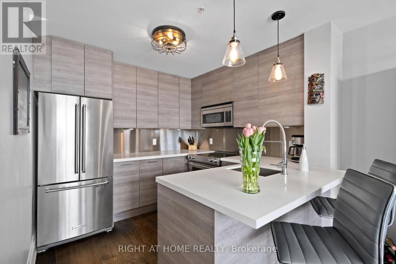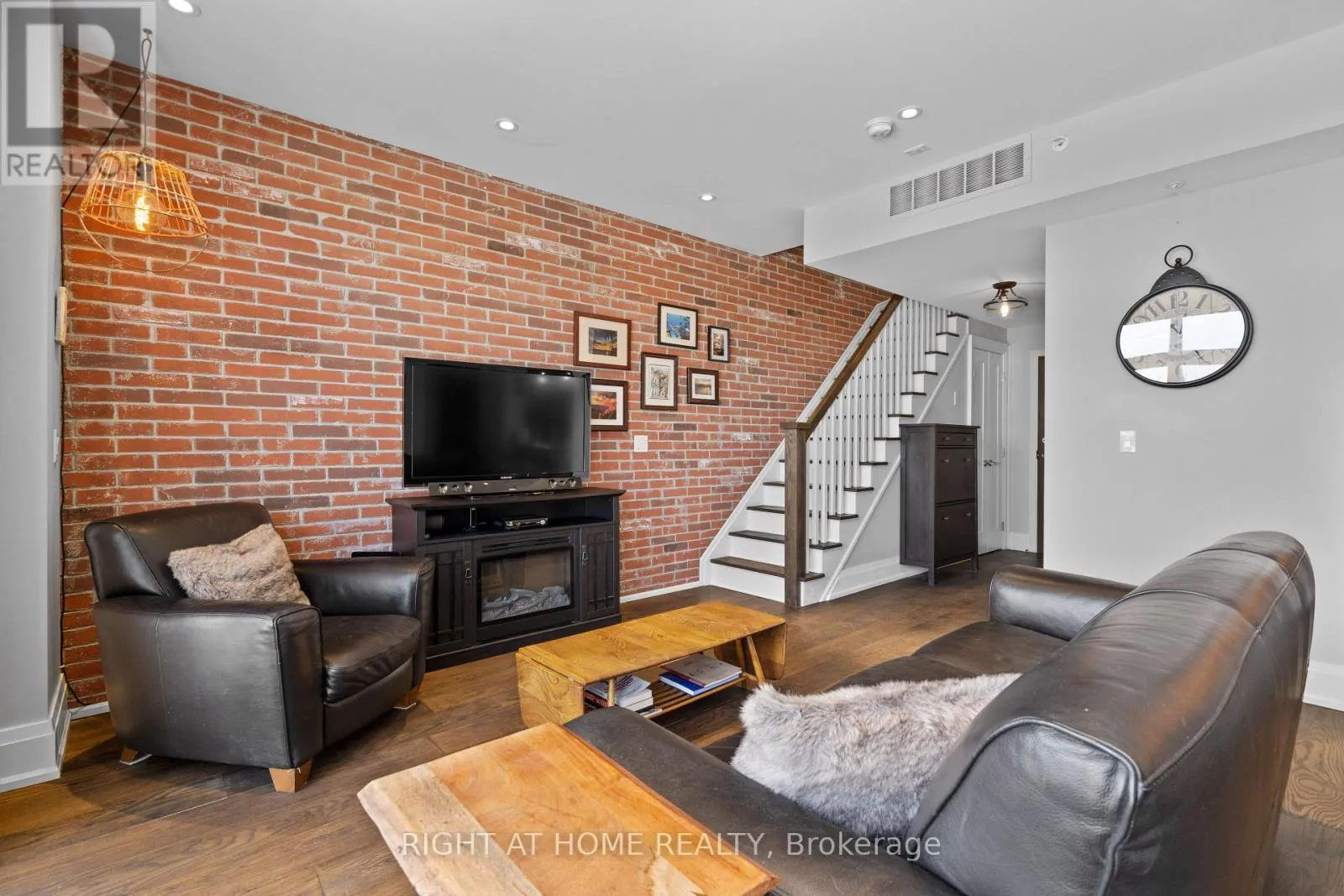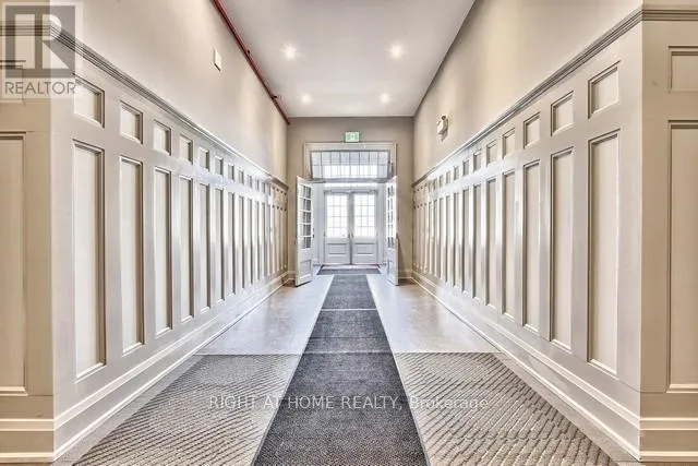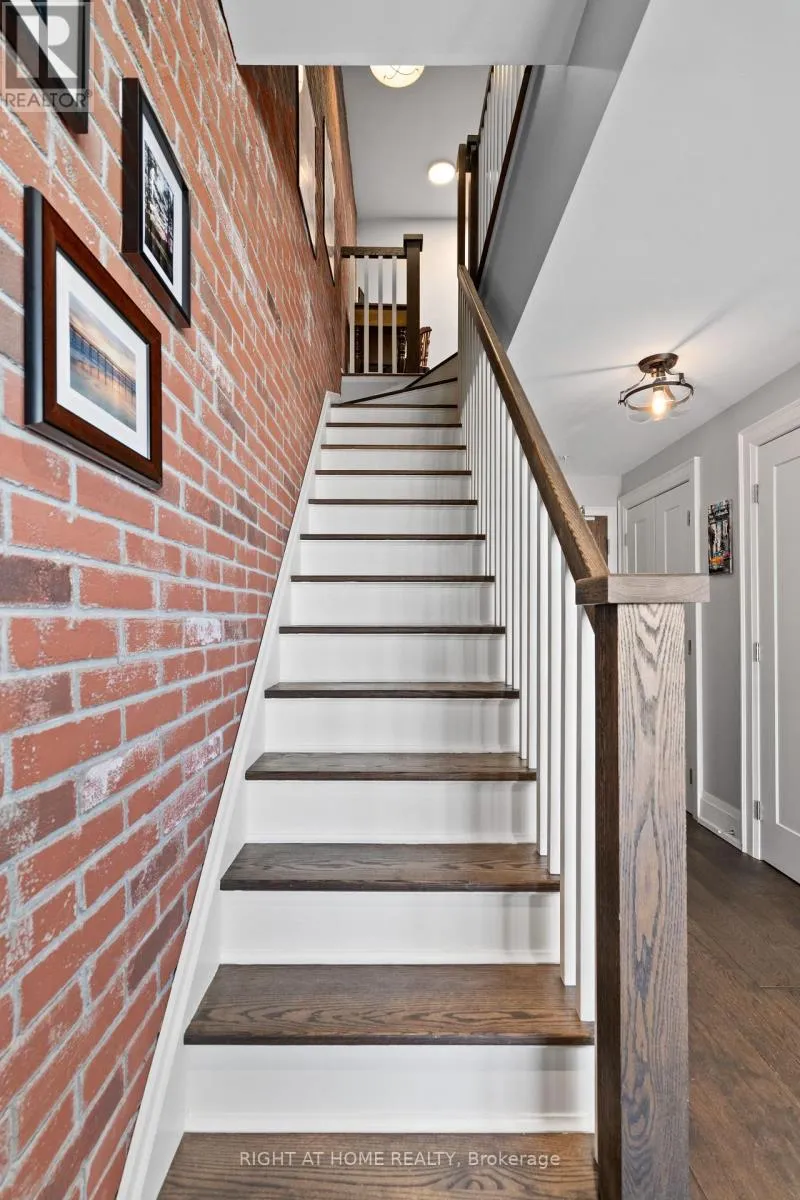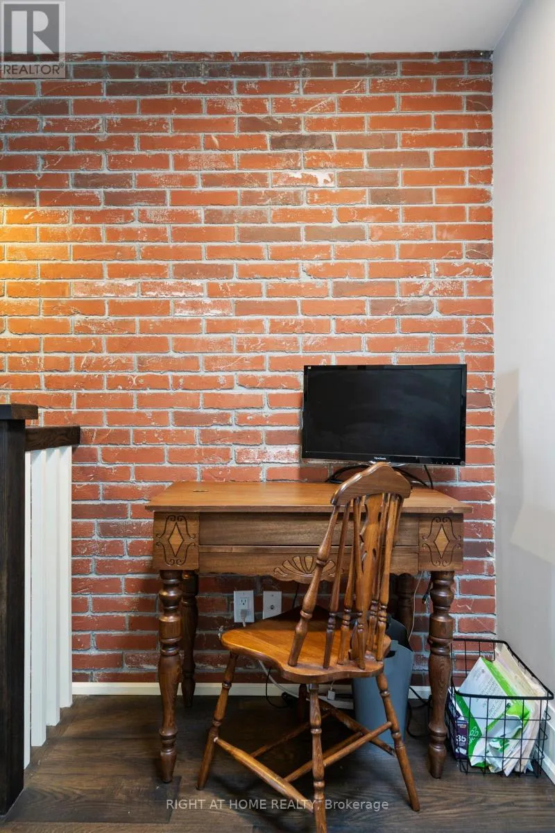 Cross Streets: Yonge & Wellington. ** Directions: East of Yonge 2 blocks; south of Wellington 2 blocks. Village living at its best, this penthouse loft is in the iconic former Wells Street School, offers high-end finished 1177 sq ft living inside plus 307 sq ft terrace outside. Excellent positioning between Town Park across the street - with weekly seasonal Farmer's Market & music nights and the Aurora Town Square with the Library / Cultural Centre behind. Walk to shopping, library, services, Go / YRT transit. Low maintenacne & utility costs. Unique brick wall along whole, south 2- storey staircase wall. Scavolini kitchen & bath cabinetry, with high end stainless appliances & stainless backsplash. White oak, wide plank dark oil rubbed hardwood throughout. Thoughtful upgrades for enjoyment. (id:27476)