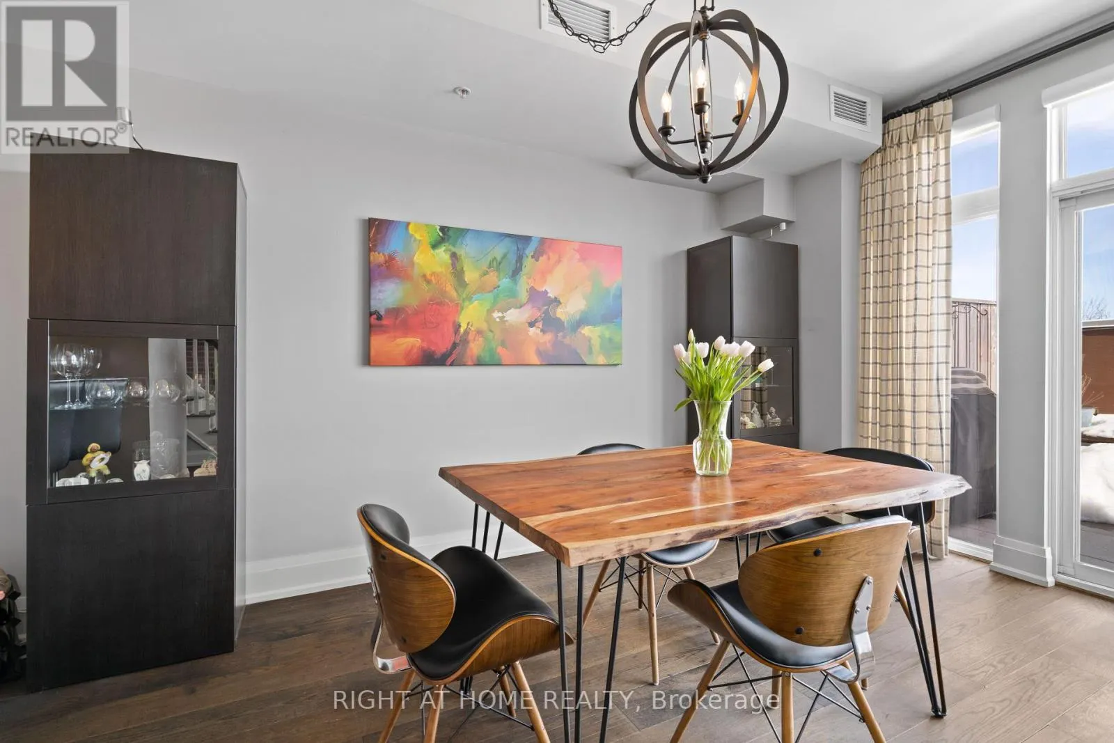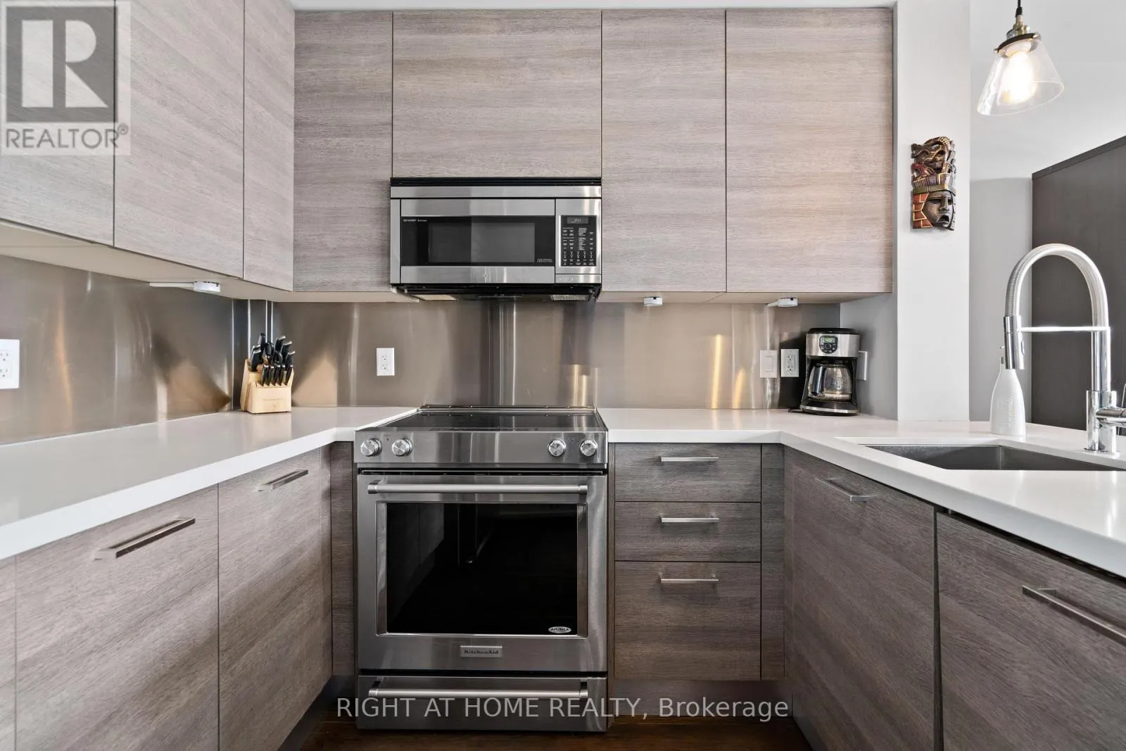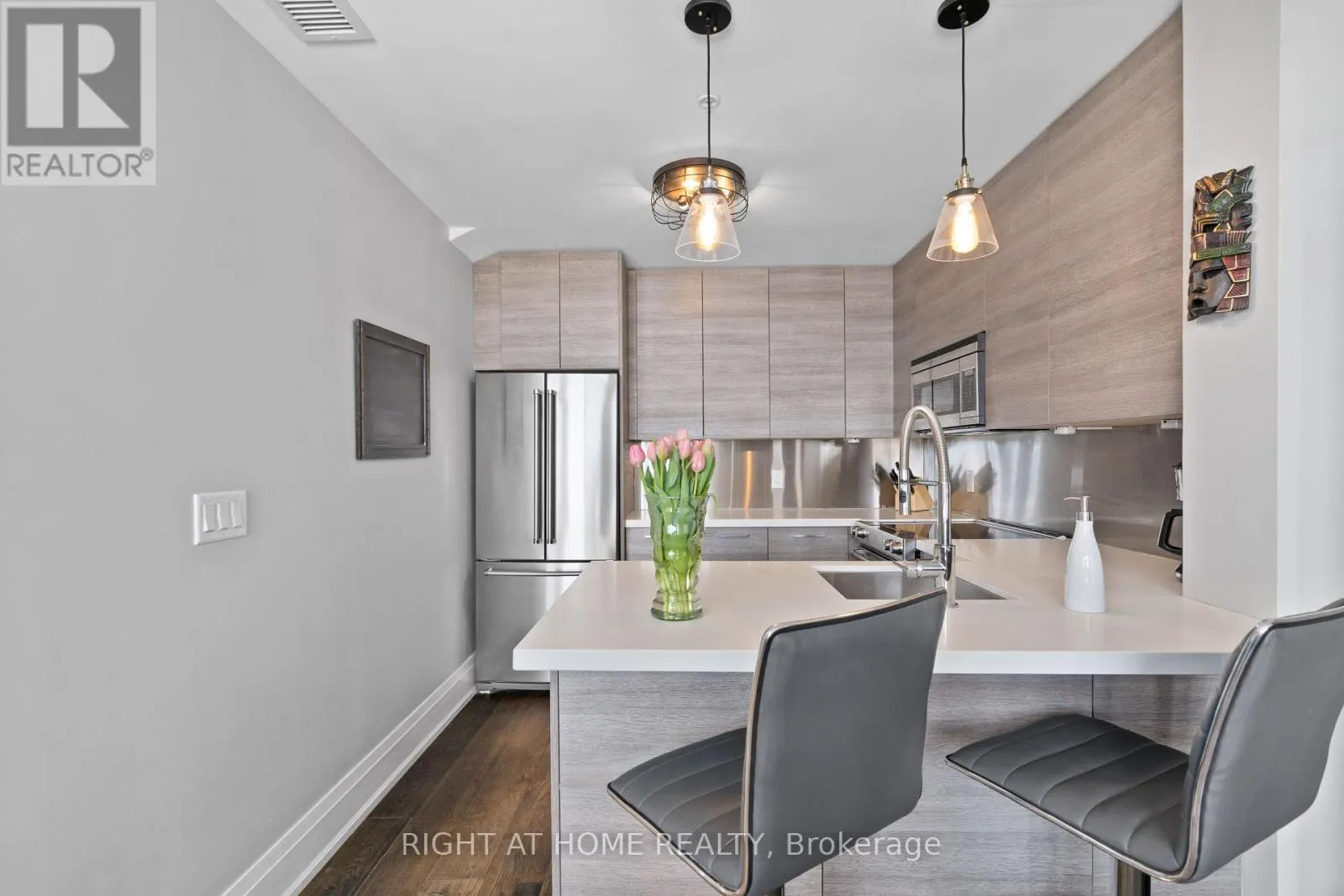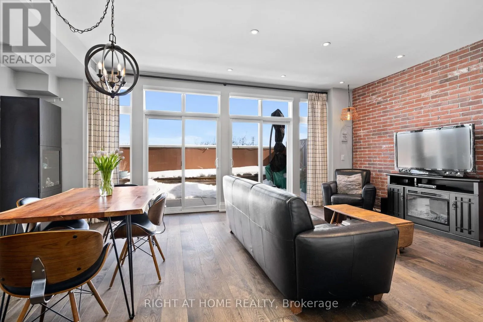 Cross Streets: Yonge & Wellington. ** Directions: East of Yonge 2 blocks; south of Wellington 2 blocks. Village living at its best, this penthouse loft is in the iconic former Wells Street School, offers high-end finished 1177 sq ft living inside plus 307 sq ft terrace outside. Excellent positioning between Town Park across the street - with weekly seasonal Farmer's Market & music nights and the Aurora Town Square with the Library / Cultural Centre behind. Walk to shopping, library, services, Go / YRT transit. Low maintenacne & utility costs. Unique brick wall along whole, south 2- storey staircase wall. Scavolini kitchen & bath cabinetry, with high end stainless appliances & stainless backsplash. White oak, wide plank dark oil rubbed hardwood throughout. Thoughtful upgrades for enjoyment. (id:27476)