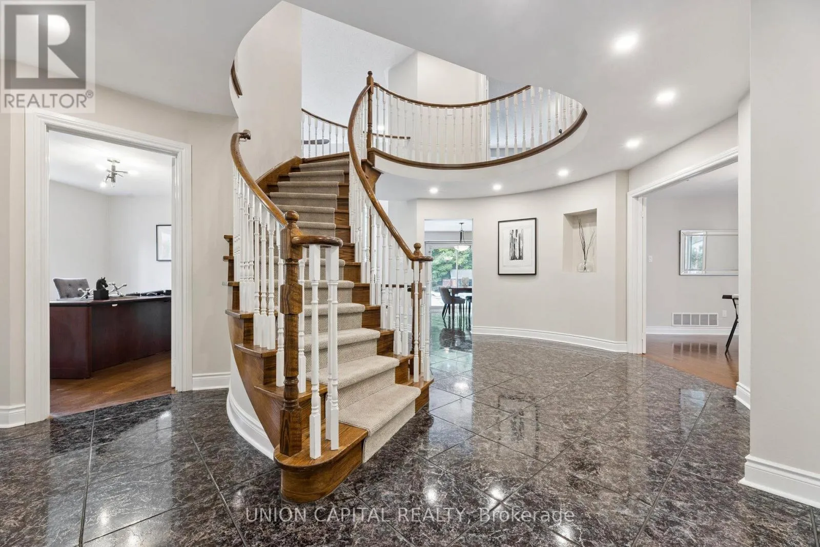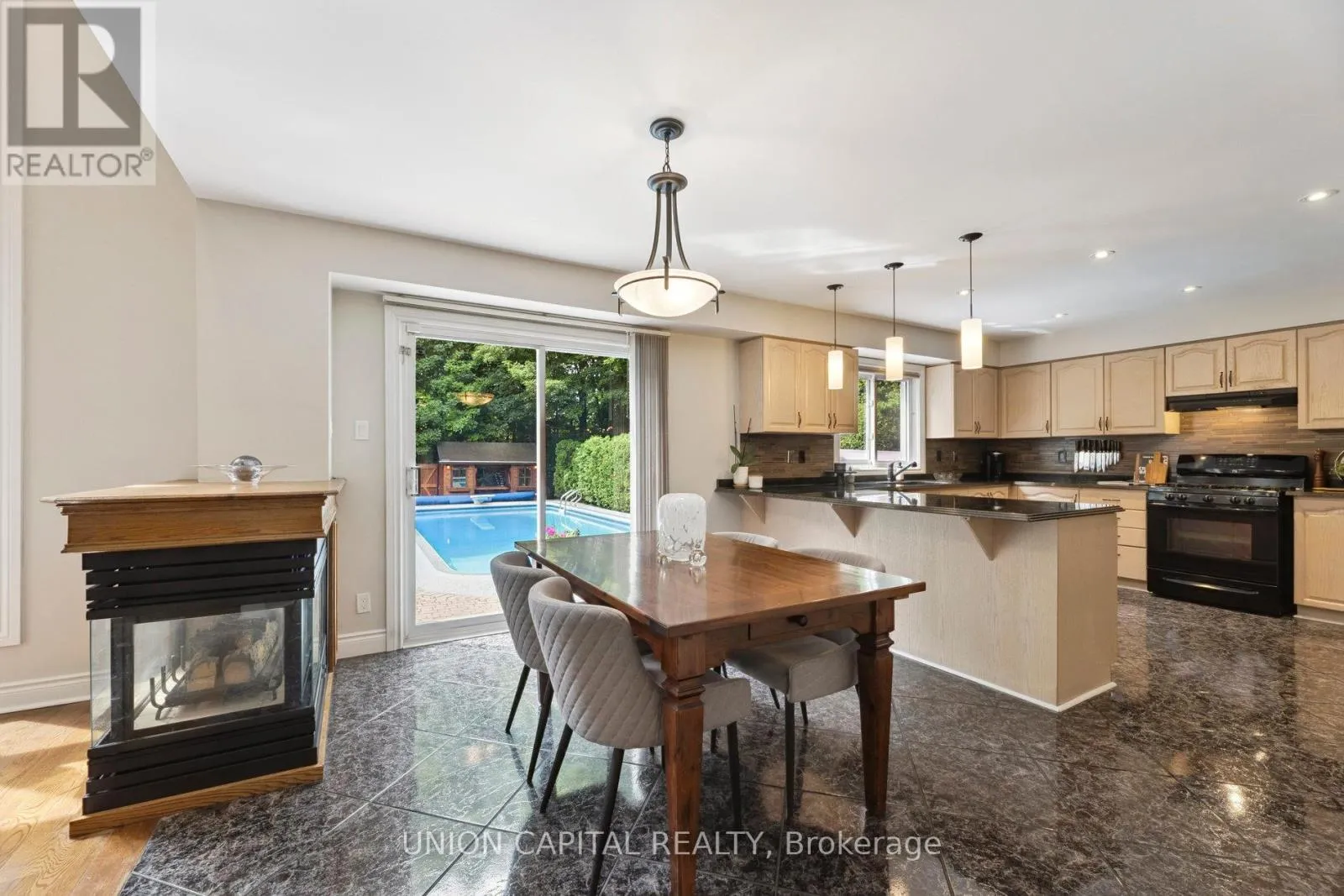 Cross Streets: Bathurst St. and Bloomington Rd. ** Directions: Off of Bathurst, right on McClellan Way, right on Allenvale Dr, right on Charing Cres. *Experience Resort-Style Living in Aurora Highlands* This executive home sits on a premium 59.23 ft x 154.44 ft lot, backing onto protected forest for rare privacy and a true backyard retreat. With nearly 5,300 sq ft of living space (3,946 above grade), 4 bedrooms, 5 bathrooms, and a 3-car garage, this property offers both function and lifestyle. Step inside to a grand rotunda staircase, smooth ceilings, and a sun-filled layout. The main floor features hardwood flooring, new pot lighting, a formal living and dining room, and a family room with 18-ft ceilings, Palladian windows, and a 3-sided gas fireplace. The kitchen is equipped with granite counters, a breakfast bar, and a walk-out to your private yard. A main-floor office and laundry/mudroom with garage access add convenience. Upstairs, the primary suite includes his & hers walk-in closets and a spa-inspired ensuite. Two secondary bedrooms feature cathedral ceilings; one has its own ensuite, while the others share a Jack & Jill bath. All bedrooms include walk-in closets. The finished basement offers 1,600 sq ft of flexible living space, a 3-piece bath, and ample storage. Your outdoor oasis features a heated 46-ft saltwater pool with both solar and gas systems, a cabana with electrical/water hookups, a dual-motor hot tub with Wi-Fi control, an outdoor shower, two gas lines, and professional landscaping; all this backed onto a private greenspace. Lovingly maintained by original owners with major updates: furnace + AC (2025), bathrooms (2 yrs), garage doors (2 yrs), roof (8 yrs), NorthStar windows (partial), central vac (1 yr), water softener + iron filter (5 yrs), 200-amp service, and more. Prime Aurora Highlands location: top-ranked schools (Highview PS, Light of Christ CES, Aurora HS), minutes to trails, golf, shopping, and Hwy 404/407. Want to see more - check the virtual tour for full photo gallery, video, and floor plans. (id:27476)