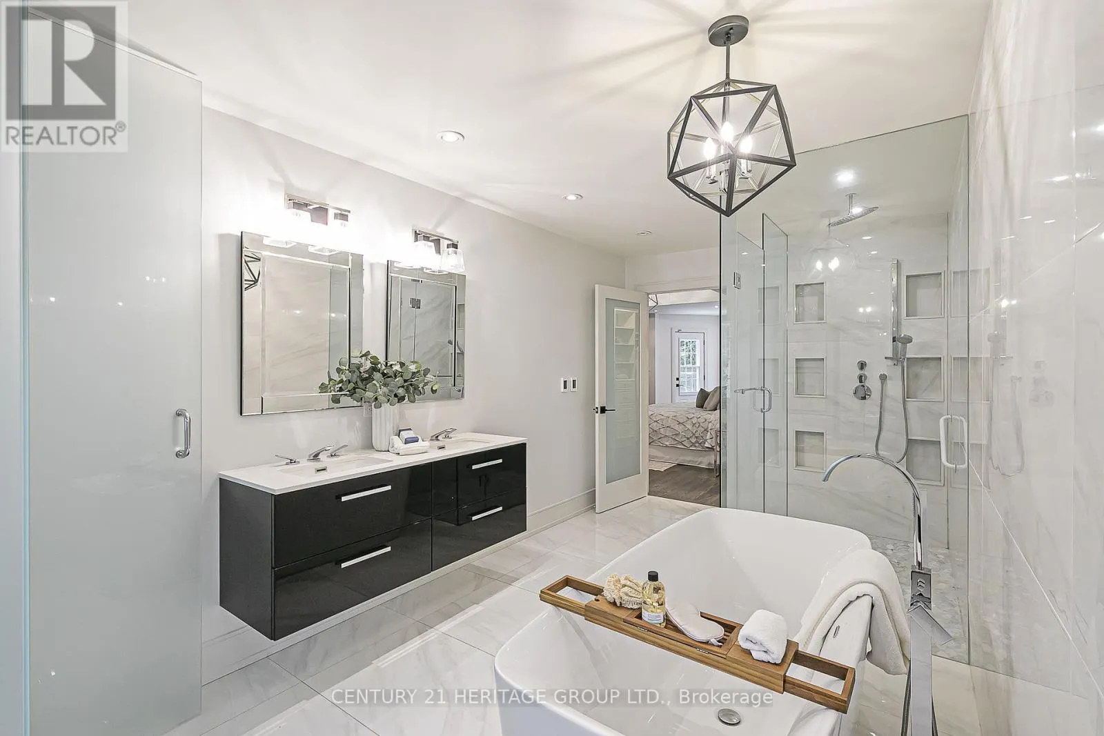 Bathurst St. / Wellington St. Welcome to 46 Pineneedle Dr. An absolute dream home! This sprawling bungalow is on a massive lot backing on to a ravine in the Hills of St. Andrew. You can not beat the tranquillity and privacy of this property and location. Completely renovated top to bottom. 3 bedrooms and 4 bathrooms on the main floor and an additional 2 bedrooms and 2 full bathrooms in the walk out basement with a full apartment including a complete open concept kitchen. Enjoy the view of your own private forest right in town from your huge raised composite back deck that you can access from the living room, kitchen, or primary bedroom. Youll feel like youre in the country while being steps away from local shopping, restaurants, the best public and private schools, walking trails, and so much more. The Virtual Tour and walk through video are a must see! (id:27476)