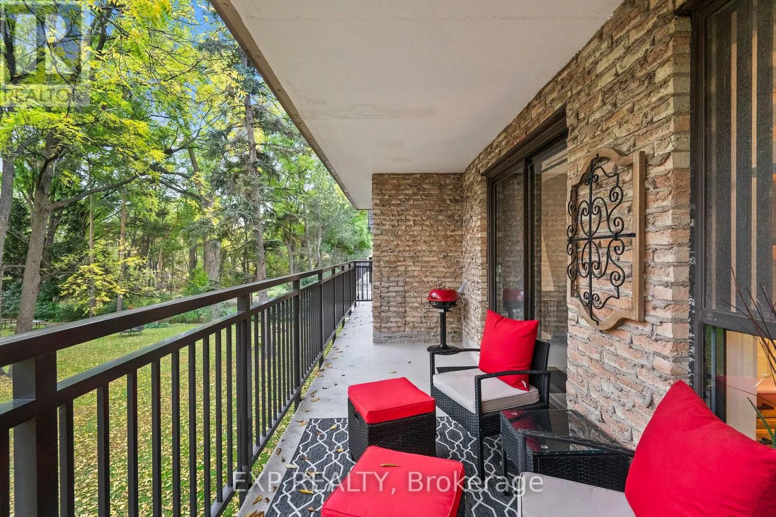 Yonge St. & North Of Wellington Welcome to Devonshire Place, one of Aurora's most sought-after addresses - where comfort, charm, and convenience meet. This bright, beautifully maintained 2-bedroom condo offers a sunny south-facing view overlooking the historic Hillary House and tranquil, tree-filled gardens - your own private escape in the heart of the city. Freshly painted and move-in ready, the home features laminate floors in the main living areas and soft Berber carpet in the bedrooms for a perfect blend of style and comfort. The open-concept living and dining area flows seamlessly to the private balcony - ideal for morning coffee or a quiet evening unwind. The eat-in kitchen is thoughtfully designed with custom honey birch maple cabinetry, tile backsplash, and stainless steel appliances, perfect for everyday living or entertaining friends. Both bedrooms are generously sized with great closet space, and the building itself is known for its peaceful atmosphere, caring community, and meticulous upkeep. Steps from transit, parks, schools, and Aurora's vibrant downtown - this home delivers modern convenience in a classic setting. Discover easy condo living in a location that truly has it all. (id:27476)