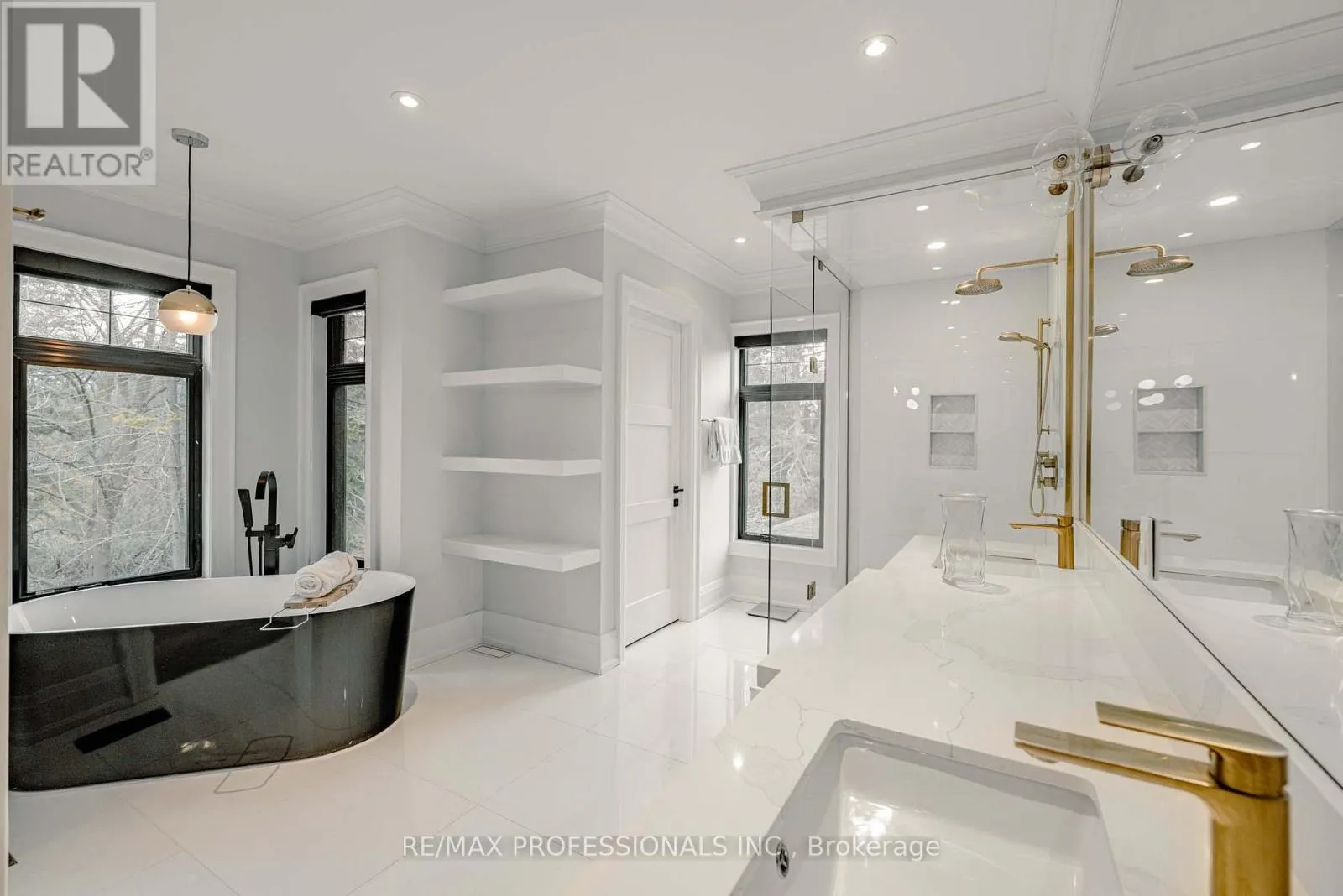 Yonge St/Cousins Custom Home on the Park. An exceptionally crafted, custom-built residence backing on to Rotary Park/conservation! Located on a pretty, tree-lined street in one of Aurora's premier neighborhoods, this 4+1 bedroom/6 bathroom home offers 5,185 sq ft of finished living space designed with distinction and defined by soaring 10 ft ceilings, grand open spaces, and thoughtful craftsmanship. At its heart lies a dream-worthy kitchen with a grand center island, quartz countertops, custom cabinetry, high-end appliances (Sub-Zero, Wolf, Bosch), and a walk-in pantry. The kitchen opens seamlessly to a remarkable, open concept family room where floor-to-ceiling windows span the back wall, framing backyard/conservation views and flooding the space with natural light! A modern gas fireplace adds warmth and sophistication. The formal dining room offers an elevated entertaining experience and a refined main floor office with custom built-ins brings everyday function into focus. There's also a mudroom with a custom built dog/pet shower! Upstairs, four spacious bedrooms each features walk-in closets and private ensuite baths. The primary suite is a retreat into itself, with his & her walk-in closets and a luxurious 5-piece ensuite boasting heated floors, a freestanding soaker tub, and a glass-enclosed shower. The walkout lower level extends the home's versatility with heated floors, 10ft ceilings, large windows, a 3-piece bath, and expansive open-concept areas-perfect for a gym, games room, and/or media lounge. A spacious 2-bay garage provides secure, stylish storage for your vehicles, while the large backyard and peaceful, tree-lined setting invite you to unwind in nature. Set on a quiet, tree-lined street in a family-friendly neighborhood surrounded by parks, trails, and timeless charm-this is elevated living at its finest. (id:27476)