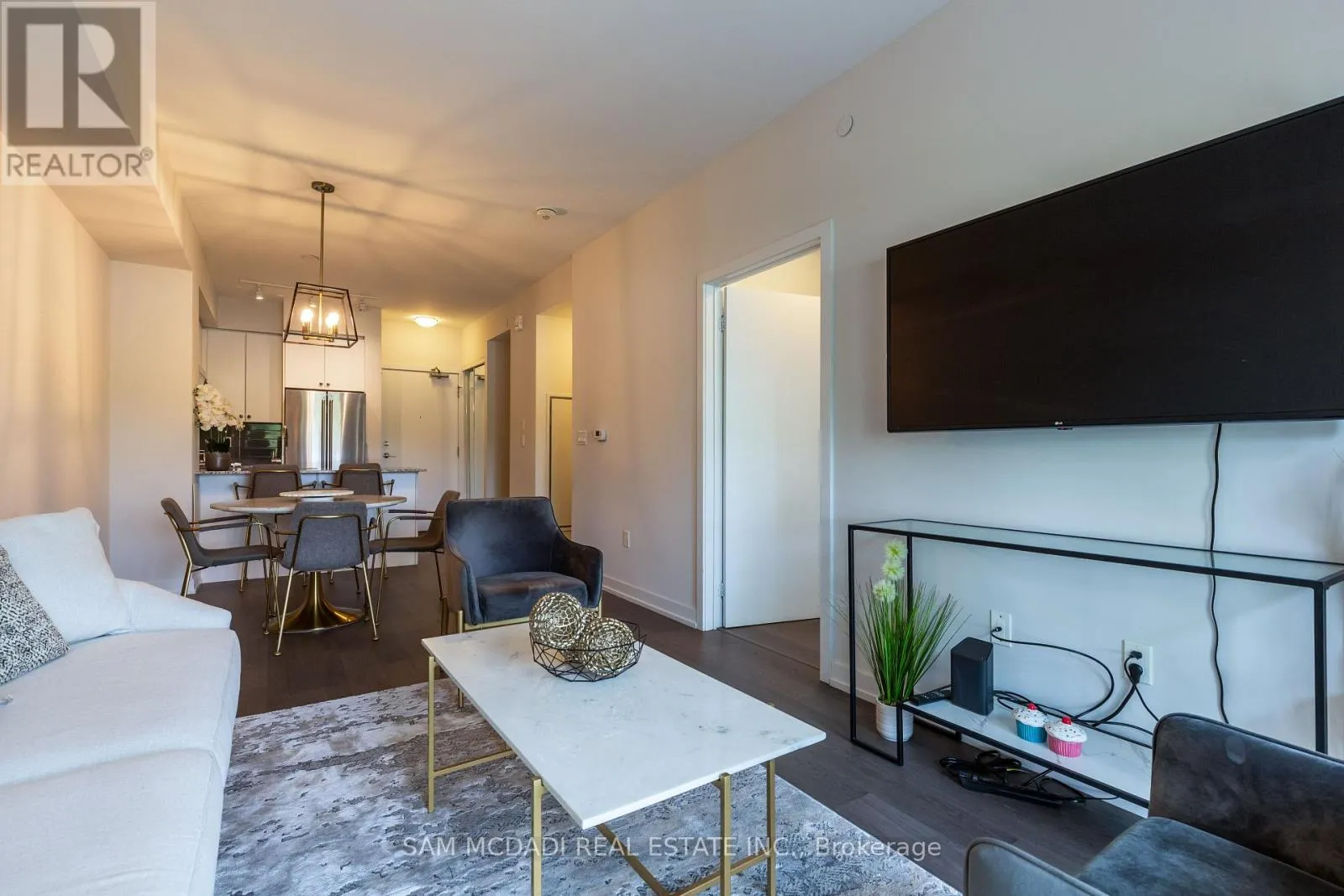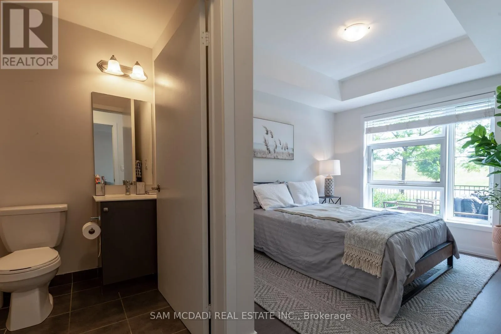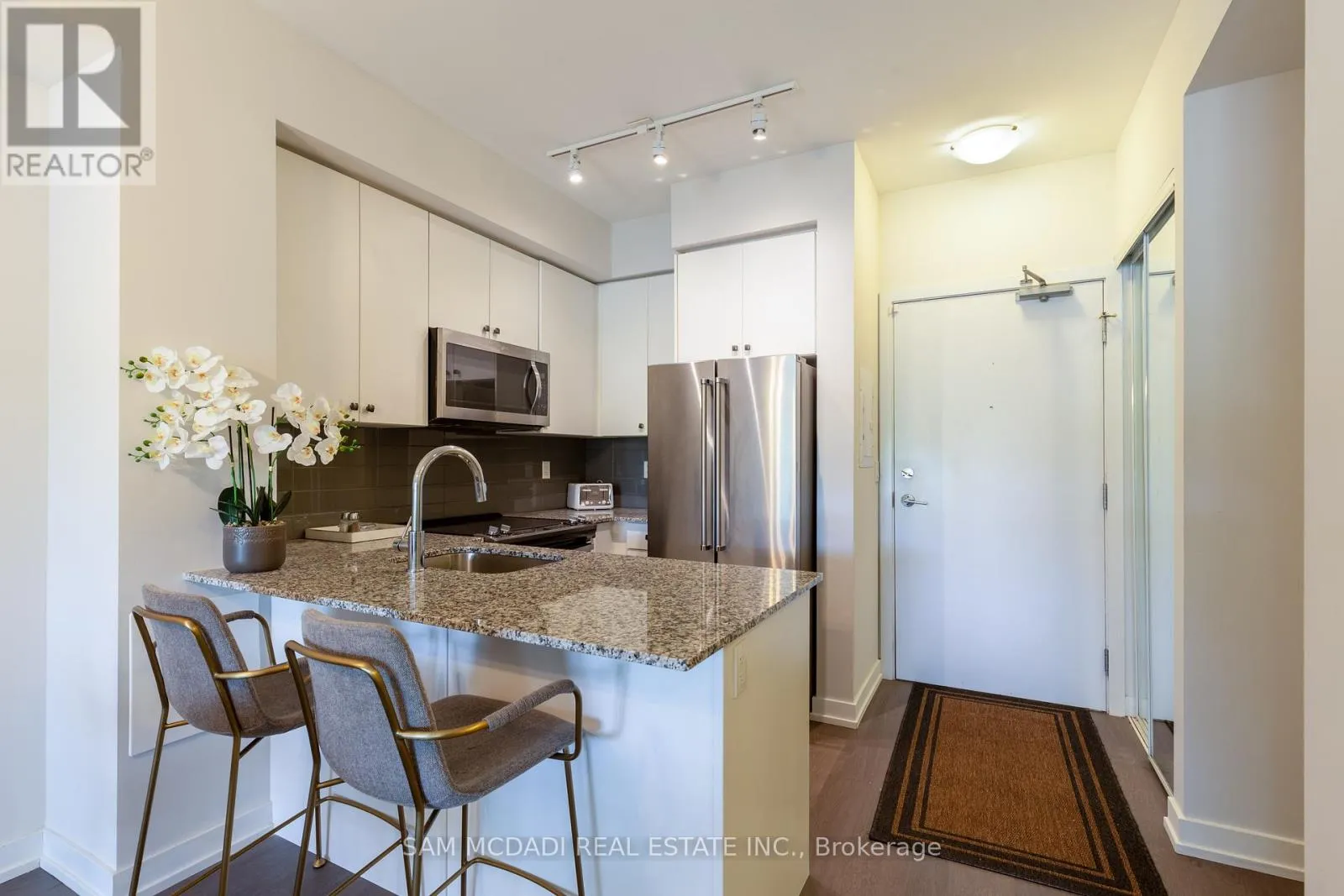 Leslie St & Wellington Rd The Arbors Auroras modern condominium community welcomes you. This modern design 1-bedroom + den suite offers a luxurious and quite lifestyle with breathtaking, unobstructed sunset views. Featuring a chef-inspired kitchen with quartz countertops, breakfast bar, and four stainless steel appliances, this open-concept unit is perfect for both entertaining and everyday living. Laminate flooring throughout and 10 ft. ceilings create a bright, airy atmosphere throughout. The spacious den can easily function as a second bedroom or home office, while the primary bedroom comfortably fits a king-size bed and includes a 4-piece ensuite and large closet space. Rarely offered, the oversized terrace allows for BBQs and outdoor dining. Freshly painted and move-in ready, this unit comes with underground parking and a locker. A perfect blend of luxury finishes and modern convenience. Access to amenities: concierge, gym, party room, pet spa, terrace/BBQ area, guest suite, billiard room, and a pharmacy/walk-in clinic. The location is ideal, with easy access to Hwy 404, GO Bus and GO Train, shopping, schools, and parks. (id:27476)