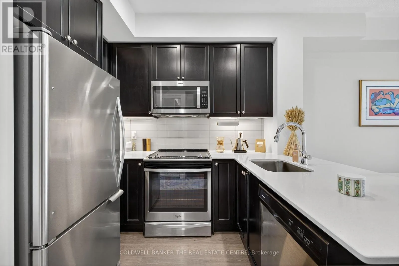 Cross Streets: Leslie St. & William Graham Dr. ** Directions: Main Entrance. Elevators are on the right past the lobby. Step into smart luxury at The Arbors in Aurora. A boutique-style, 4-storey condo offering smart luxury living in one of York Regions most desirable communities. Rarely offered, Suite 351 boasts a coveted west-facing view, capturing sweeping skyline vistas over luxury townhomes, lush forest, and breathtaking sunsets all from your private balcony. Its the perfect spot to enjoy your morning coffee or unwind with your favourite drink at days end. With over 700 sq. ft. of well-designed living space and soaring 9 ft ceilings, this 1 bedroom + den condo blends style, comfort, and functionality. Modern upgrades include quartz countertops, LED pot lights, under-cabinet lighting, smart switches, and a Nest thermostat complemented by a brand-new AC system installed in May 2025. Voice-controlled SMART lighting throughout adds convenience to everyday living. The Arbors offers an impressive collection of amenities: a fitness centre, party room with adjacent BBQ/garden patio, bike storage, storage locker, guest suites, meeting room, quiet lounge, dog spa, and a premium parking space located directly beside the main elevator. A full-time concierge adds peace of mind, while nearby trails and cycling paths invite you to explore the surrounding natural beauty. Ideal for professionals, downsizers, or first-time buyers, Suite 351 is move-in ready and perfectly designed for todays connected lifestyle blending smart technology, modern style, and the tranquility of nature. (id:27476)