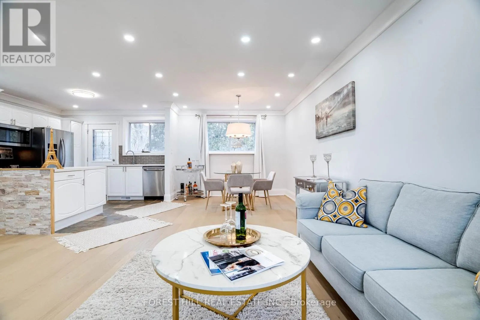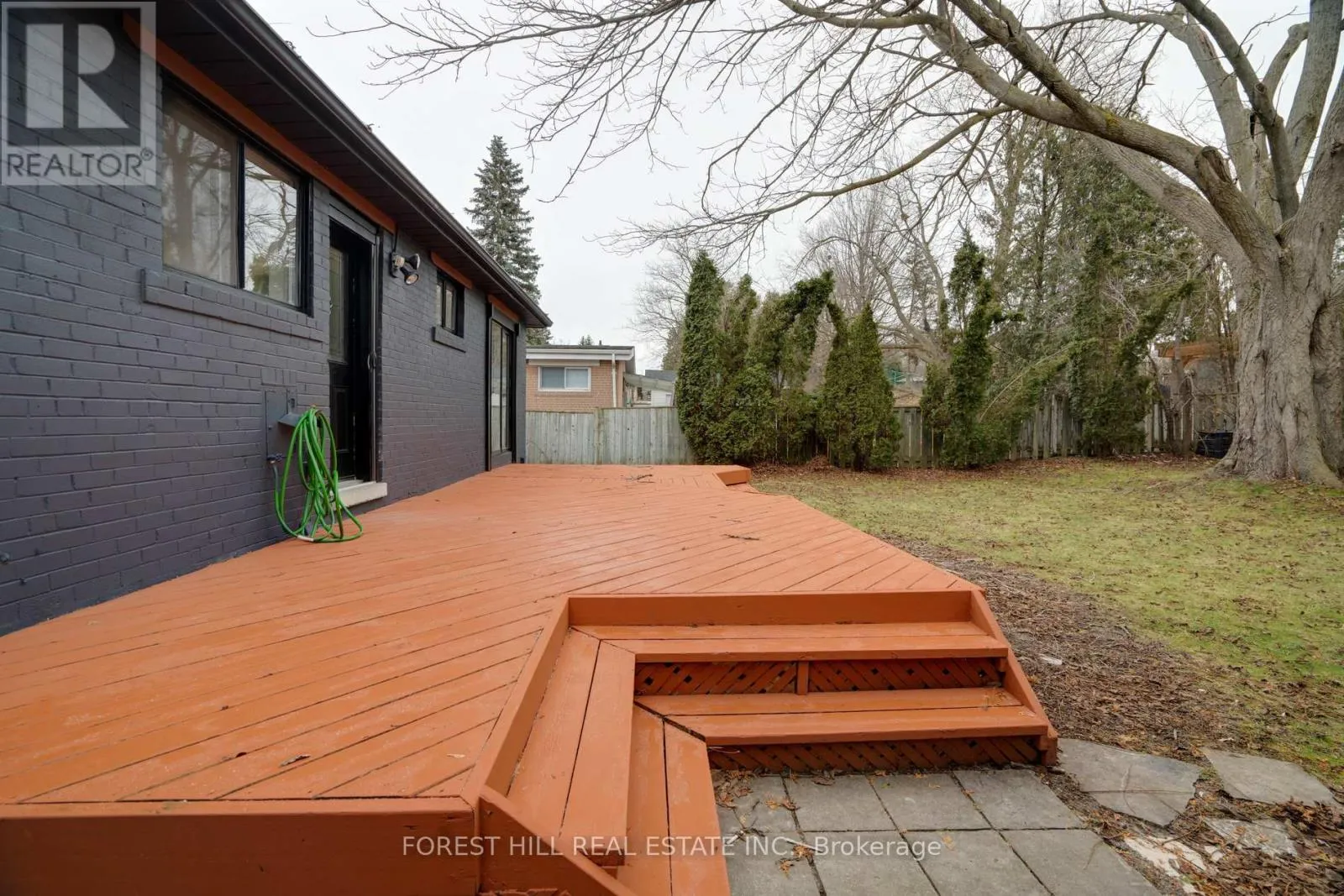 Bathurst And Henderson Beautifully renovated in 2022, this must-see solid brick bungalow offers an open-concept layout on a premium 70-ft wide, fully fenced, pool-size lot surrounded by mature trees for exceptional privacy and great potential for future development. Extensive 2022 upgrades include engineered hardwood floors, pot lights, glass and stainless-steel railings, paint, solid wood crown moulding and trim. The updated kitchen features stainless-steel appliances and a walk-out to a large deck-ideal for entertaining. The main level offers two spacious bedrooms (formerly three and easily convertible back) and a 3-piece bath. The finished lower level includes three additional bedrooms/ plumbing rough-ins for potential kitchen in the lower level and a 3-piecebath. (id:27476)