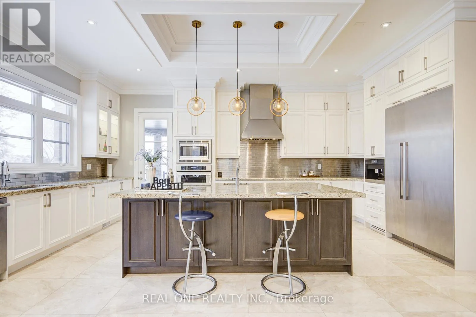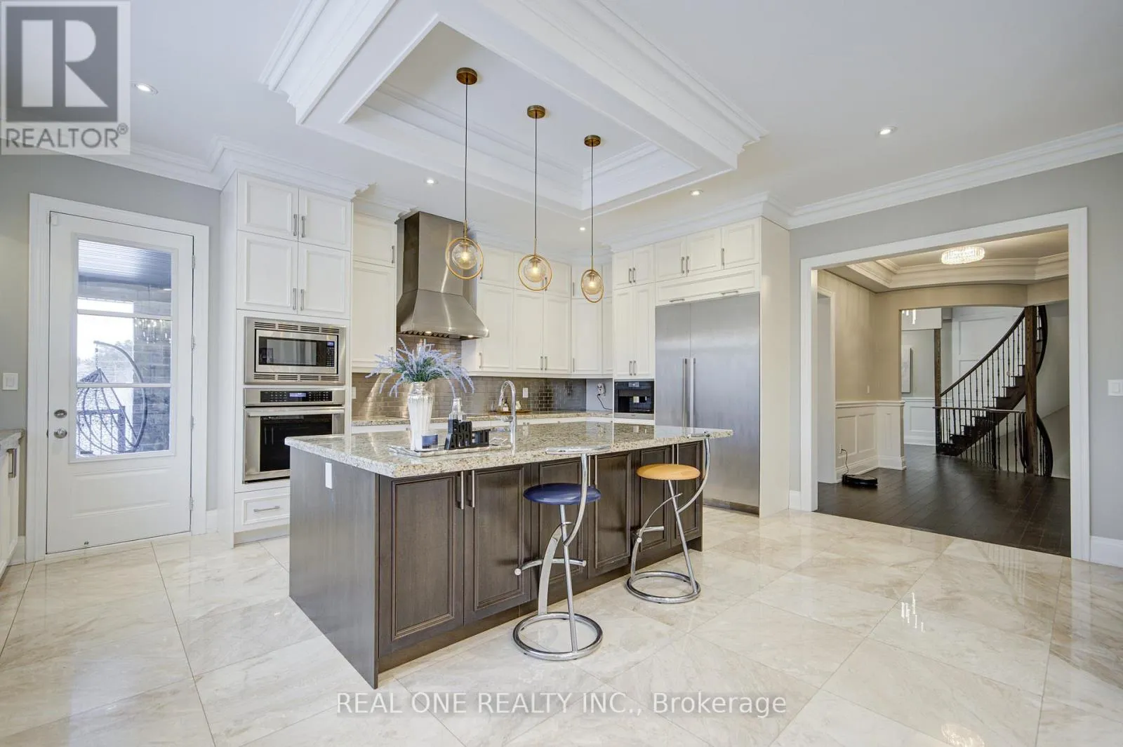 Yonge & Bloomington Experience luxury living at 99 Glensteeple Trail, a custom-designed 5,300 sq ft stone villa set on the Largest lot in the subdivision (120 x182)* Overlooking Beacon Hall Golf & Country Club* This home features 4 ensuite bdrms, a gourmet kitchen, grand curved staircase, 5 Bay windows, and an extended rear design offering exceptional natural light & ravine views* The W/O basement has over 2,500 sqft. of customizable space W/ bay windows - ideal for a home theatre, gym, recreation area, or multi-suite layout* A dedicated Elevator shaft location ensures long-term accessibility for future-ready convenience* A 4-car garage plus driveway provides parking for up to 10 vehicles* this rare estate is the Only custom-built home in the subdivision with a grand curved staircase anchoring the main level blends craftsmanship, privacy & convenience in one of Aurora's most prestigious communities*4 spacious bdrms, each featuring its own ensuite & W/I closet*The primary suite includes a fireplace, bay windows w/ ravine views, a spa-inspired ensuite w/separate tub & shower and dual w/I closets*The gourmet Chef's kitchen Induction cooktop, B/I Miele coffee machine, oversized island, breakfast bar, and a bay-window dining area. Seamless open-concept living spaces with elegant crown mouldings. (id:27476)