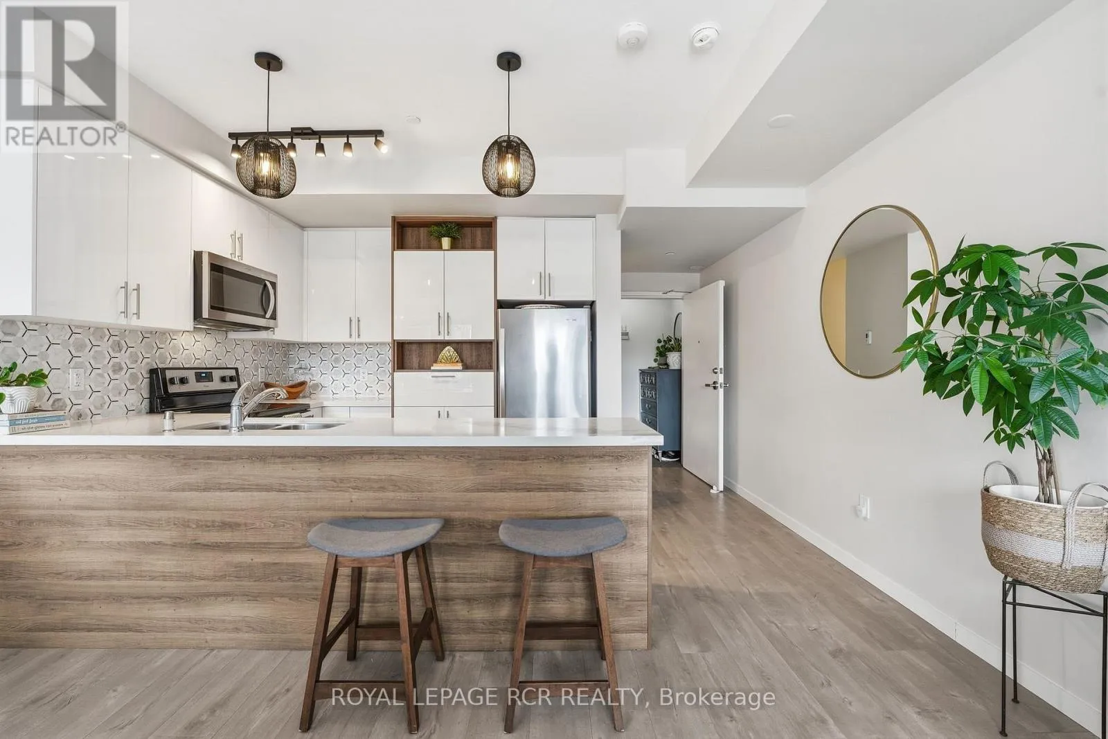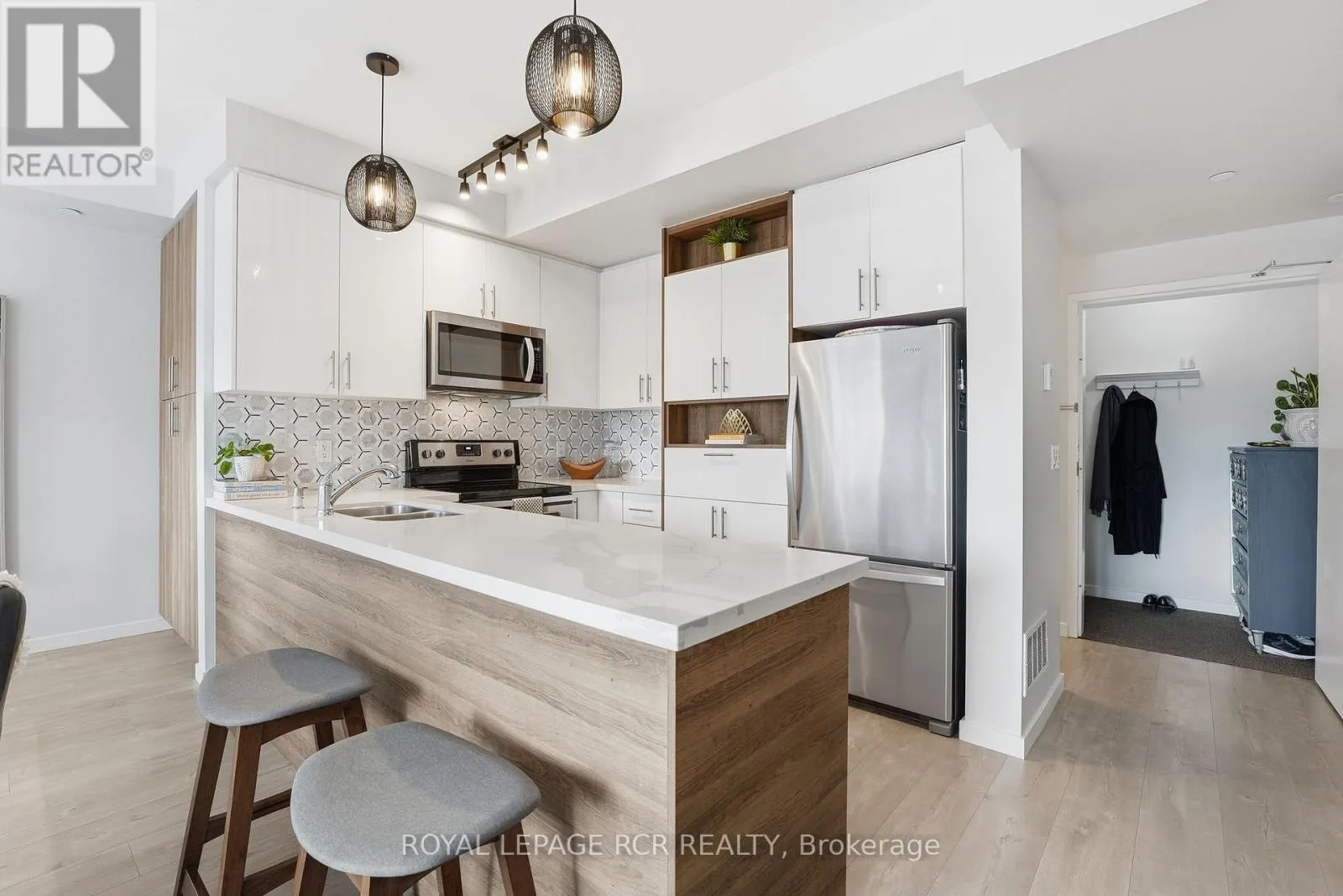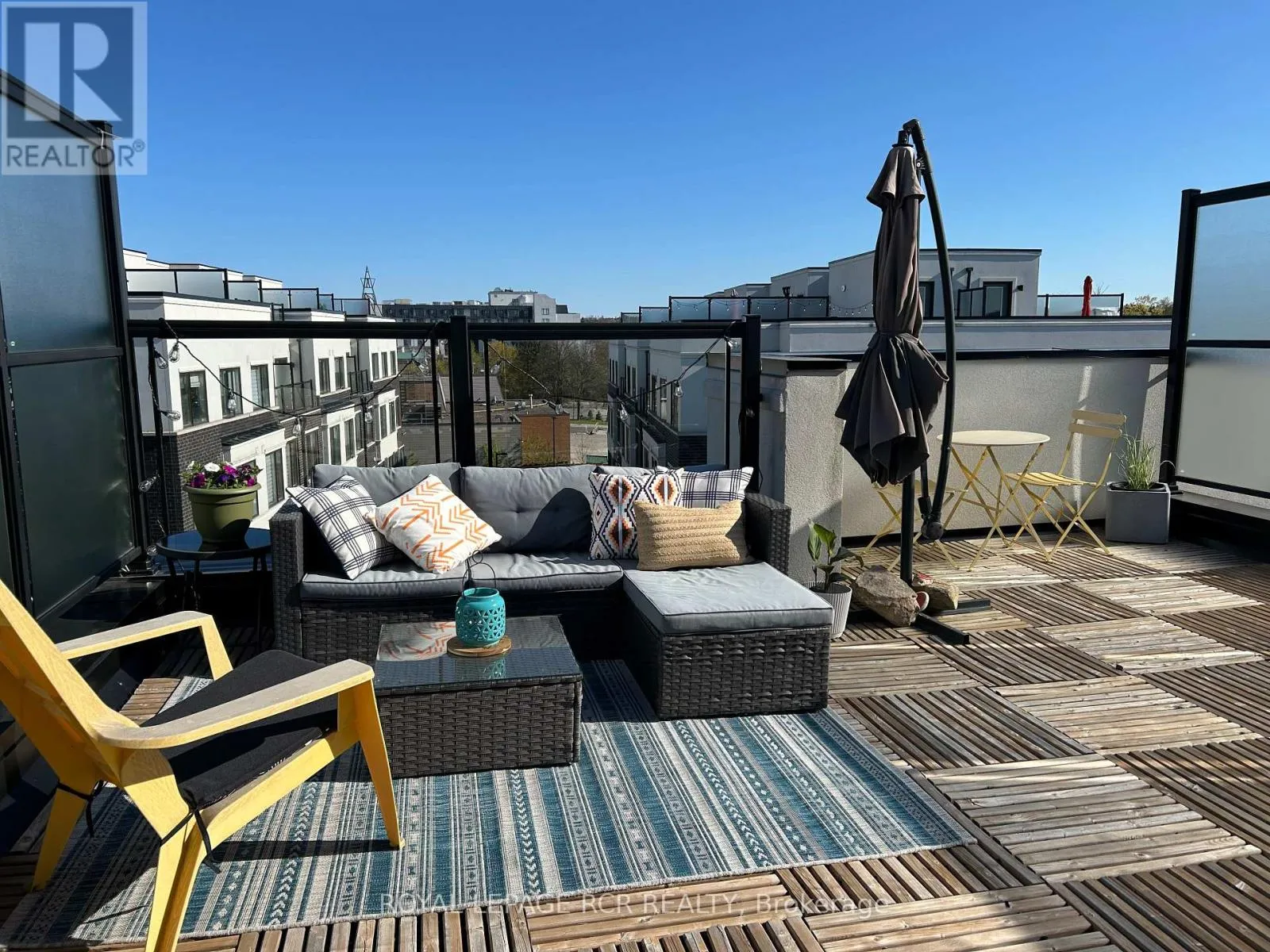 Yonge St & Wellington Welcome to this stylish 2-bedroom, 3-bath stacked townhouse offering modern design and functional living across every level. The open-concept main floor showcases a contemporary kitchen with quartz countertops, sleek tile backsplash, and counter seating, flowing seamlessly into the dining area and bright living space. Expansive windows fill the home with natural light, creating an airy and inviting atmosphere. Upstairs, the spacious primary suite features a walk-in closet, a charming Juliette balcony, and a private ensuite bath with a glass shower. A second bedroom and additional bathrooms provide excellent flexibility for guests, family, or a home office. Enjoy outdoor living on your private rooftop terrace, perfect for entertaining or relaxing. Underground parking and a storage locker add everyday convenience. Ideally located close to the Aurora GO Station, Summerhill Market, Aurora Town Park, and the Aurora Cultural Centre, this modern condo townhome balances comfort, style, and low-maintenance living in the heart of a vibrant community. (id:27476)