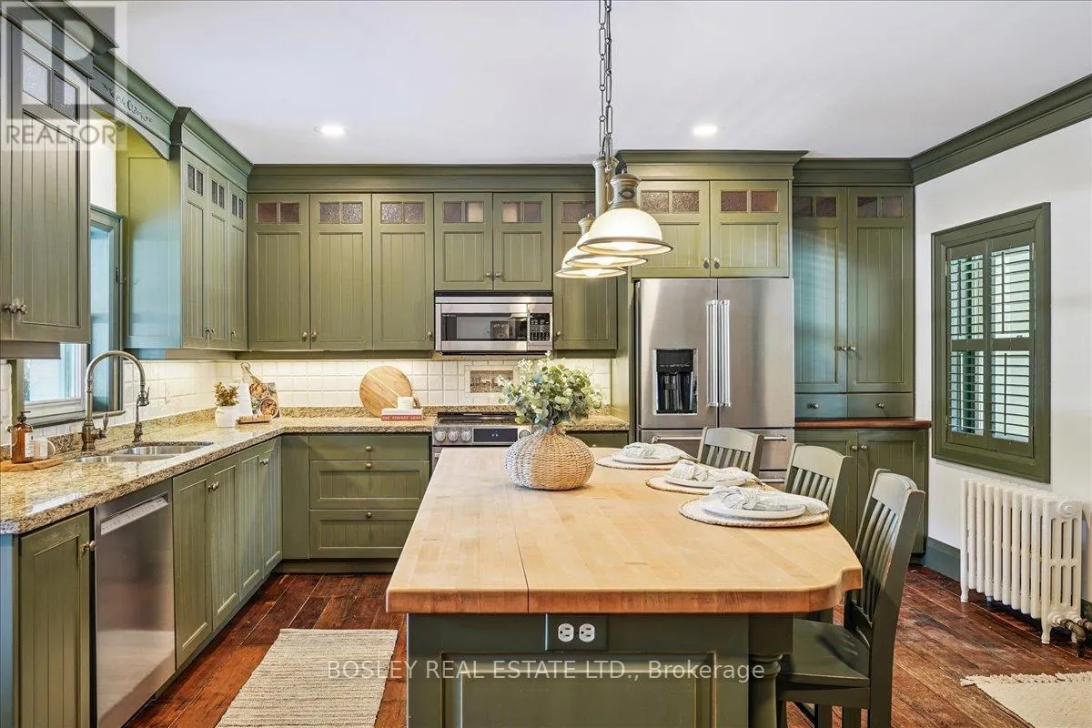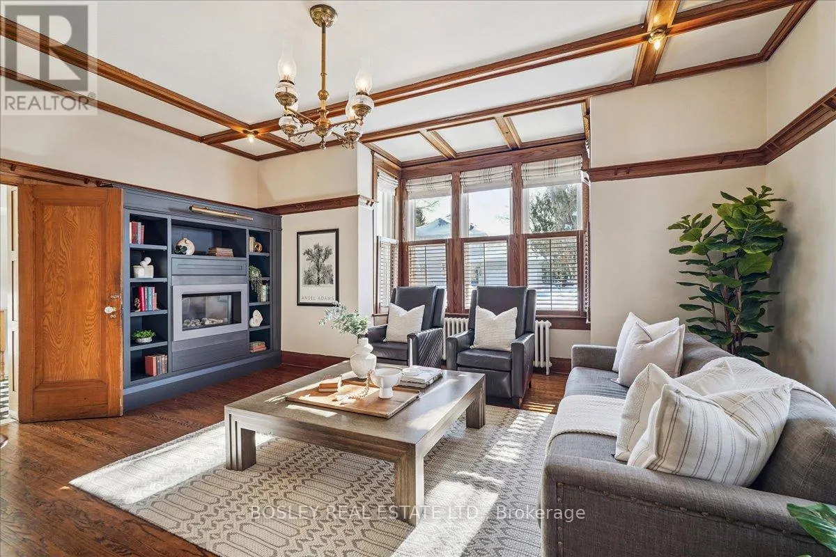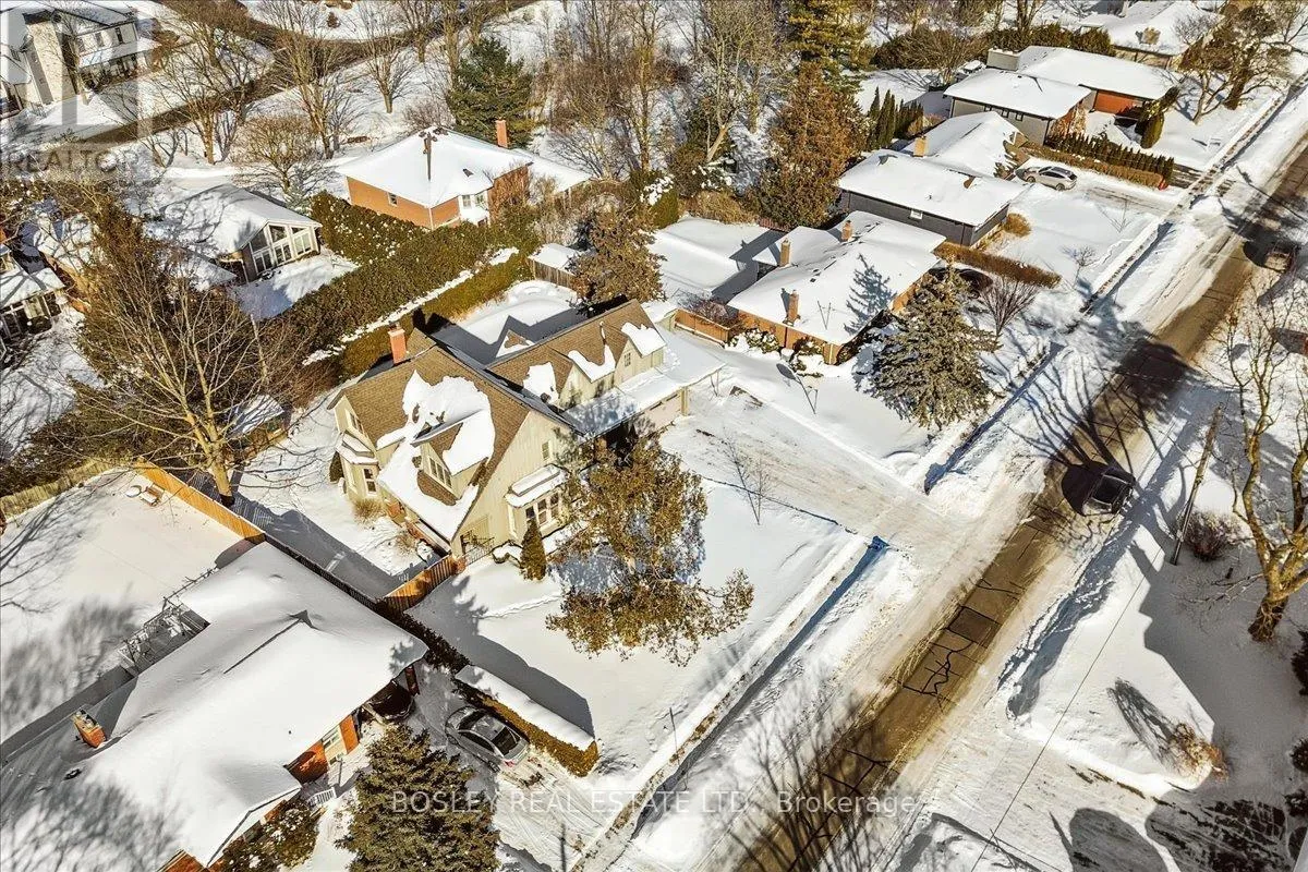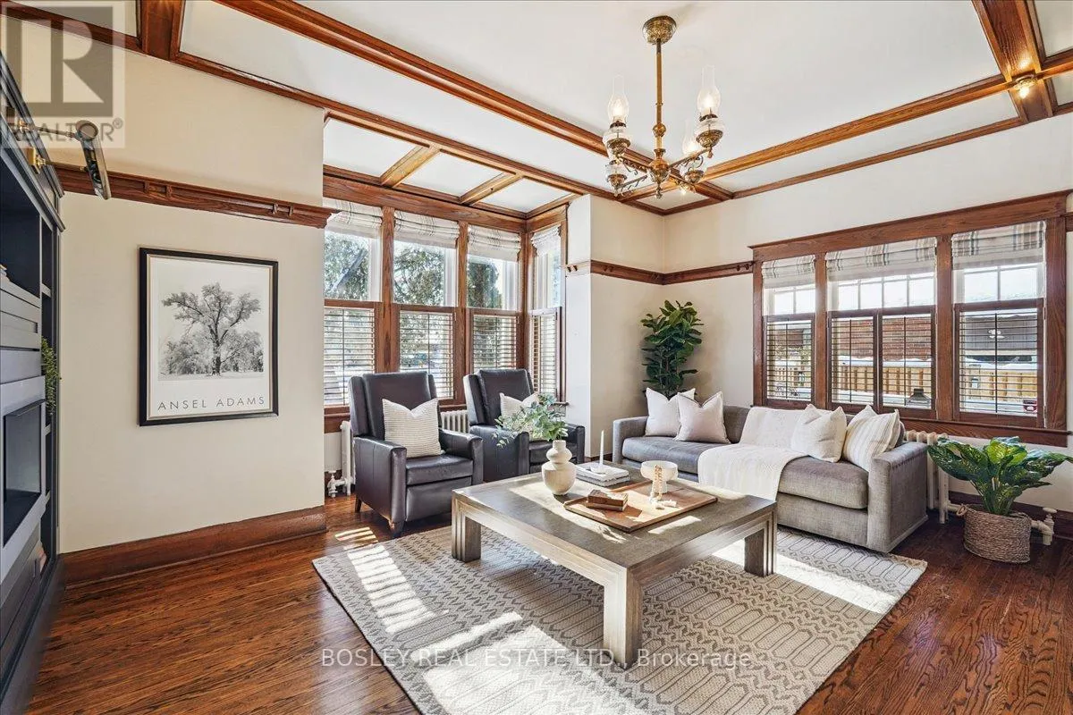 Yonge Street and Wellington Avenue Provenance meets modern versatility! Historically known as the original "Cousins Farm House," this residence is situated on a rare, double wide 100 ft lot, offering presence and privacy. Spanning approximately 3,000 square feet, this 4 bdrm 3 bath home preserves its architectural integrity with original pine flooring in the farm style kitchen, high ceilings, intricate wood mouldings, expansive living and dining areas and a family room with coffered ceilings. The first of 3 bathrooms is centrally located, serving the main floor rooms with ease. The main floor boasts grand principal rooms, the second level features 4 bedrooms. The principal suite includes a renovated ensuite, while two generous secondary bedrooms are served by a central hall. A standout feature is the use of the second floor over the kitchen and garage; separated by a large hallway ideal for a home office or library this wing includes a 4th bedroom, full 4 piece bath, and laundry. This configuration offers exceptional privacy, making it perfect for a secluded primary retreat, nanny suite, or multi generational living. The exterior has meticulously manicured landscaping maintained by a local favourite garden centre. The backyard features an in-ground pool framed by mature trees and hedging, a side yard for pets or play, and a sauna accessed via the back path. Mature trees canopy the yard for a perfect balance of sun and shade, so those days in the pool with family and friends are idyllic. Practical needs are met with a double car garage, additional carport, and ample parking. The location offers a perfect balance of quiet residential life and urban convenience. Easy access to the GO Train makes for a seamless commute. Only steps away are premier parks, local boutique shops and terrific dining. Extensive green space & community amendments are just a short stroll from your front door. An opportunity to own a piece of local history in a prime, walkable location. (id:27476)