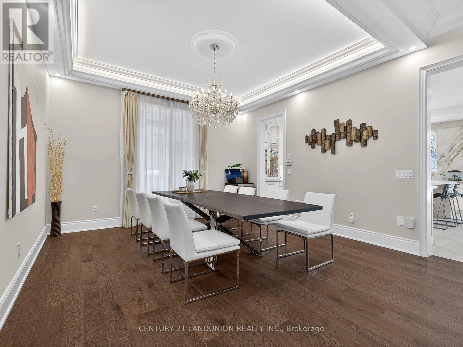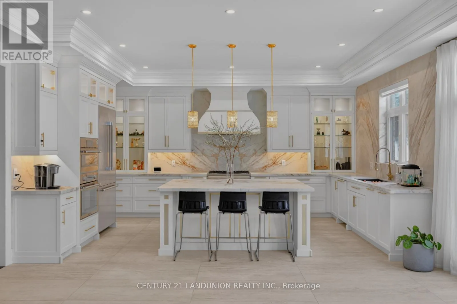 Yonge & Bloomington Rarely does a residence of this caliber become available. Set on a premium ravine lot within an enclave of distinguished estate homes, this property offers the privacy, scale, and architectural presence sought by discerning buyers.Designed with intention and finished without compromise, every detail reflects quiet sophistication and enduring quality.The main level showcases soaring 10-foot ceilings and an elegant waffle ceiling feature, while oversized windows frame natural views and fill the home with exceptional light. The thoughtfully designed layout balances grandeur with comfort - ideal for refined family living and elevated entertaining.At the heart of the home lies a fully customized chef's kitchen appointed with top-of-the-line Thermador appliances, including a built-in oven with steam function. Premium sintered stone surfaces elevate the kitchen and bathrooms, complemented by bespoke cabinetry, designer lighting, and refined gold hardware. Imported Italian 2' x 4' large-format tiles enhance the main floor with warmth and understated luxury.Extensive crown moulding and statement crystal chandeliers elevate both the main and upper levels. Custom designer drapery has been installed throughout. Dual HVAC systems ensure optimal year-round comfort.The ravine setting provides rare privacy and serene natural views - a truly exceptional backdrop within this prestigious neighbourhood. Conveniently located near elite private institutions including Country Day School, St. Andrew's College, Pickering College, and Holy Trinity School, as well as Dr. G.W. Williams Secondary School. Exceptional safety and convenience with the police station nearby. A property defined not by trends, but by presence - where craftsmanship, setting, and lifestyle converge. (id:27476)