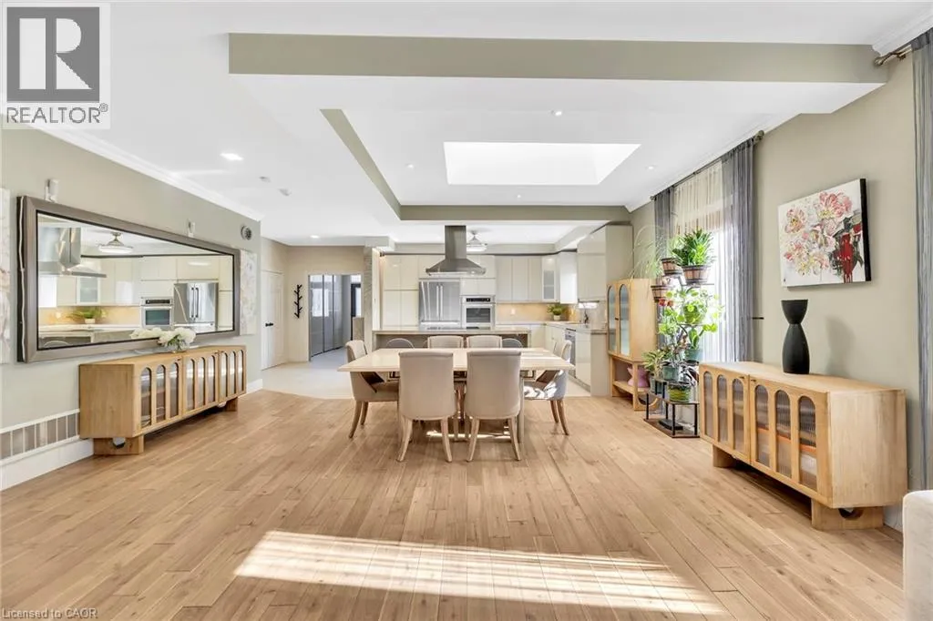 Tucked away on an exclusive private street shared by only three homes, 600 Henderson Drive offers a rare sense of seclusion and tranquility surrounded by mature trees and ravine views while still being centrally located in the highly sought-after Aurora Highlands. This extensively renovated 3+1 bedroom, 4 bathroom home is a must see. The main level showcases a stunning chef's kitchen with granite countertops, backsplash, and an impressive 88 x 38 waterfall island, complemented by stainless steel appliances. Engineered hardwood flooring, pot lights, skylights and sun tunnels fill the home with natural light, while a striking two-sided Crema Marfil marble gas fireplace anchors the living space. Walk out from both the living room and primary bedroom to a fully upgraded balcony featuring new flooring, glass railings, wood ceilings, pot lights, and a ceiling fan, all overlooking a private ravine setting. The spa-inspired primary ensuite features travertine tile throughout and a quartz countertop vanity. The fully finished lower level offers a second kitchen with granite counters and stainless steel appliances, a full bath with stand-up shower, a dry sauna accommodating 5-7 people, and a walk-out to an interlock patio. Enjoy your own backyard oasis with landscaped grounds, multiple decks, gas line for BBQ, Hot tub, and serene ravine views. Ideally located close to top-rated schools, trails, shopping, and more. A true showstopper not to be missed. (id:27476)