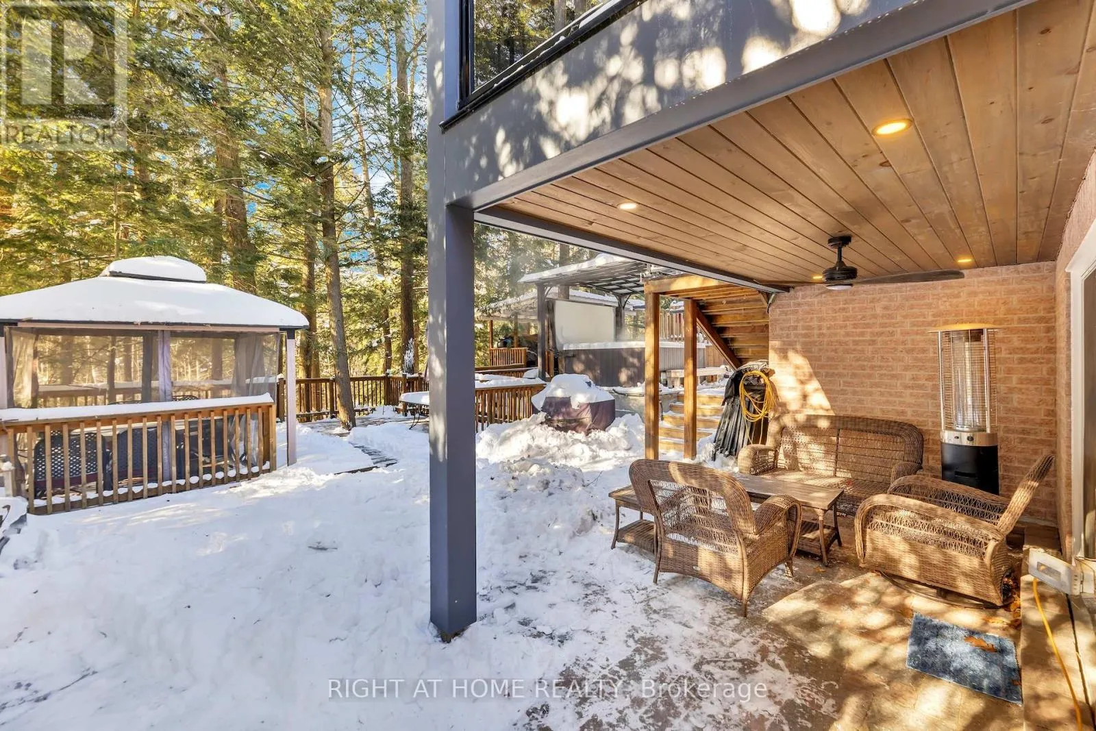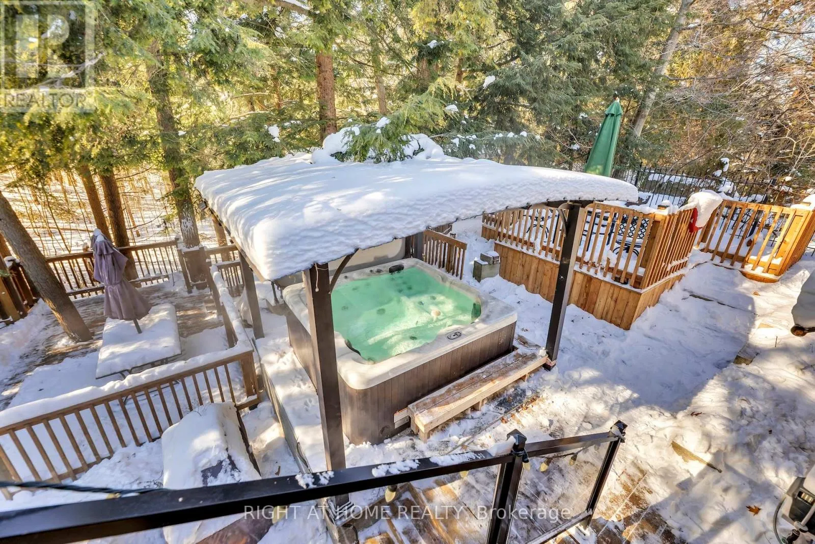 Henderson Dr and Bathurst St. Tucked away on an exclusive private street shared by only three homes, 600 Henderson Drive offers a rare sense of seclusion and tranquility surrounded by mature trees and ravine views while still being centrally located in the highly sought-after Aurora Highlands. This extensively renovated 3+1 bedroom, 4 bathroom home is a must see. The main level showcases a stunning chef's kitchen with granite countertops, backsplash, and an impressive 88" x 38" waterfall island, complemented by stainless steel appliances. Engineered hardwood flooring, pot lights, skylights and sun tunnels fill the home with natural light, while a striking two-sided Crema Marfil marble gas fireplace anchors the living space. Walk out from both the living room and primary bedroom to a fully upgraded balcony featuring new flooring, glass railings, wood ceilings, pot lights, and a ceiling fan, all overlooking a private ravine setting. The spa-inspired primary ensuite features travertine tile throughout and a quartz countertop vanity. The fully finished lower level offers a second kitchen with granite counters and stainless steel appliances, a full bath with stand-up shower, a dry sauna accommodating 5-7 people, and a walk-out to an interlock patio. Enjoy your own backyard oasis with landscaped grounds, multiple decks, gas line for BBQ, Hot tub, and serene ravine views. Ideally located close to top-rated schools, trails, shopping, and more. A true showstopper not to be missed. (id:27476)