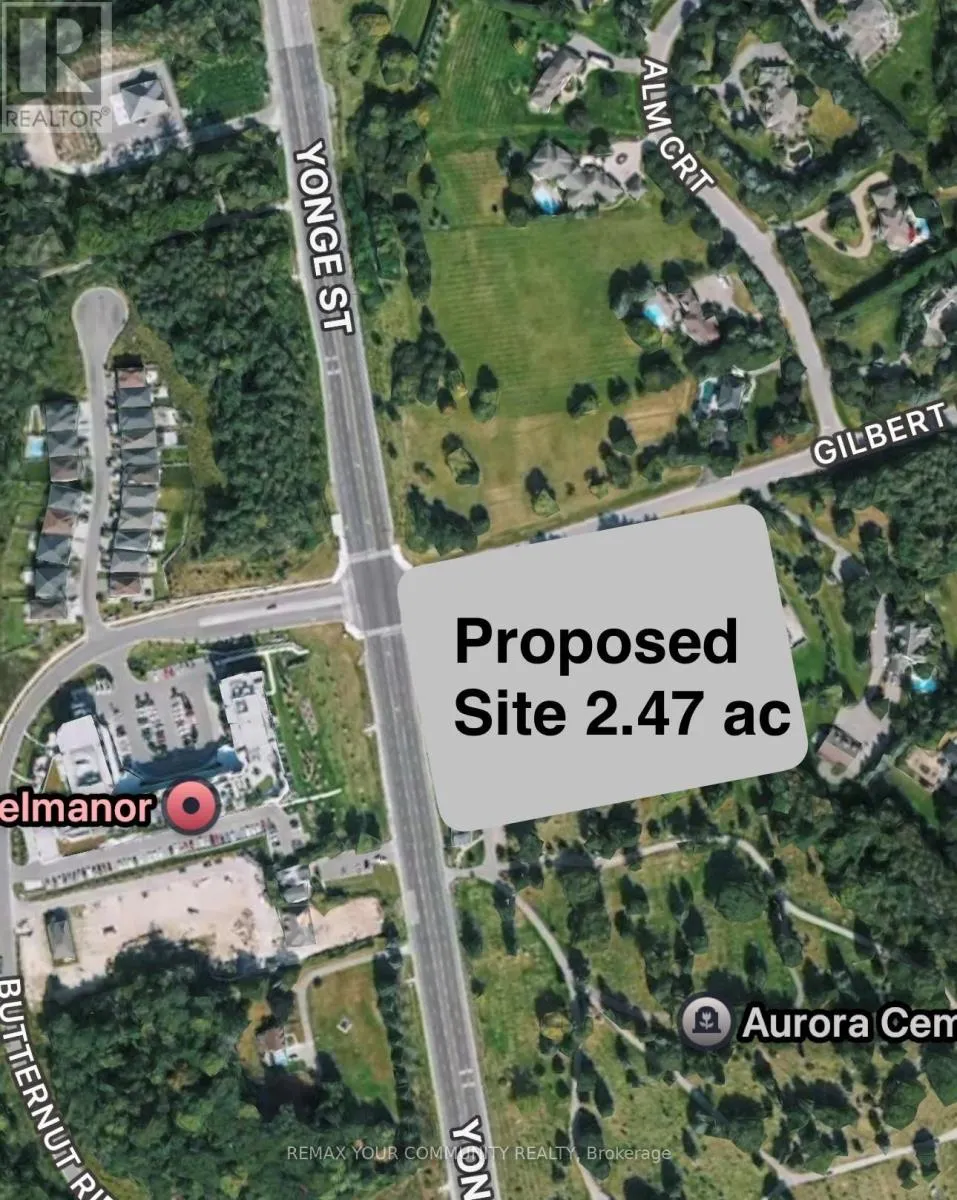 Yonge Street & Gilbert Drive Rare opportunity for developers, or investors to acquire a prime residential development site, fronting on Yonge Street, surrounded by multi million dollar homes, and across the street from exclusive Dell Manor, a high end senior mid rise apartment building. Official Plan designates the lot Regional Corridor, which allows development entitlement for mixed use residential, including low rise buildings. The site meets all the development criteria, and mandates from both the Province, and the Town of Aurora. The seller has carefully, and with the development criteria of Aurora adhered to, drafted 4 site plan scenarios supported by the official plan, that were presented to the Town of Aurora, and well received, all are in line with the Towns vision, and outlines for growth, and development, the seller is a land developer with a long history, and good working relationship with the Town of Aurora, and can assist with site plan approvals. *** Option 1 59 Units of High end Townhomes 59 units in total, *** Option 2 One 90 Unit Mid rise apartment building , and 44 Units of High end Townhomes, 134 total units, *** Option 3 One 90 Unit Mid rise apartment building, One 80 Unit Mid rise apartment building, and 25 townhomes, 195 total units , The seller is willing to design other development options a buyer may envision, and provide per forma possibilities for each scenario The site is strategically located in the highly sought after, prime high end area of south Aurora, boasting 262 feet on Yonge St., on a transit route, traffic lights, close to every possible amenity. No Oak Ridge Moraine, historical, or conservation restrictions. Seller is willing to lease back the property until development commences, Seller is also willing to take back a mortgage. VTB, disclosure one seller is a Registered Real Estate Sales Person. (id:27476)