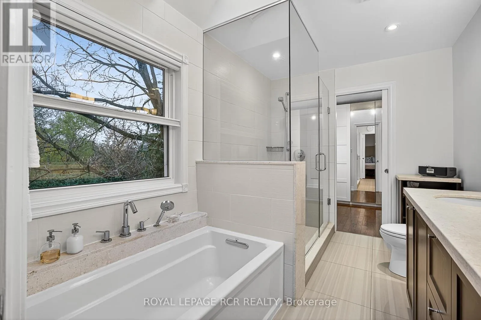George St between Hillview & Hawthorne Charming and Updated Aurora Village 2-Storey on a premium 62ft x 209ft lot nestled into the Luxurious Kennedy Street West neighbourhood boasting desirable schools, gorgeous parks, and a quick walk to Yonge Street restaurants and amenities. The stately brick exterior is complemented by a wrap-around porch, double-car garage, and long driveway. Inside, the open-concept main floor is bathed in natural light and features a spacious living room complete with large windows and hardwood floors that flow into an elegant dining room with a bay window and walk-out to the wrap-around porch. The modern kitchen features light wood cabinetry, Caesarstone countertops, a centre island with breakfast bar, and direct deck access. The bright eat-in breakfast areas offers scenic backyard views. The family room impresses with a brick gas fireplace, wooden mantel, 11' vaulted ceilings, and sliding doors to the backyard. Convenient main floor laundry with side entrance. Upstairs, the primary bedroom is a luxurious retreat with a spa-like ensuite, sitting area overlooking the backyard, adjoining dressing room, and generous storage. The spacious and bright Finished Basement is complete with 3pc bathroom, recreation room, cozy fireplace, built-in shelving, large above-grade windows, 5th bedroom, and a walk-out that leads into the beautiful backyard is perfect for extended family. The private and expansive backyard oasis features lush greenery, mature trees, multiple seating areas, spacious deck, glass railings, and a cozy patio. (id:27476)