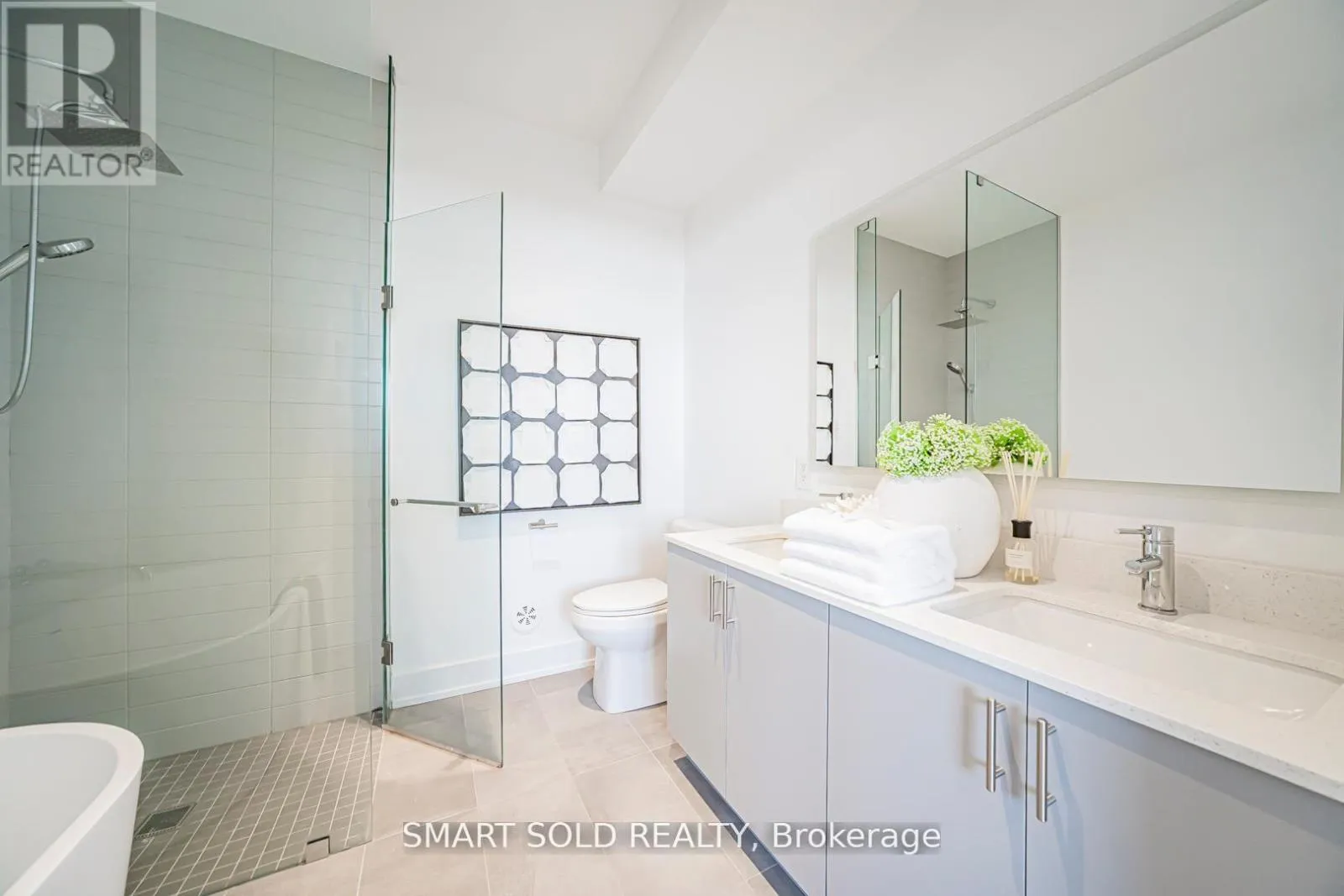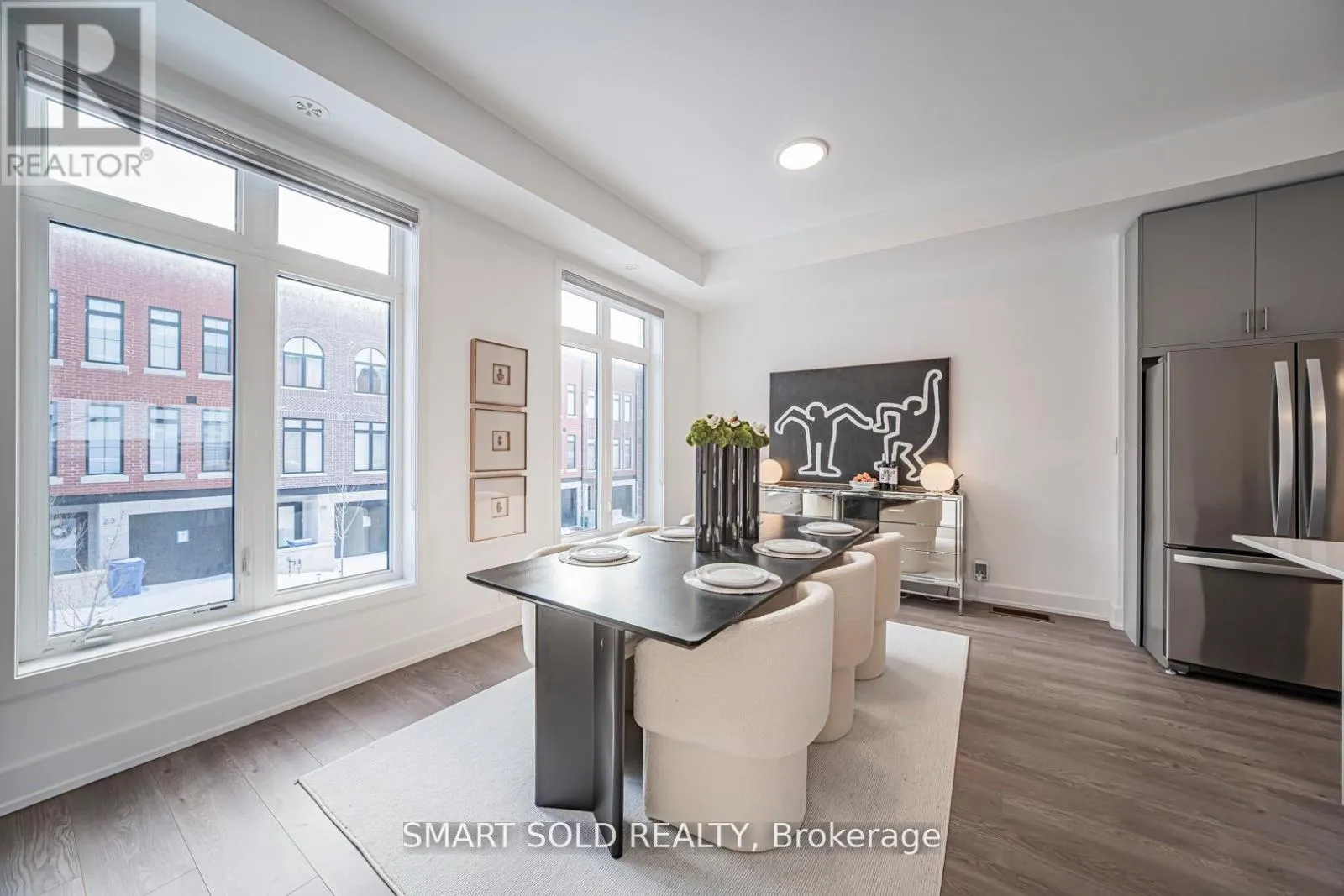 Leslie St / Wellington St E Bright & spacious upgraded t/h offering approx. 2,251+587 sq.ft. of living space, featuring 4 bdrms & 5 w/r. Well-designed layout w/ excellent natural light throughout & generous proportions on all levels. Impressive ceiling heights incl. 10 ft ceilings on 2nd flr, 9 ft on 3rd flr, & approx. 8.6 ft ceilings in fin. W/O bsmt, creating an open & airy feel. Features eng. hdwd flr t/o, private rooftop terrace (627 sq.ft.), & main flr balcony. Rooftop terrace w/ upgraded outdoor faucet for easy maintenance. Approx. $25,000 spent on builder upgrades, plus numerous post-builder improvements. Upgraded kit. w/ waterfall island c/top, ext. backsplash, under-cab. lighting, S/S appl. pkg., built-in garbage & recycle cabinet system, & water filtration system. All appl. incl. All bdrms w/ custom closet organizer systems, incl. upgraded drawers in ground flr closet & prim. W/I closet. Baths & pdr rm upgraded w/ accessories, LED mirrors (exc. bsmt bath), & enhanced shower systems feat. handheld + waterfall shower heads on upper flrs. Add'l highlights incl. fin. W/O bsmt w/ full bath, EV charger (builder-installed), water softener, water purification system, humidifier, zebra blinds t/o, new washer & dryer, new microwave w/ exhaust fan, & 7-yr Tarion new home warranty. A luxurious, comfortable & move-in ready home, thoughtfully designed for family living. (id:27476)